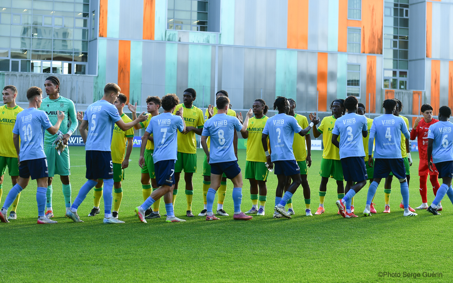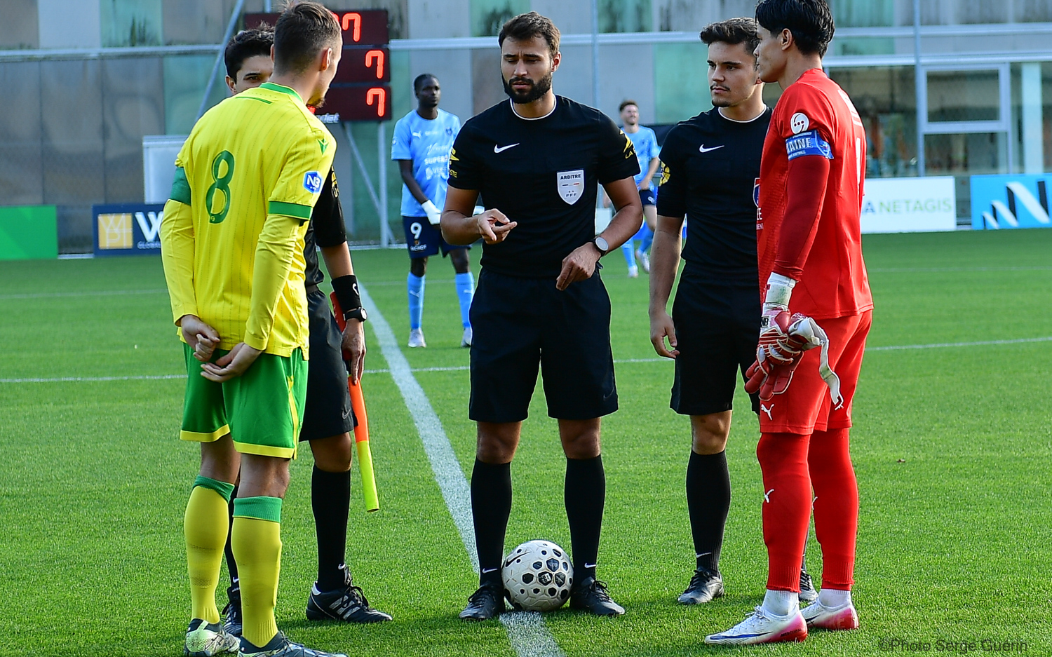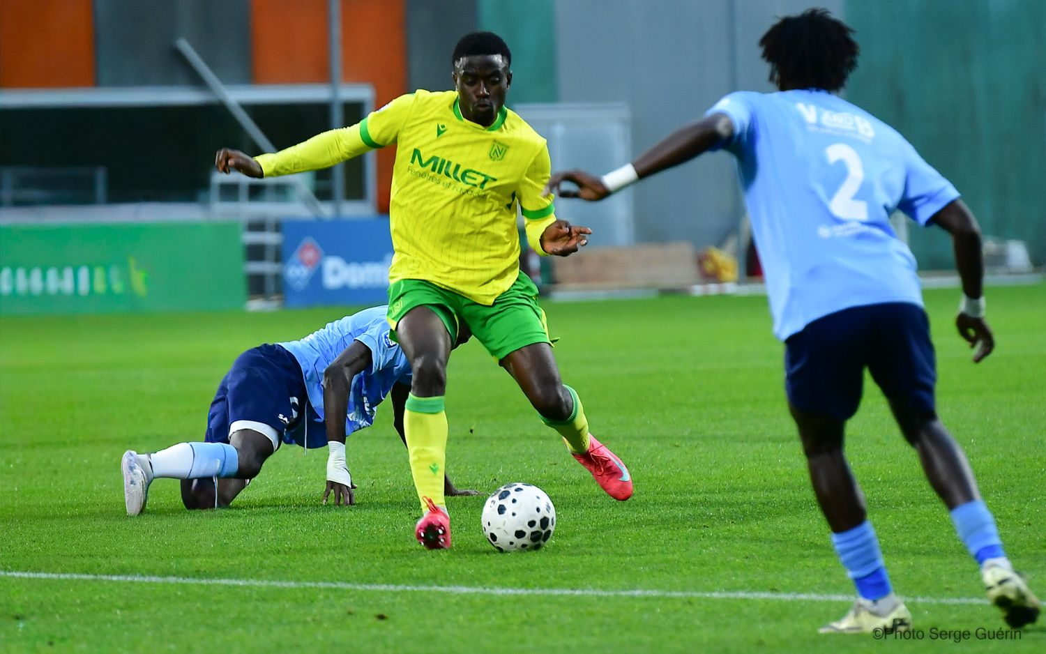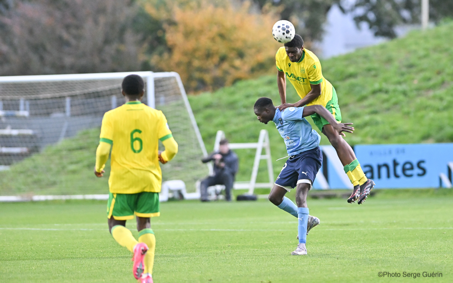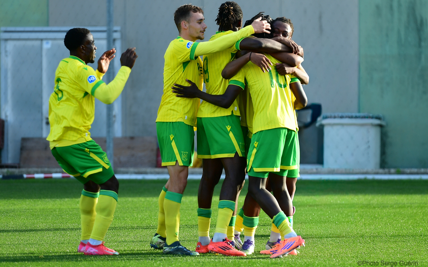 La formation de N3 du FC Nantes s'est accrochée à Marcel-Saupin pour obtenir le partage des points face aux Sables VF (2-2). Les joueurs de Stéphane Ziani avait pourtant pris les devants grâce à Sanah Camara, idéalement servi par Jordi Kuange (1-0, 15e). Les Vendéens ont réagi dans la foulée avant de prendre l'avantage à l'heure de jeu sur un doublé de l'attaquant sénégalais, Mansour Samb (20e et 64e). Les coéquipiers d'Enzo Mongo (photo en UNE) se sont accrochés jusque dans les derniers instants du match pour arracher in extremis le point du match nul sur une réalisation d'Emmanuel Kiah (90e : 2-2). Un match nul qui permet aux Jaunes et Verts de se maintenir dans la première partie du tableau à égalité de points avec l'Union Foot de Touraine (5ème).