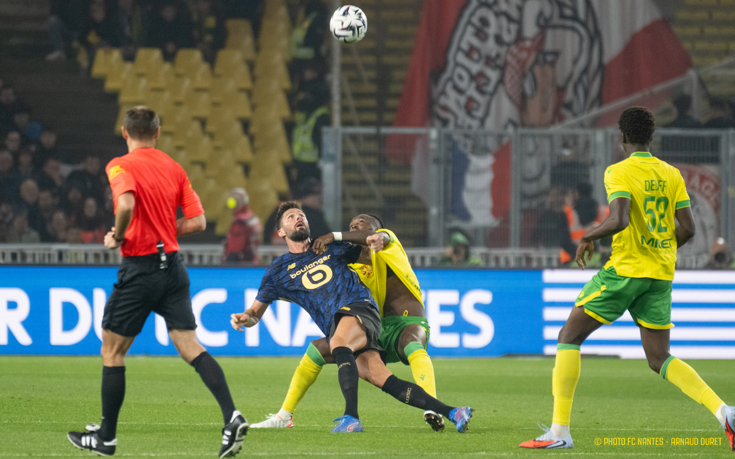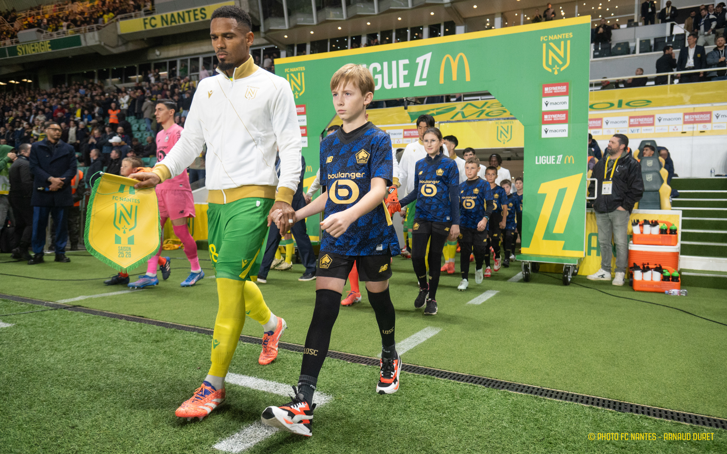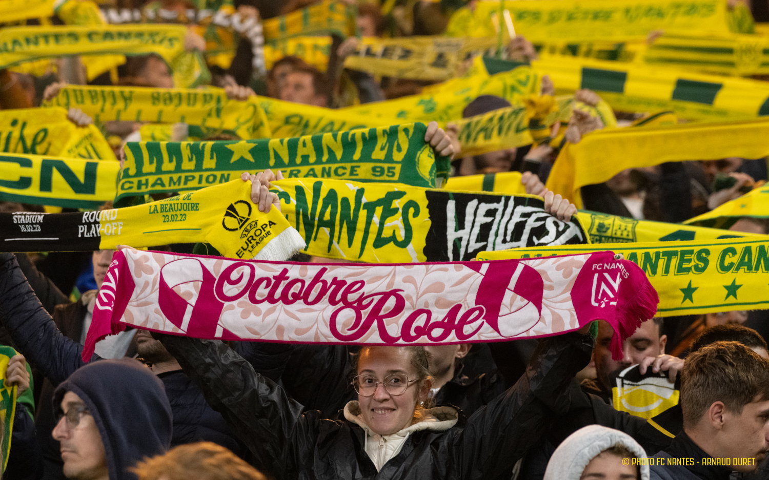 Le FC Nantes s'est incliné à la Beaujoire face au LOSC dans le cadre de la 8ème journée de L1 McDonald's. Soutenus par près de 30000 supporters présents au coeur de l'antre nantais, les Jaunes-et-Verts n'ont pas pu résister aux Dogues malgré de belles intentions et beaucoup de solidarité. L'international islandais Hakon Haraldsson a ouvert la marque dès la 7ème minute avant que le marocain Hamza Igmane douche une Beaujoire festive (89e : 0-2). Flashback en images sur une rencontre marquée par l'hommage à Roland Menu, adhérent historique d'Allez Nantes Canaris, le soutien à Octobre Rose (photo en UNE) et les festivités en Tribune Loire.