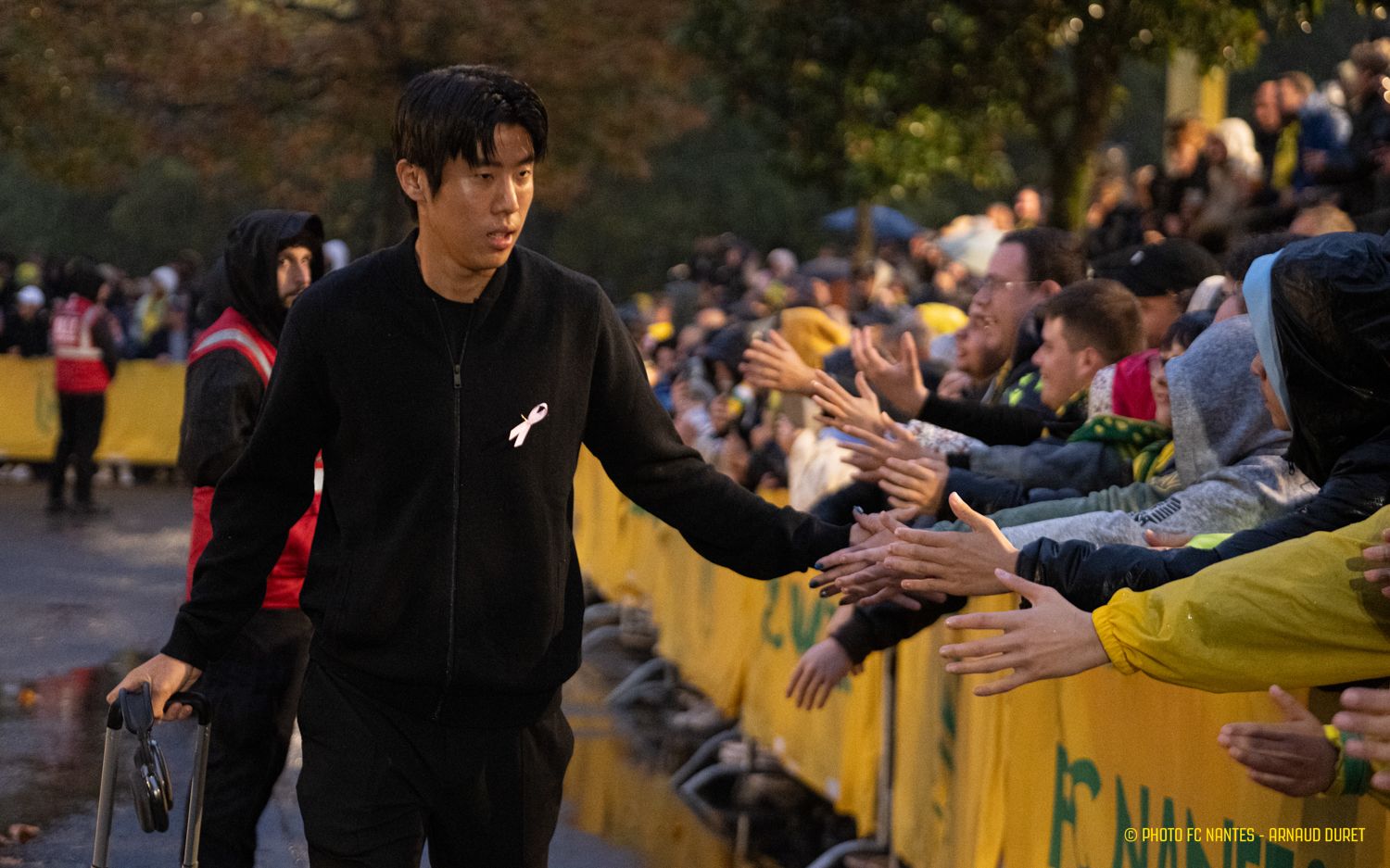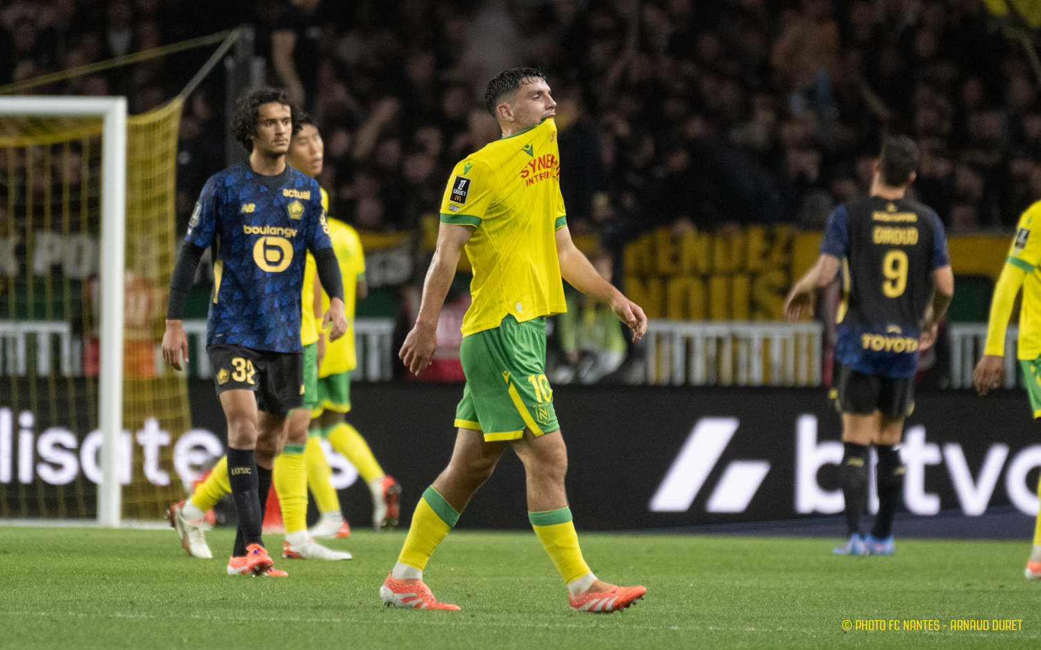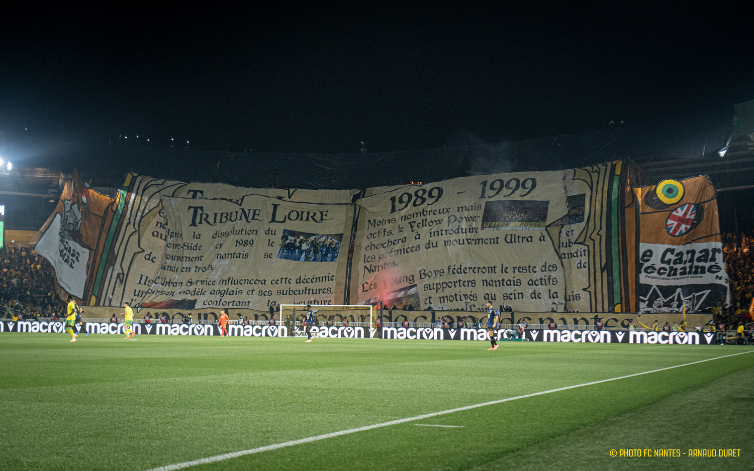 Le FC Nantes s'est incliné à la Beaujoire face au LOSC dans le cadre de la 8ème journée de L1 McDonald's. Soutenus par près de 30000 supporters présents au coeur de l'antre nantais, les Jaunes-et-Verts n'ont pas pu résister aux Dogues malgré de belles intentions et beaucoup de solidarité. L'international islandais Hakon Haraldsson a ouvert la marque dès la 7ème minute avant que le marocain Hamza Igmane douche une Beaujoire festive (89e : 0-2). Flashback en images sur une rencontre marquée par l'hommage à Roland Menu, adhérent historique d'Allez Nantes Canaris, le soutien à Octobre Rose (photo en UNE) et les festivités en Tribune Loire.