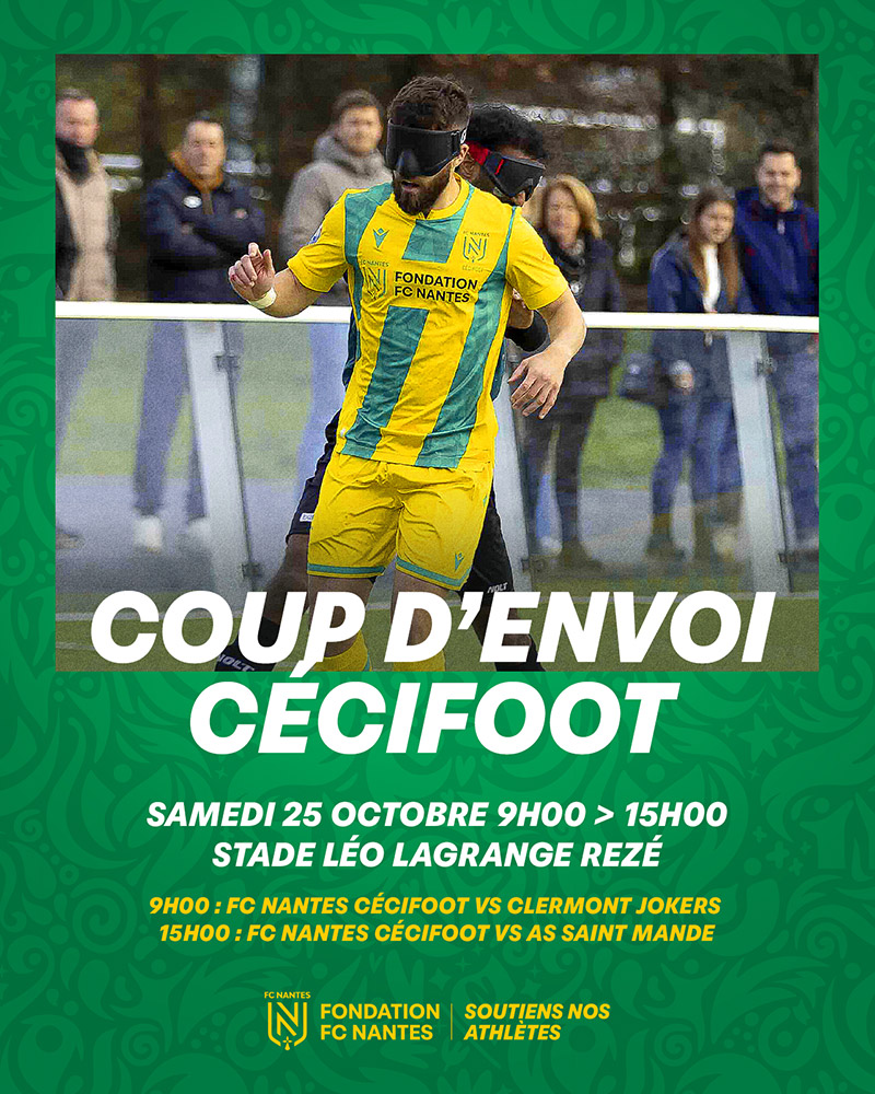 La saison de cecifoot reprend ! Venez nombreux encourager notre équipe du FC Nantes engagée dans 2 matchs samedi au Stade Lagrange à Rezé. Entrée gratuite.