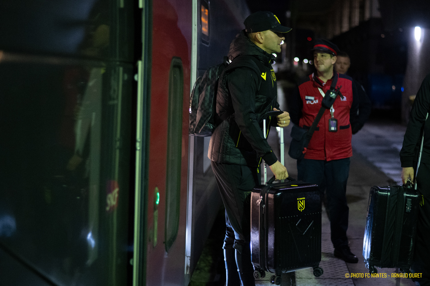 Au terme d'une dernière session de travail programmée jeudi matin au Centre Sportif de la Jonelière, la délégation nantaise a été accueillie à la gare SNCF de Nantes afin de rejoindre la Capitale. Le groupe, qui suit un programme spécifique dans l'attente du match, est attendu au stade Jean-Bouin vendredi soir vers 19h15. Retrouvez les images du déplacement nantais à Paris.