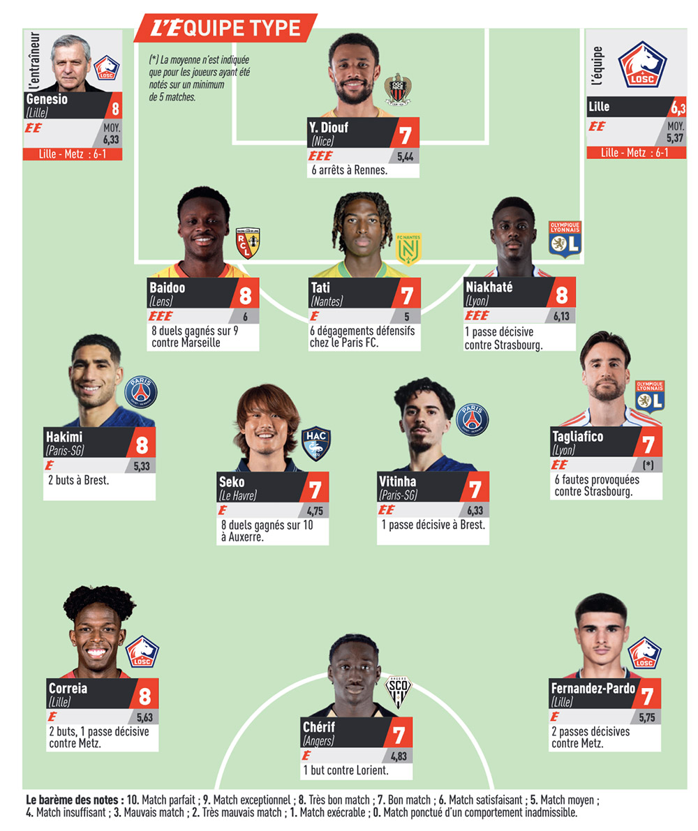 Crédité d'une note de 7 pour ses nombreuses interventions et sa solidité face au Paris FC vendredi, Tylel Tati intègre l’Équipe-type du journal L’Équipe, à l'issue de la 9e journée de Ligue 1 McDonald's.