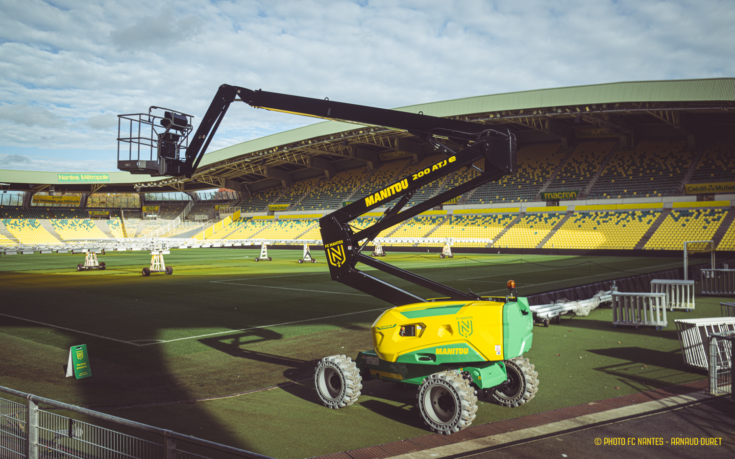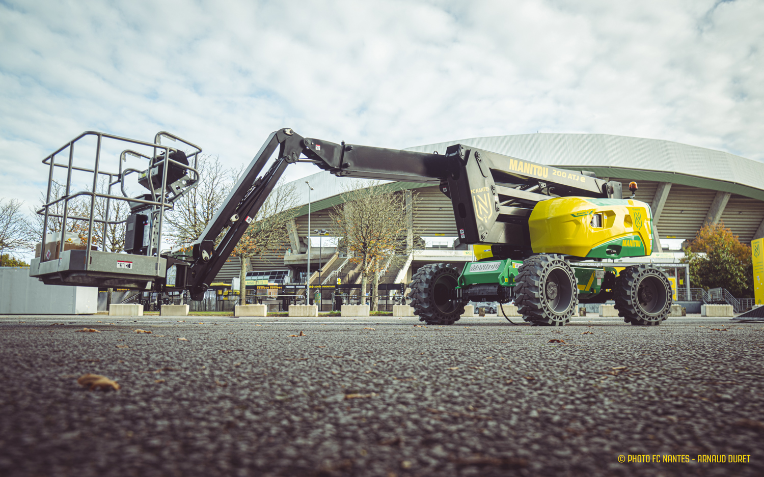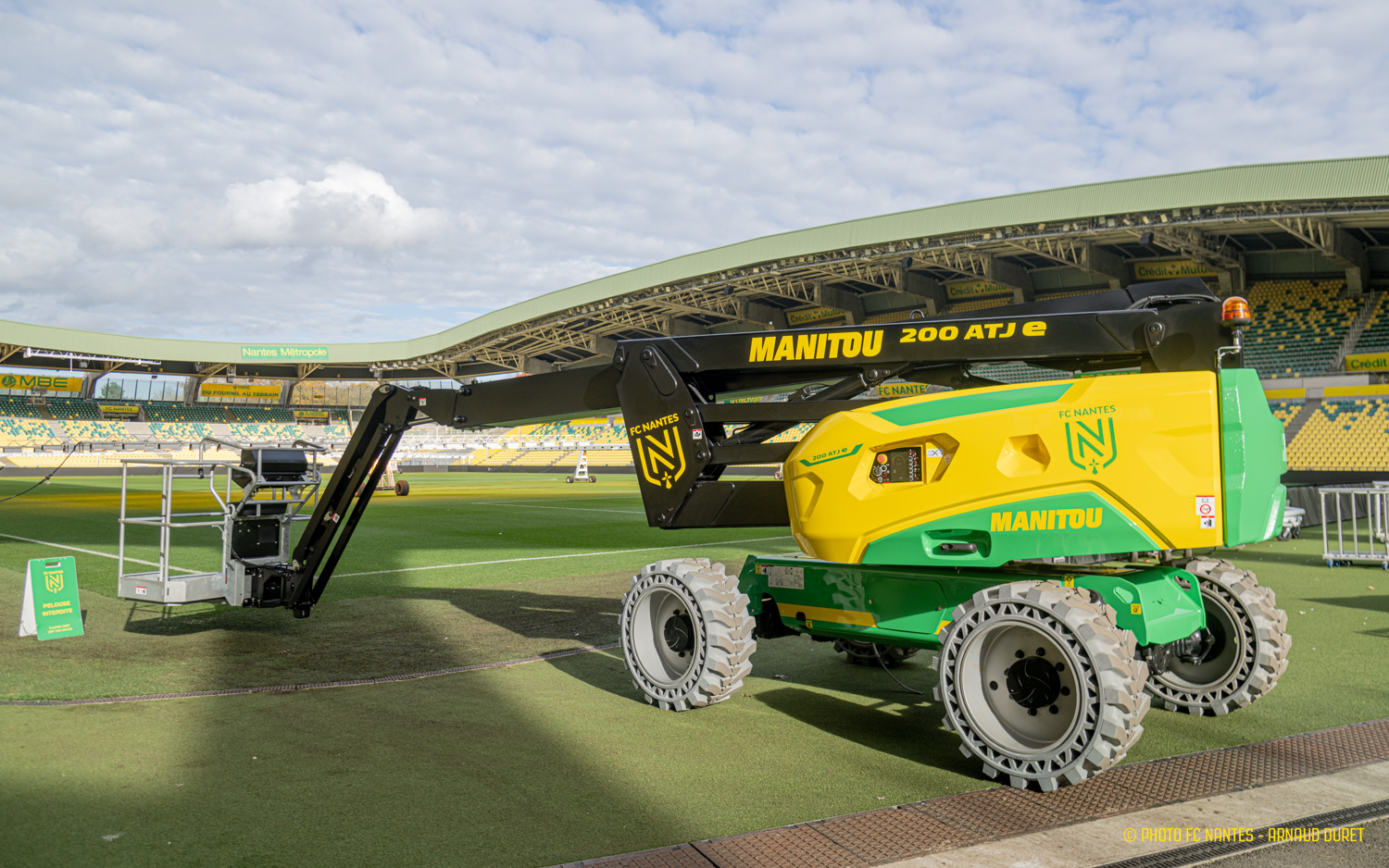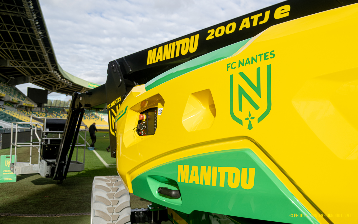 Manitou, entreprise familiale française d'Ancenis (44), met son savoir-faire au service de son voisin, le FC Nantes. Une machine 100% électrique et tout-terrain, à été adaptée aux couleurs du FC Nantes afin d'assurer la gestion et la maintenance des équipements du stade avec agilité, efficacité et dans le respect de l'environnement.