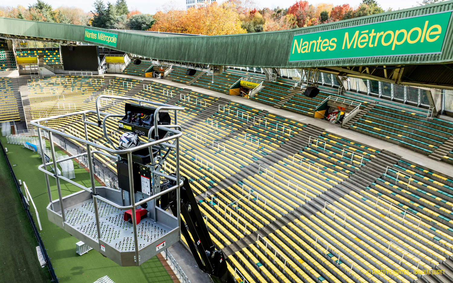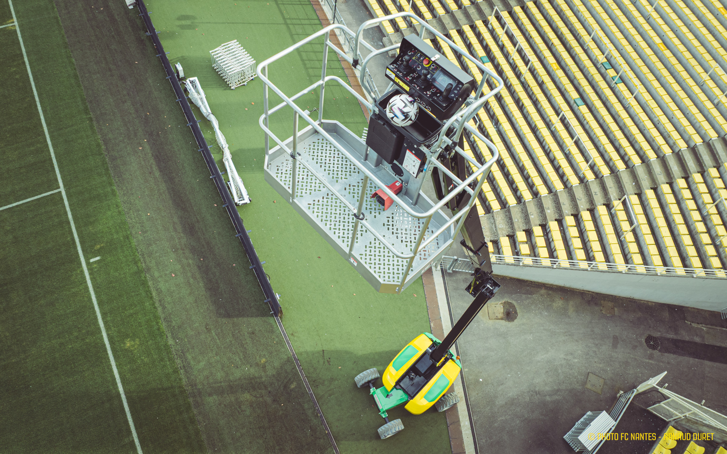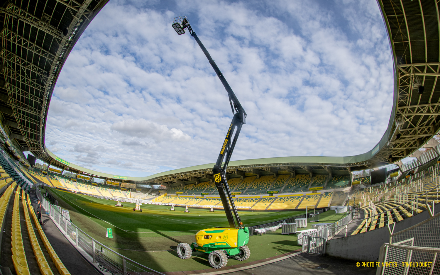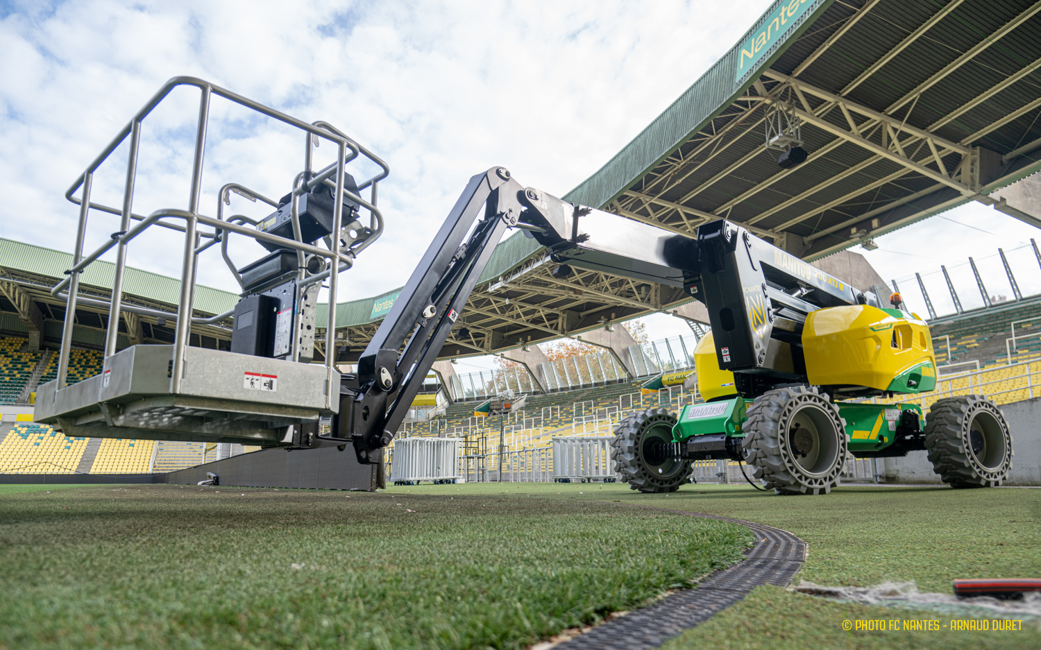 Manitou, entreprise familiale française d'Ancenis (44), met son savoir-faire au service de son voisin, le FC Nantes. Une machine 100% électrique et tout-terrain, à été adaptée aux couleurs du FC Nantes afin d'assurer la gestion et la maintenance des équipements du stade avec agilité, efficacité et dans le respect de l'environnement.