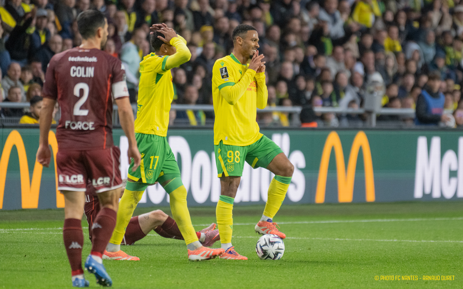 Le FC Nantes s'est incliné dimanche soir à la Beaujoire face au FC Metz (0-2). Les coéquipiers de Junior Mwanga ne sont pas parvenus à trouver la solution face à une formation messine patiente, bien regroupée et réaliste... Le Géorgien Giorgi Abuashvili a profité d'une mésentente défensive pour surprendre les Jaunes et Verts (82e). Partis aux avant-postes, les joueurs de Luis Castro ont de nouveau été sanctionnés en contre par Habib Diallo (89e). Retour en images sur une soirée difficile marquée également par plusieurs hommages observés par La Beaujoire.
