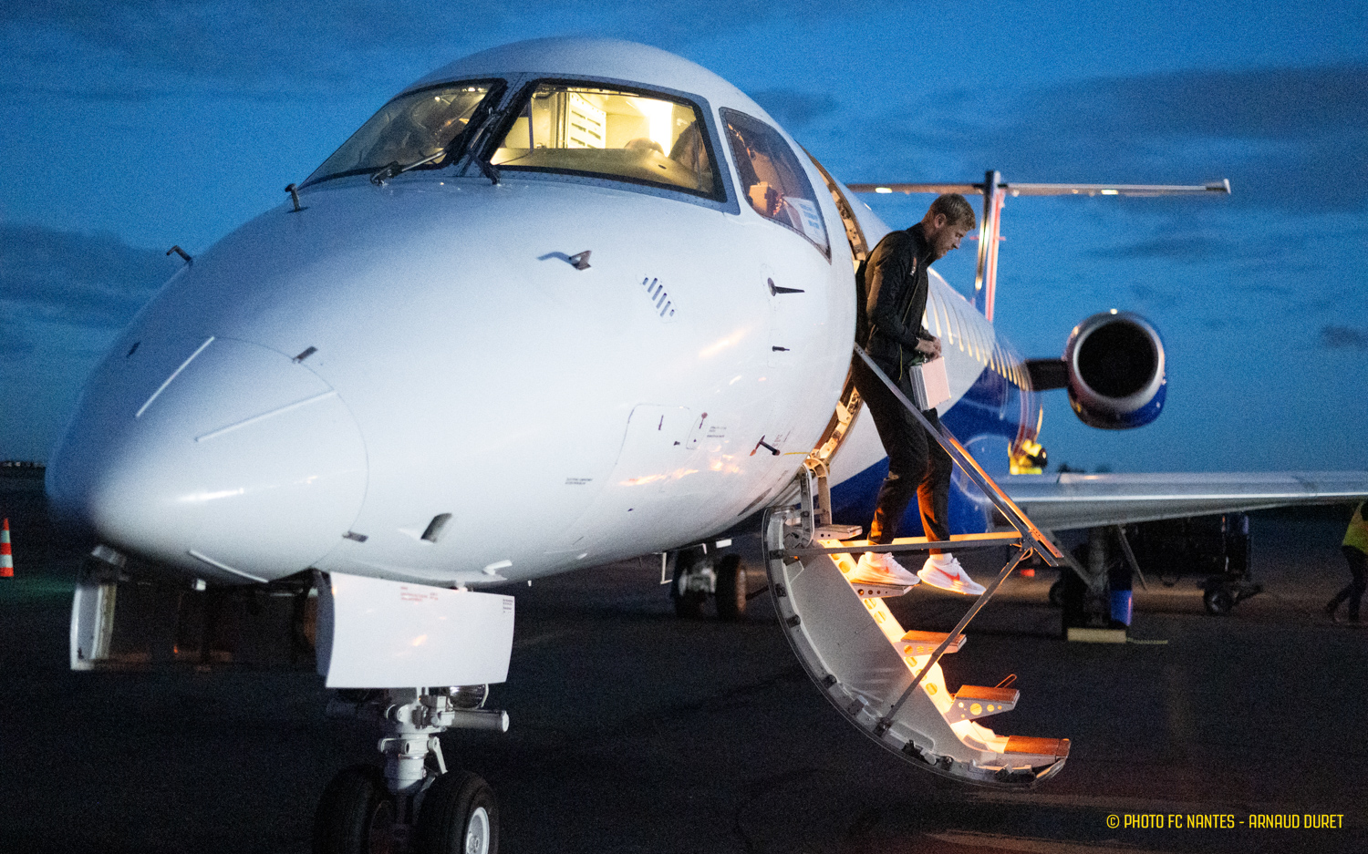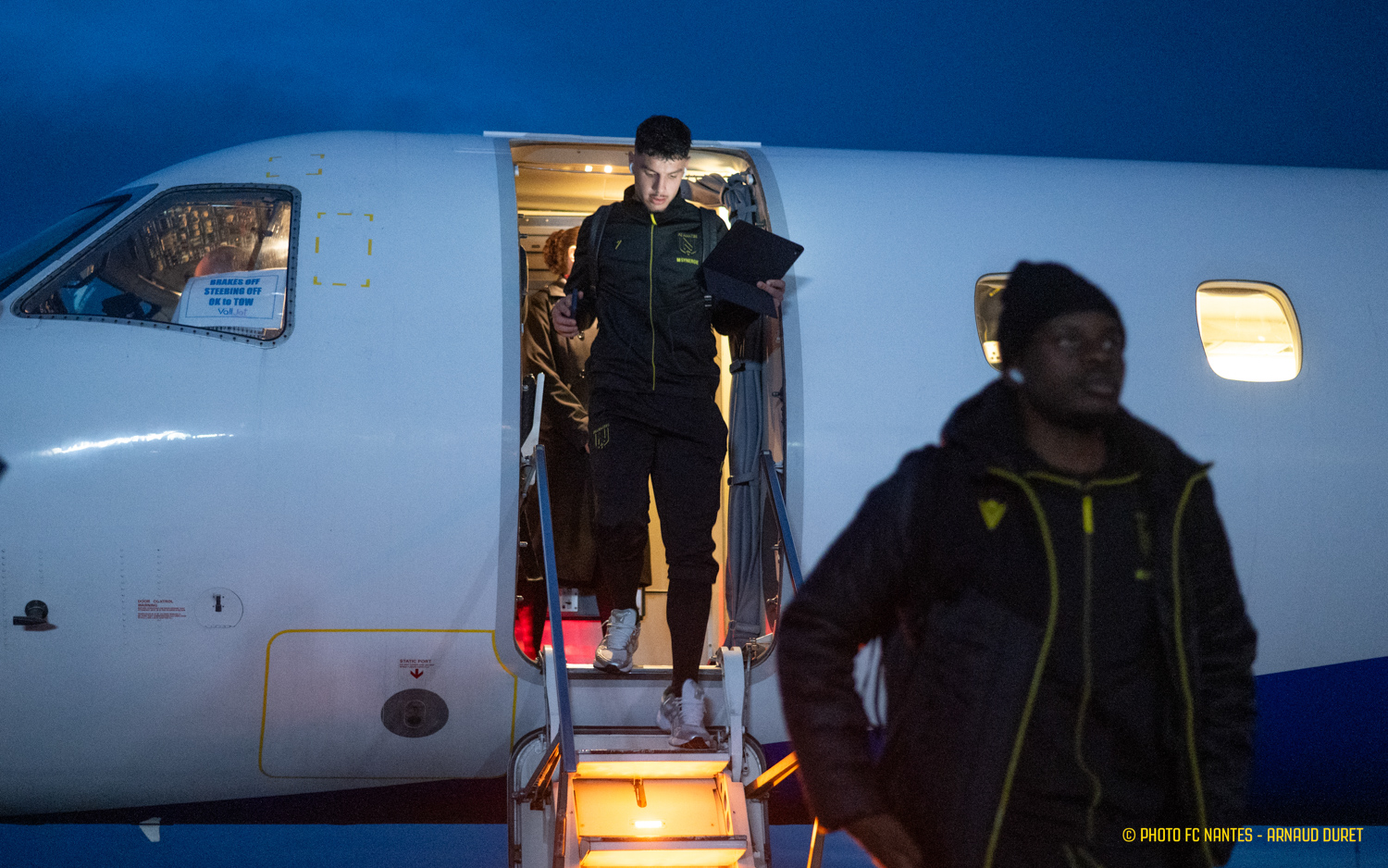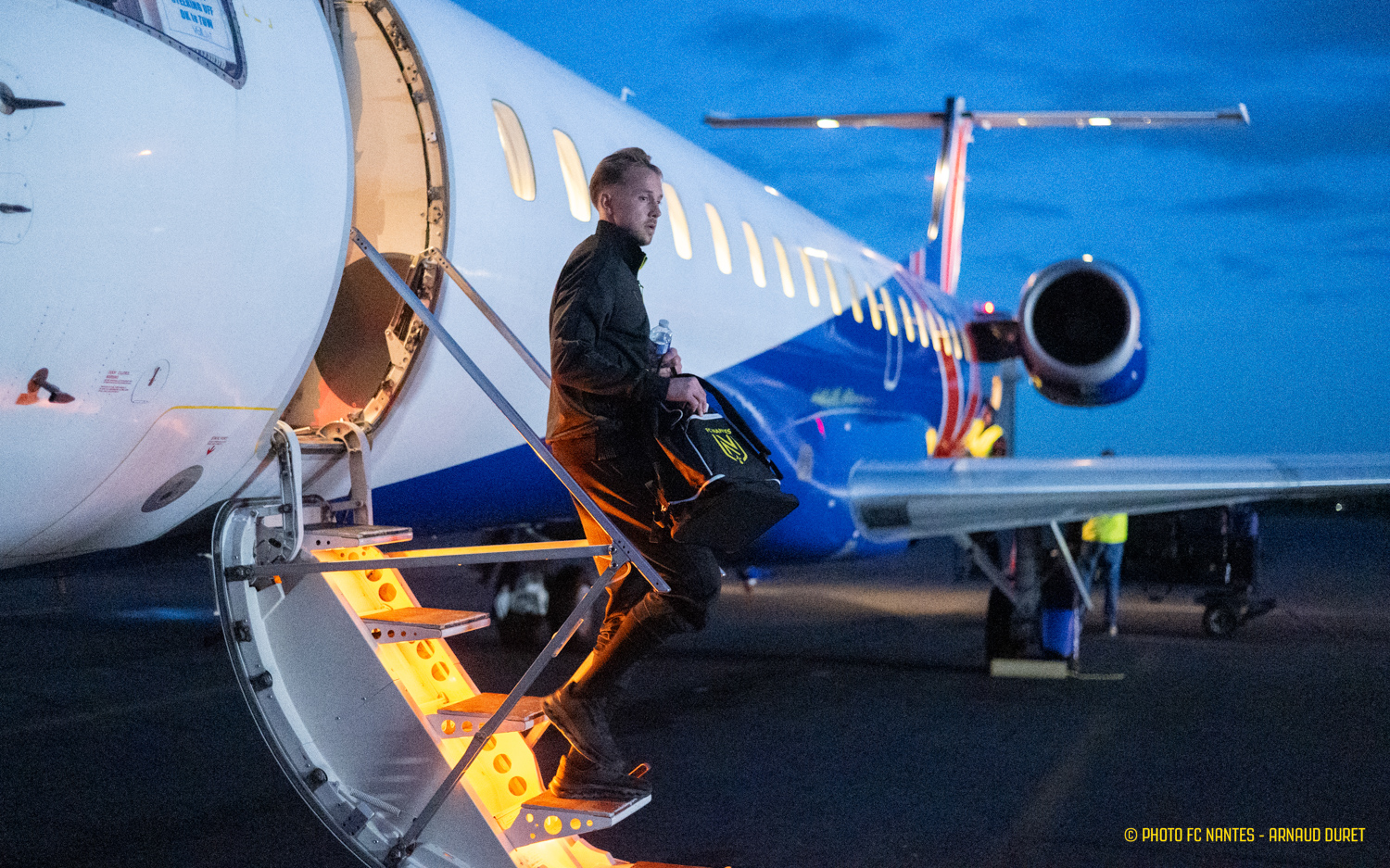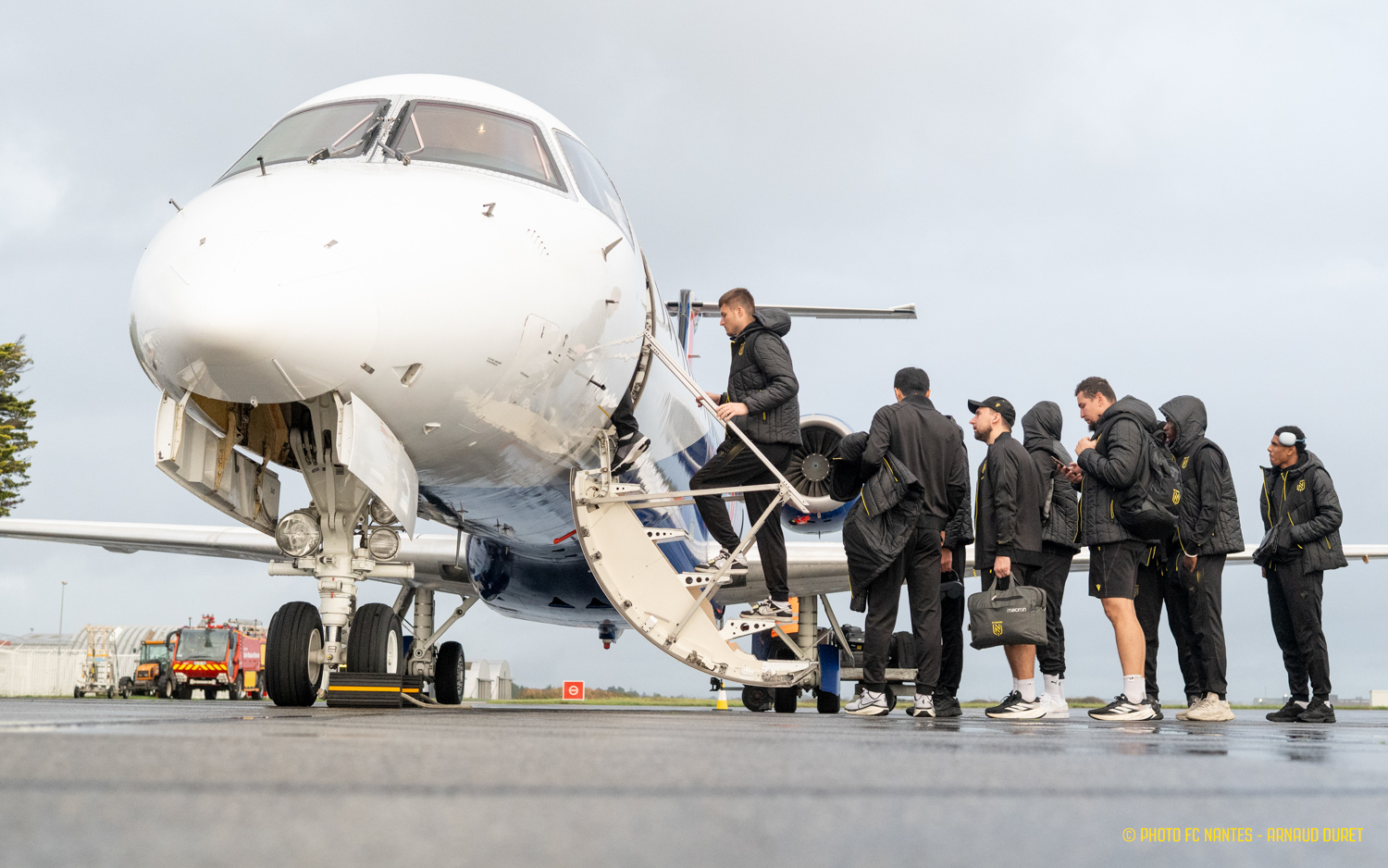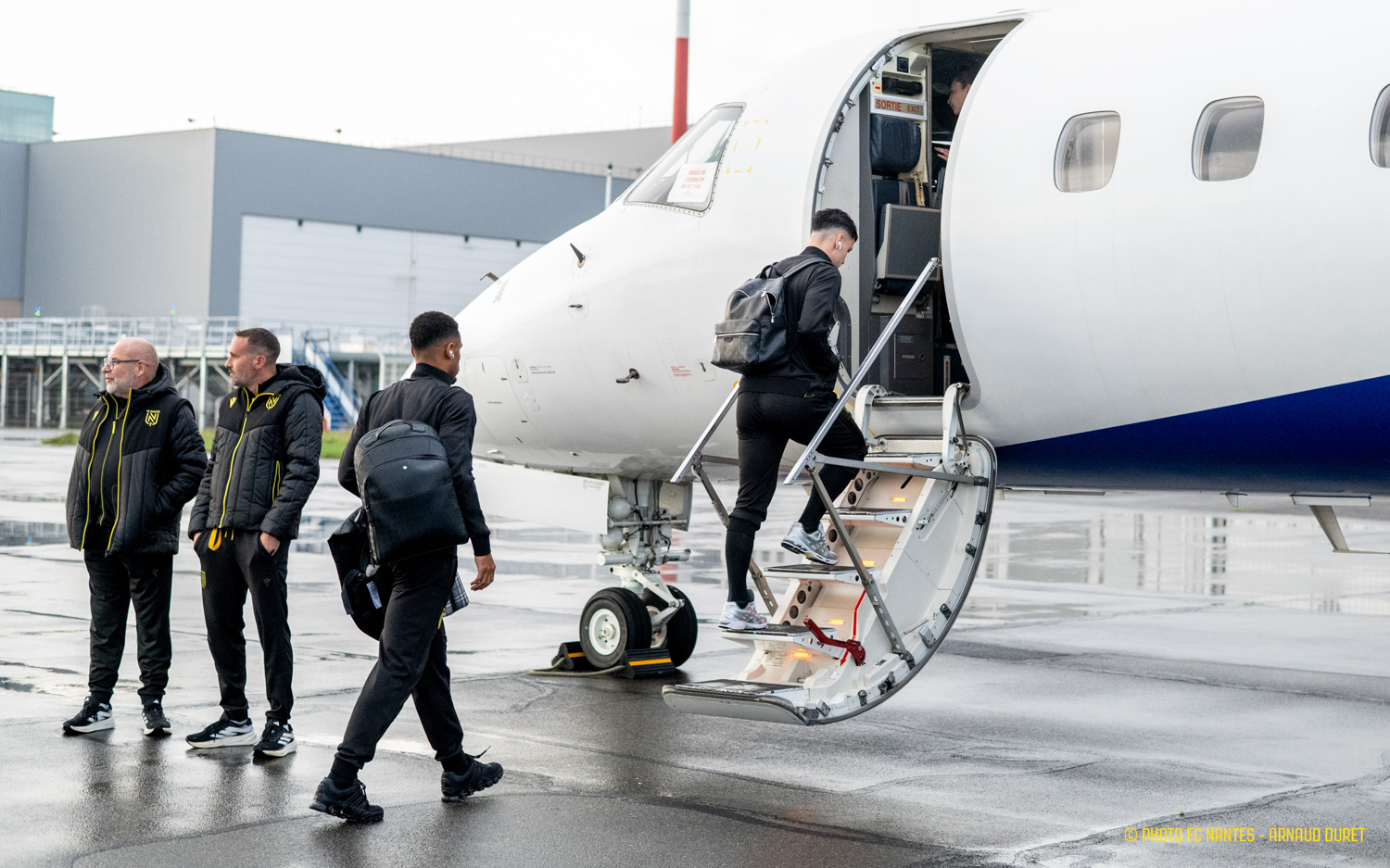 Au terme d'une dernière session de travail programmée vendredi matin au Centre Sportif de la Jonelière, la délégation nantaise a pris la direction de l'Aéroport Saint-Nazaire Montoir pour rejoindre la Normandie. Attendus au stade Océane samedi vers 17h30, les joueurs de Luis Castro peaufinent les réglages à travers un programme spécifique mêlé de réunions techniques et de séances en salle vidéo. Les images du déplacement :