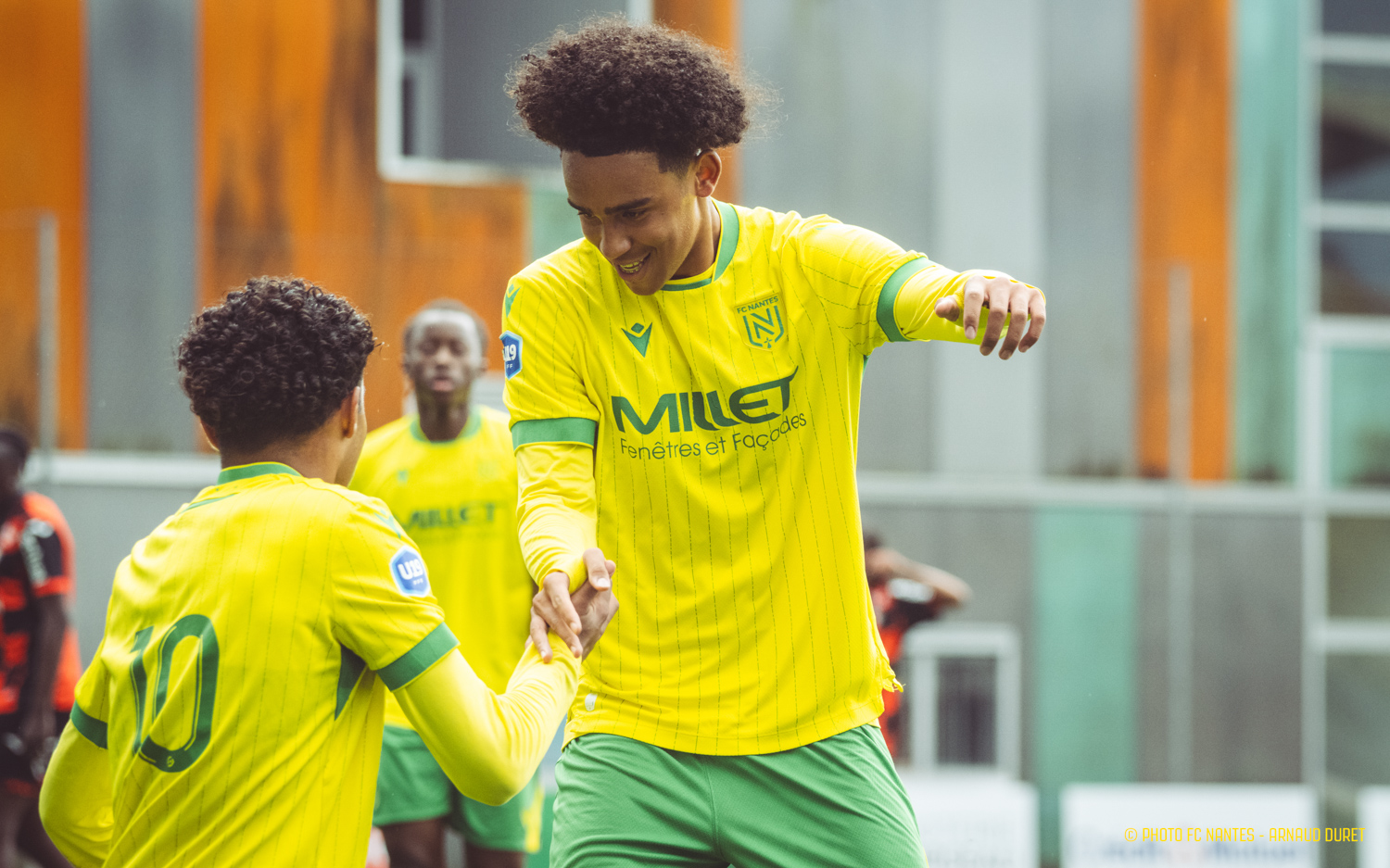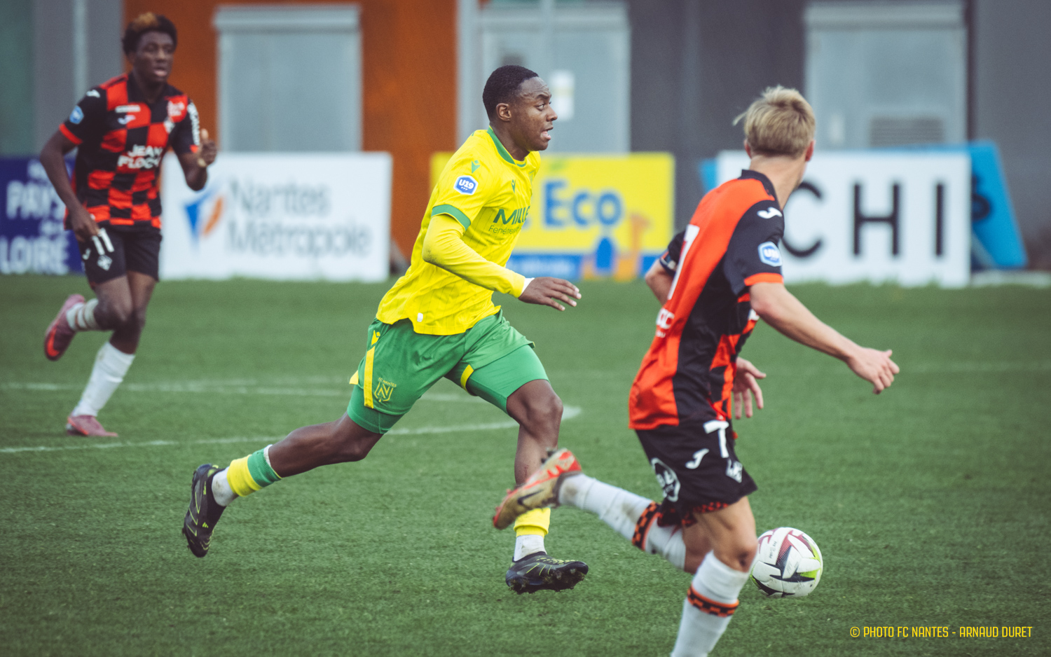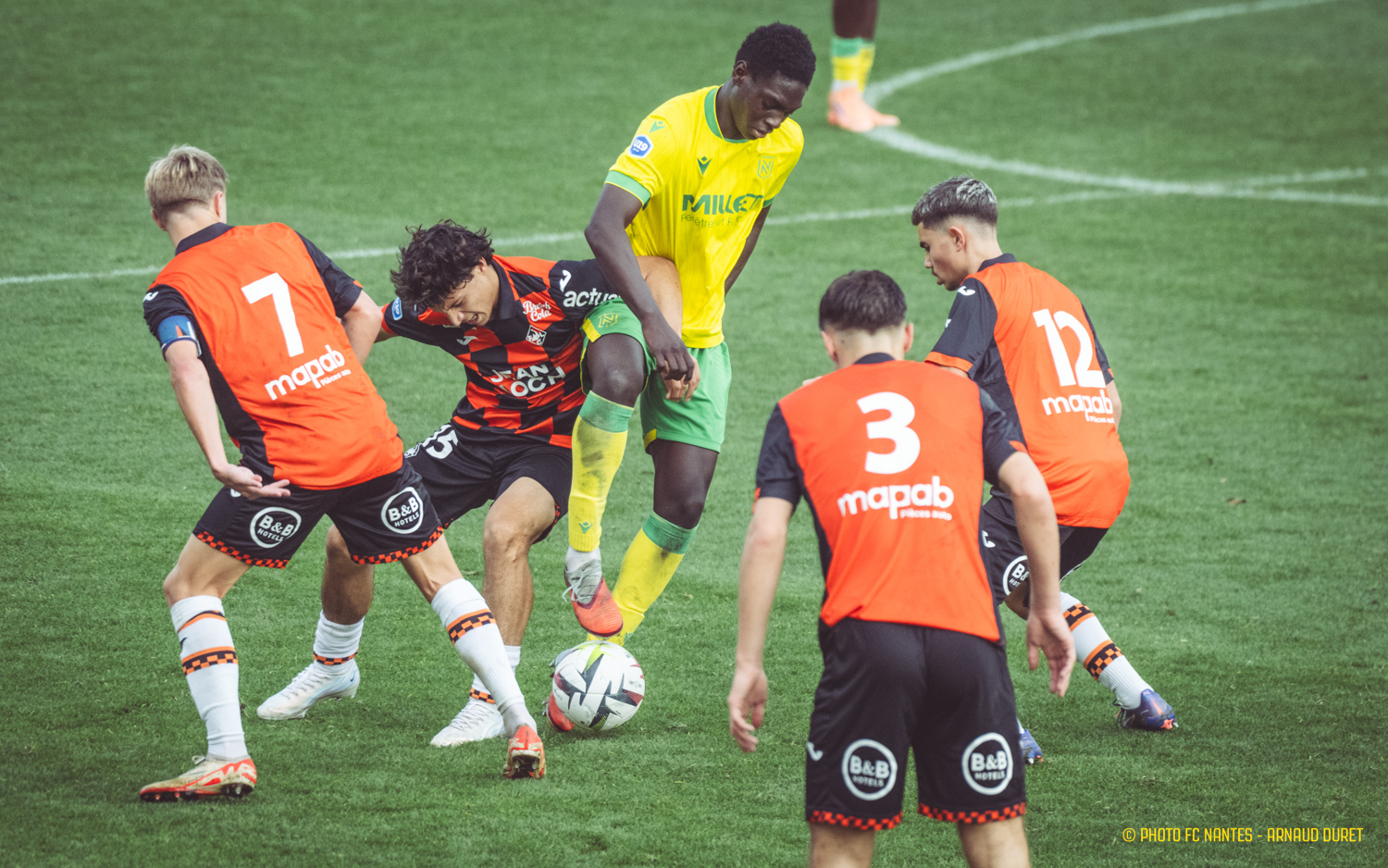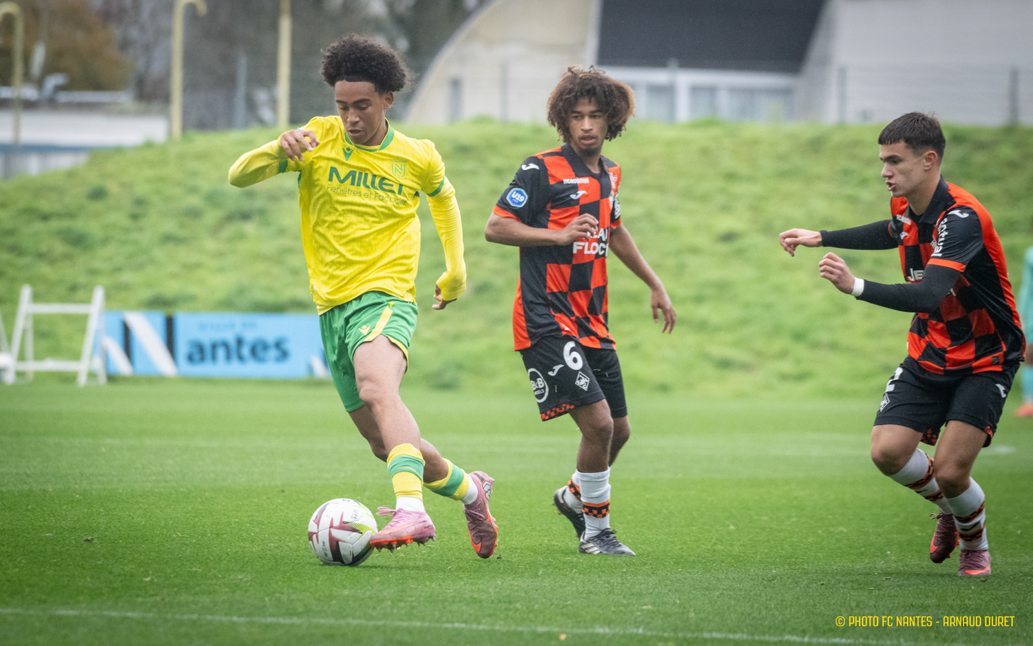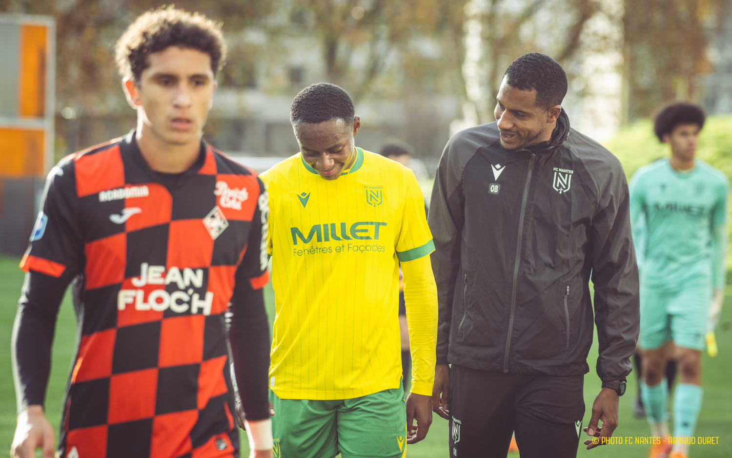 A l’œuvre le week-end dernier à Marcel-Saupin, les U19 Nationaux du FC Nantes se sont imposés aux dépens du FC Lorient dans le cadre du championnat (2-1). Les joueurs de Stéphane Moreau ont pris les devants en première période sur deux réalisations signées Loan Merrifield et Joshua Dago. Les Merlus, volontaires et accrocheurs, ont réduit l'écart en vain en toute fin de match. fcnantes.com vous propose en flashback en images de la rencontre qui permet au FC Nantes d'asseoir sa position en tête de la poule.
