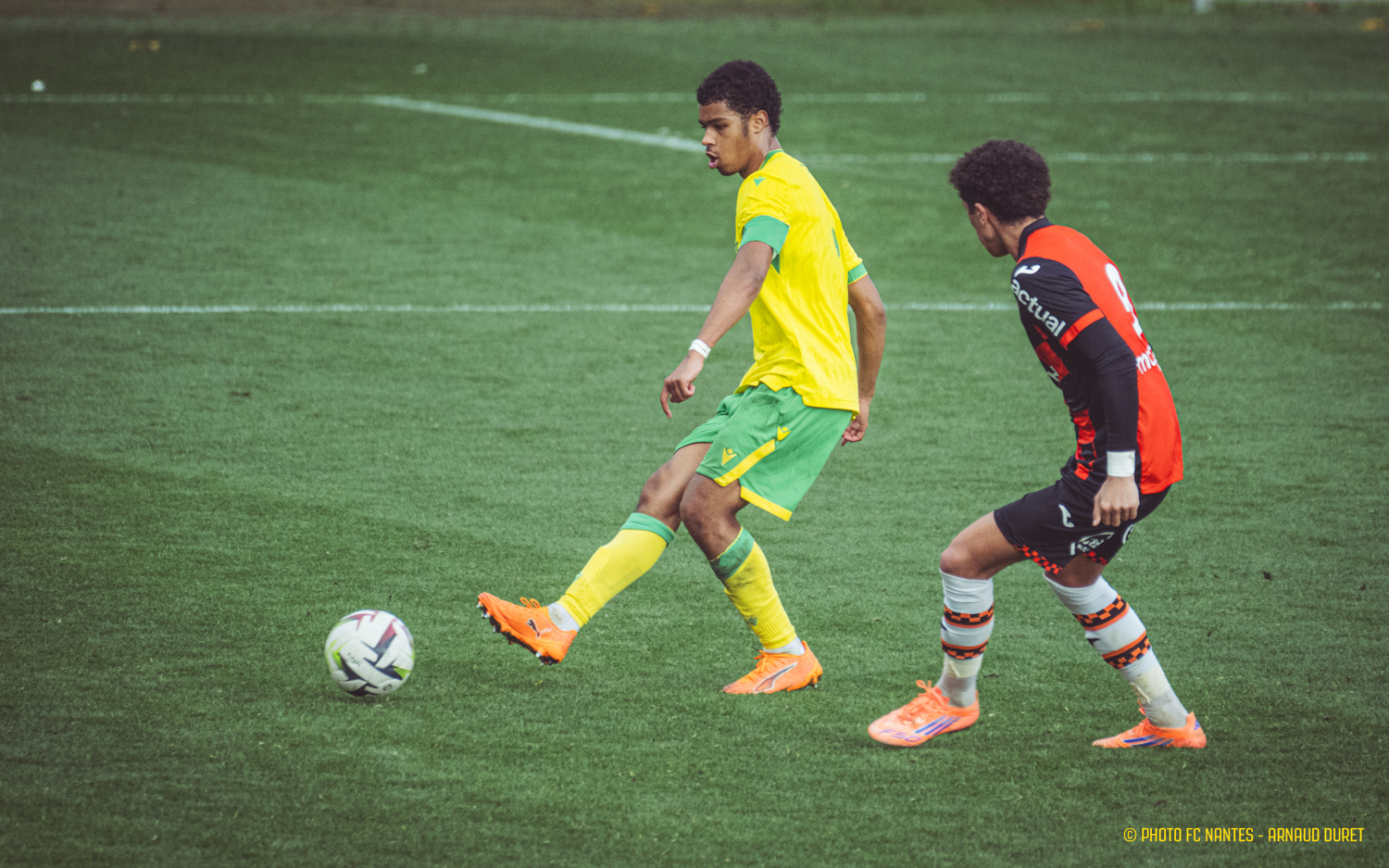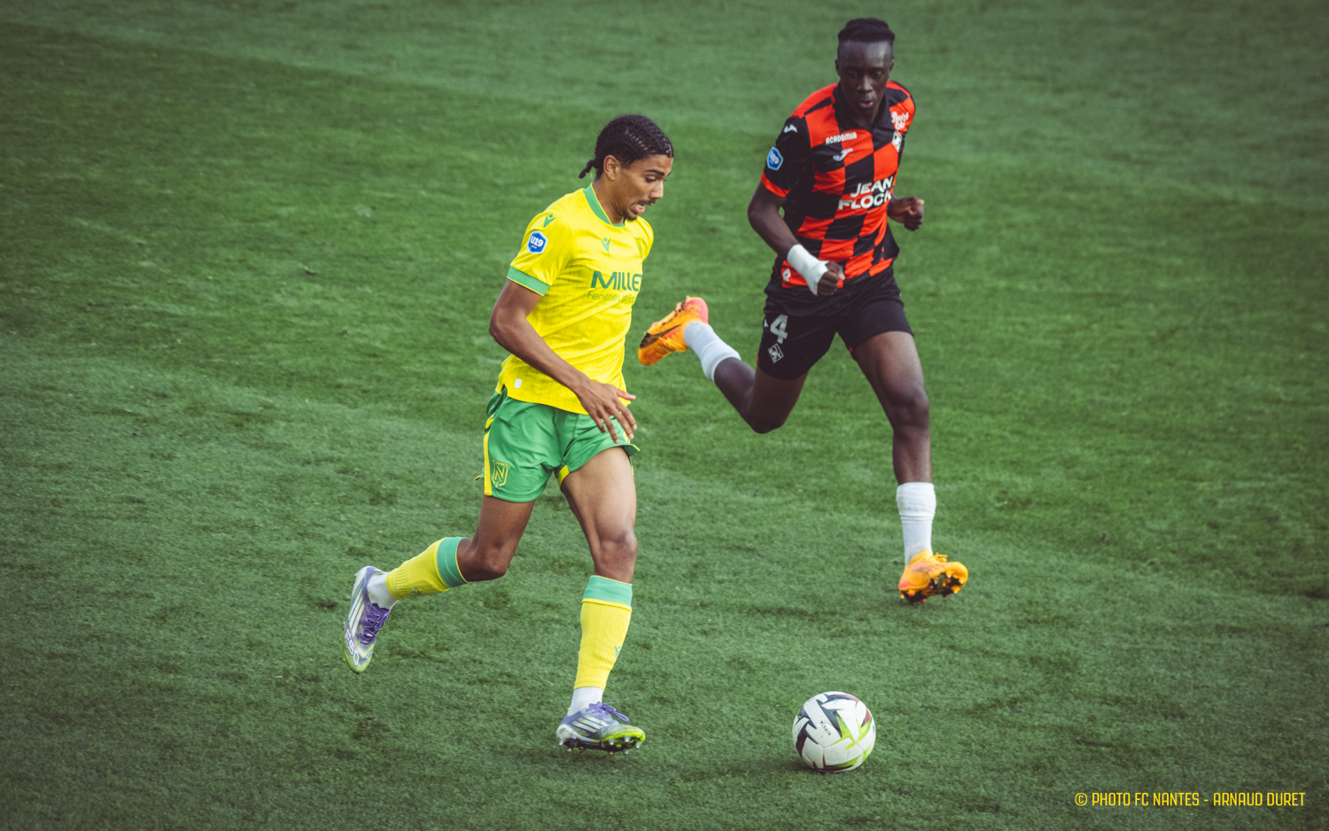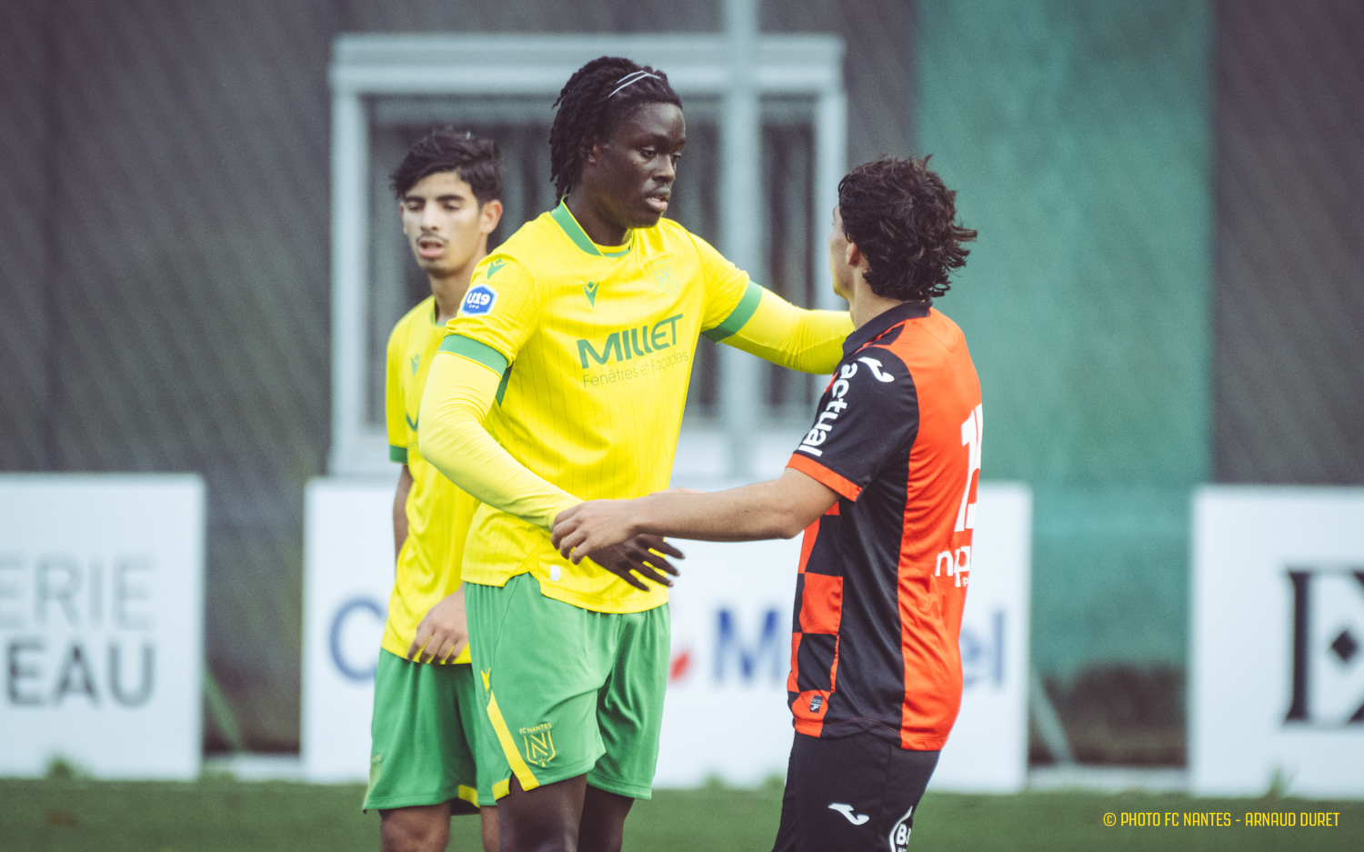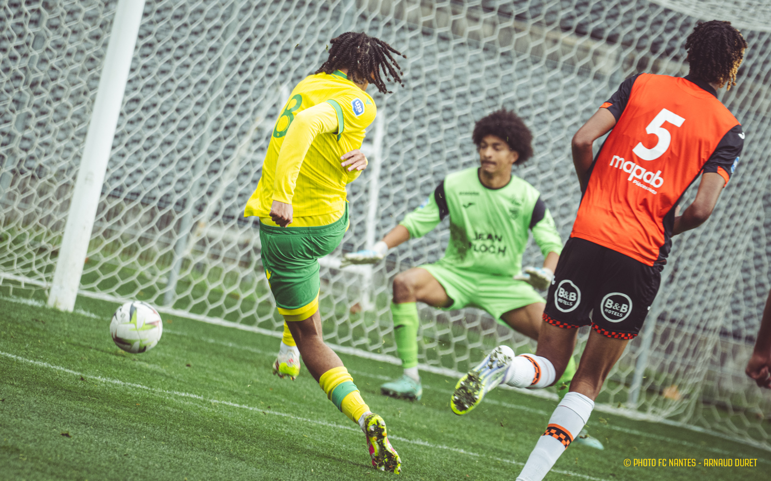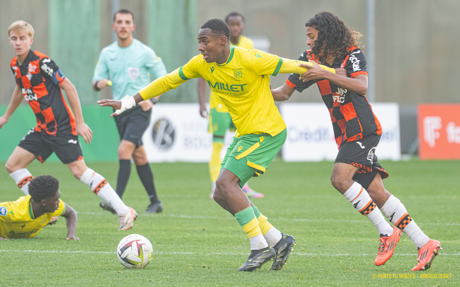 A l’œuvre le week-end dernier à Marcel-Saupin, les U19 Nationaux du FC Nantes se sont imposés aux dépens du FC Lorient dans le cadre du championnat (2-1). Les joueurs de Stéphane Moreau ont pris les devants en première période sur deux réalisations signées Loan Merrifield et Joshua Dago. Les Merlus, volontaires et accrocheurs, ont réduit l'écart en vain en toute fin de match. fcnantes.com vous propose en flashback en images de la rencontre qui permet au FC Nantes d'asseoir sa position en tête de la poule.
