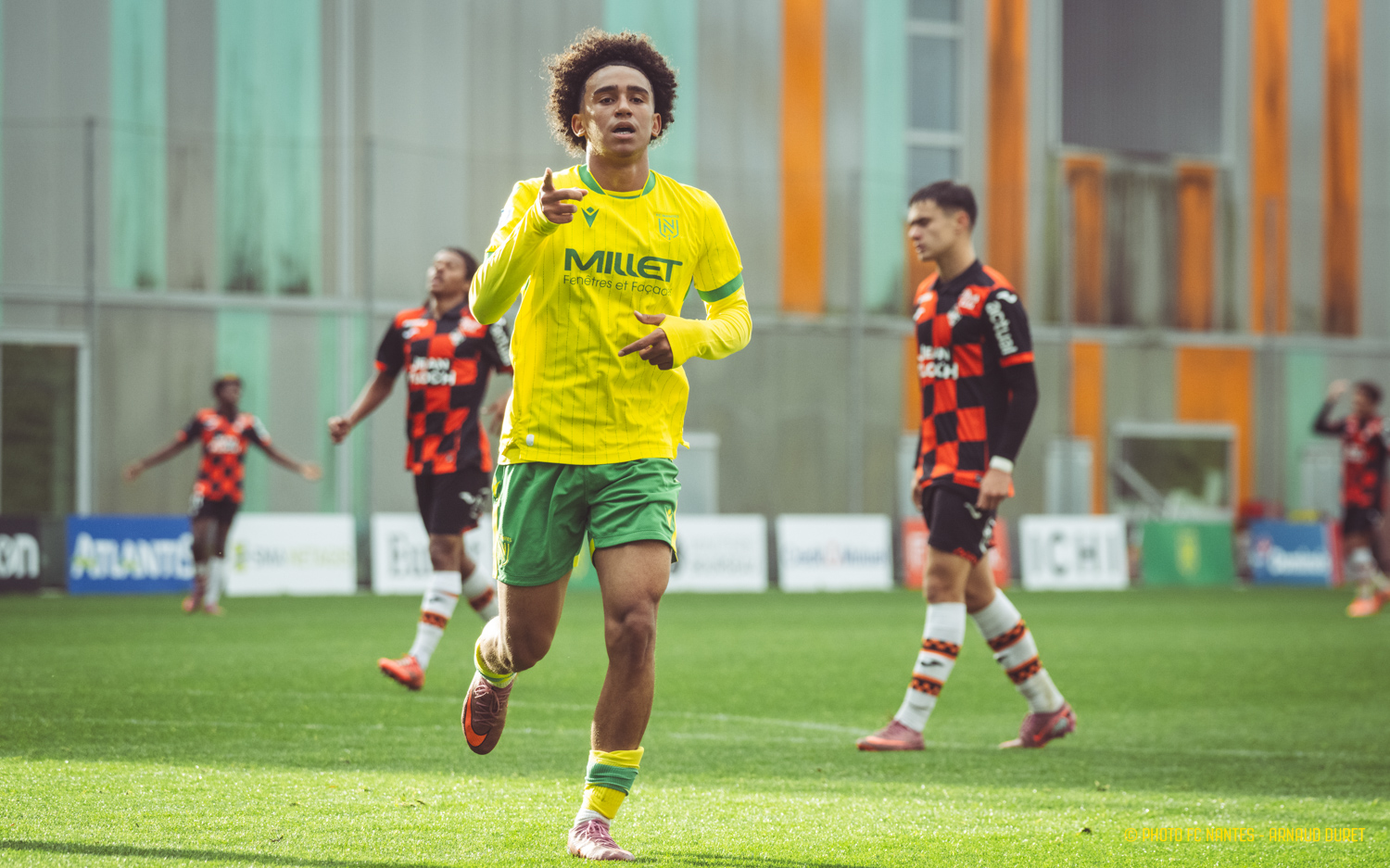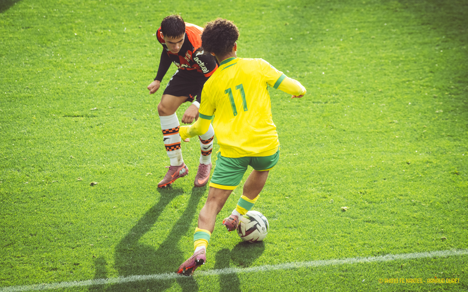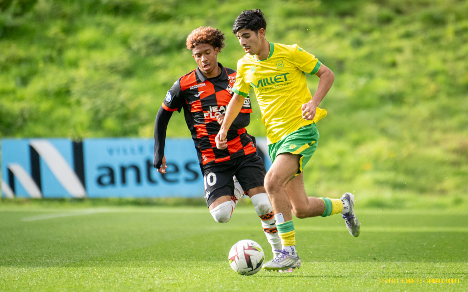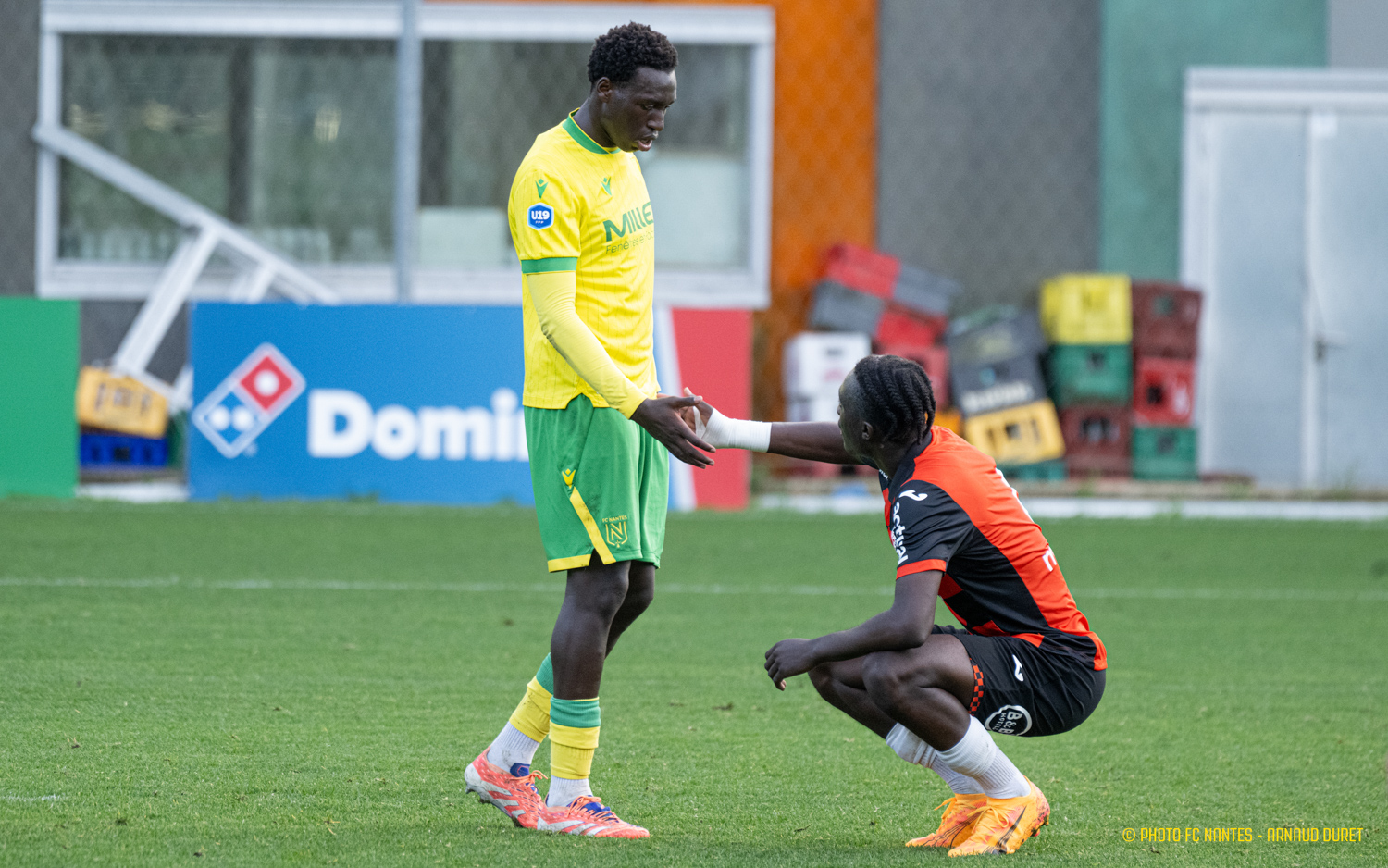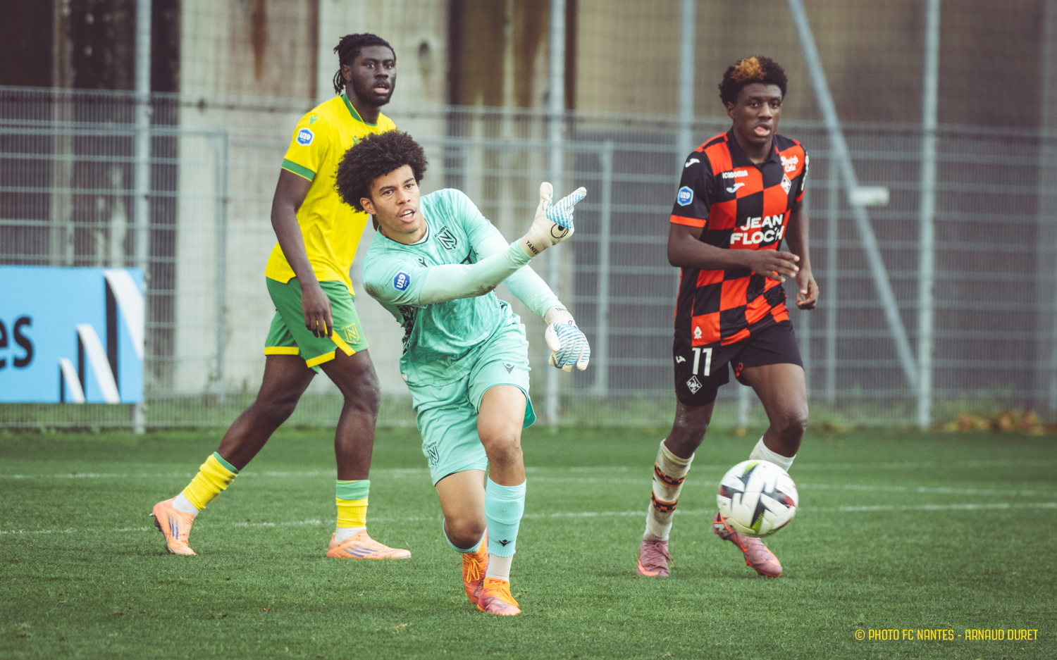 A l’œuvre le week-end dernier à Marcel-Saupin, les U19 Nationaux du FC Nantes se sont imposés aux dépens du FC Lorient dans le cadre du championnat (2-1). Les joueurs de Stéphane Moreau ont pris les devants en première période sur deux réalisations signées Loan Merrifield et Joshua Dago. Les Merlus, volontaires et accrocheurs, ont réduit l'écart en vain en toute fin de match. fcnantes.com vous propose en flashback en images de la rencontre qui permet au FC Nantes d'asseoir sa position en tête de la poule.