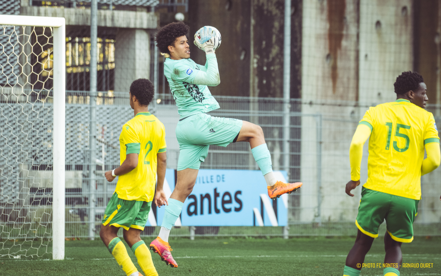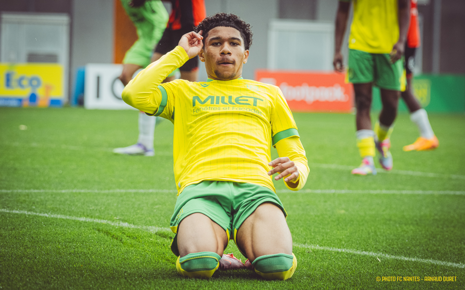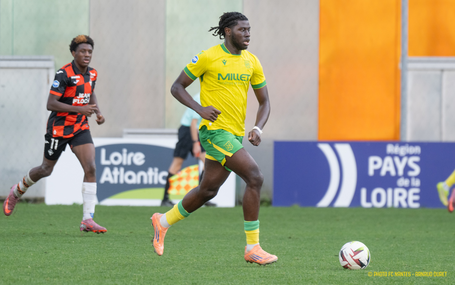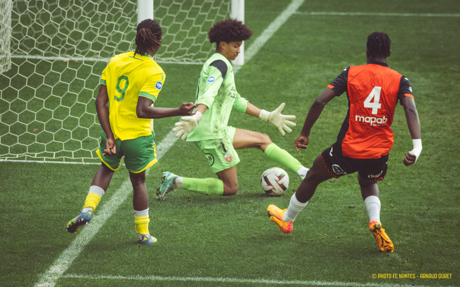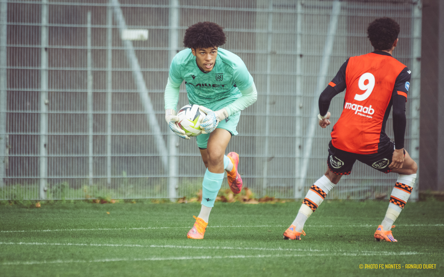 A l’œuvre le week-end dernier à Marcel-Saupin, les U19 Nationaux du FC Nantes se sont imposés aux dépens du FC Lorient dans le cadre du championnat (2-1). Les joueurs de Stéphane Moreau ont pris les devants en première période sur deux réalisations signées Loan Merrifield et Joshua Dago. Les Merlus, volontaires et accrocheurs, ont réduit l'écart en vain en toute fin de match. fcnantes.com vous propose en flashback en images de la rencontre qui permet au FC Nantes d'asseoir sa position en tête de la poule.
