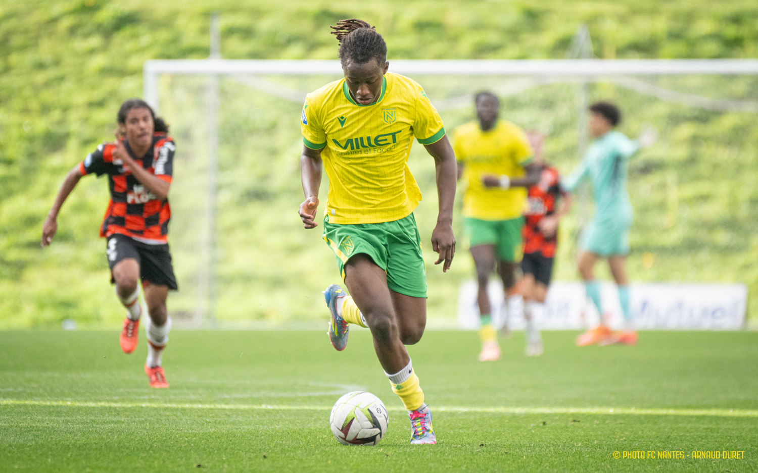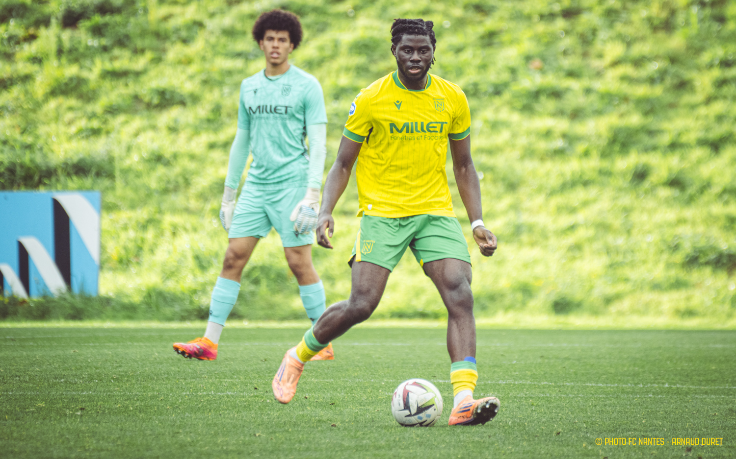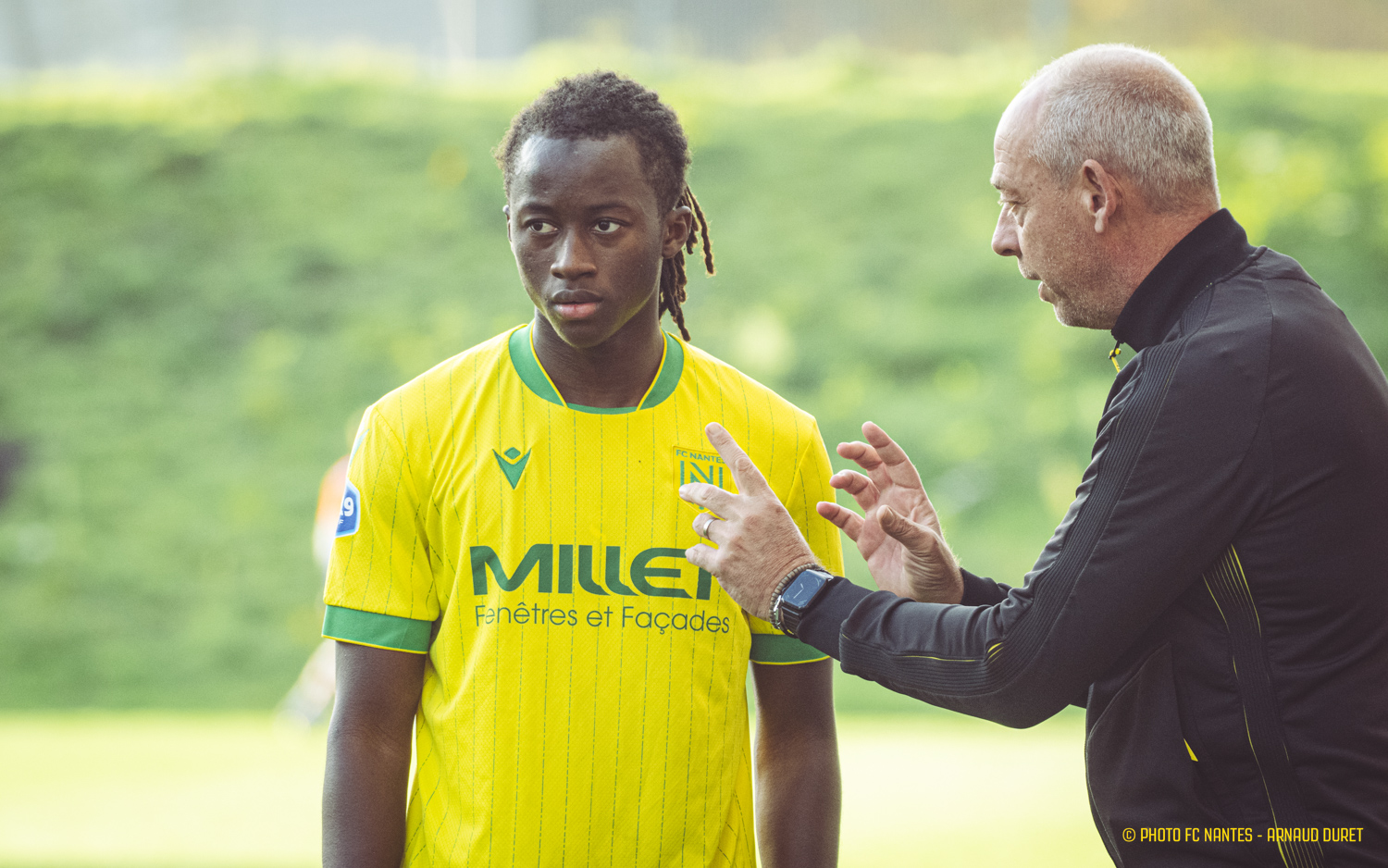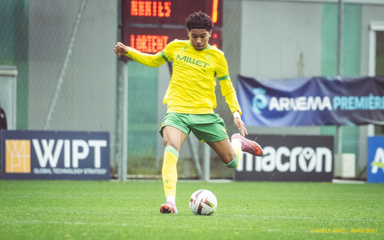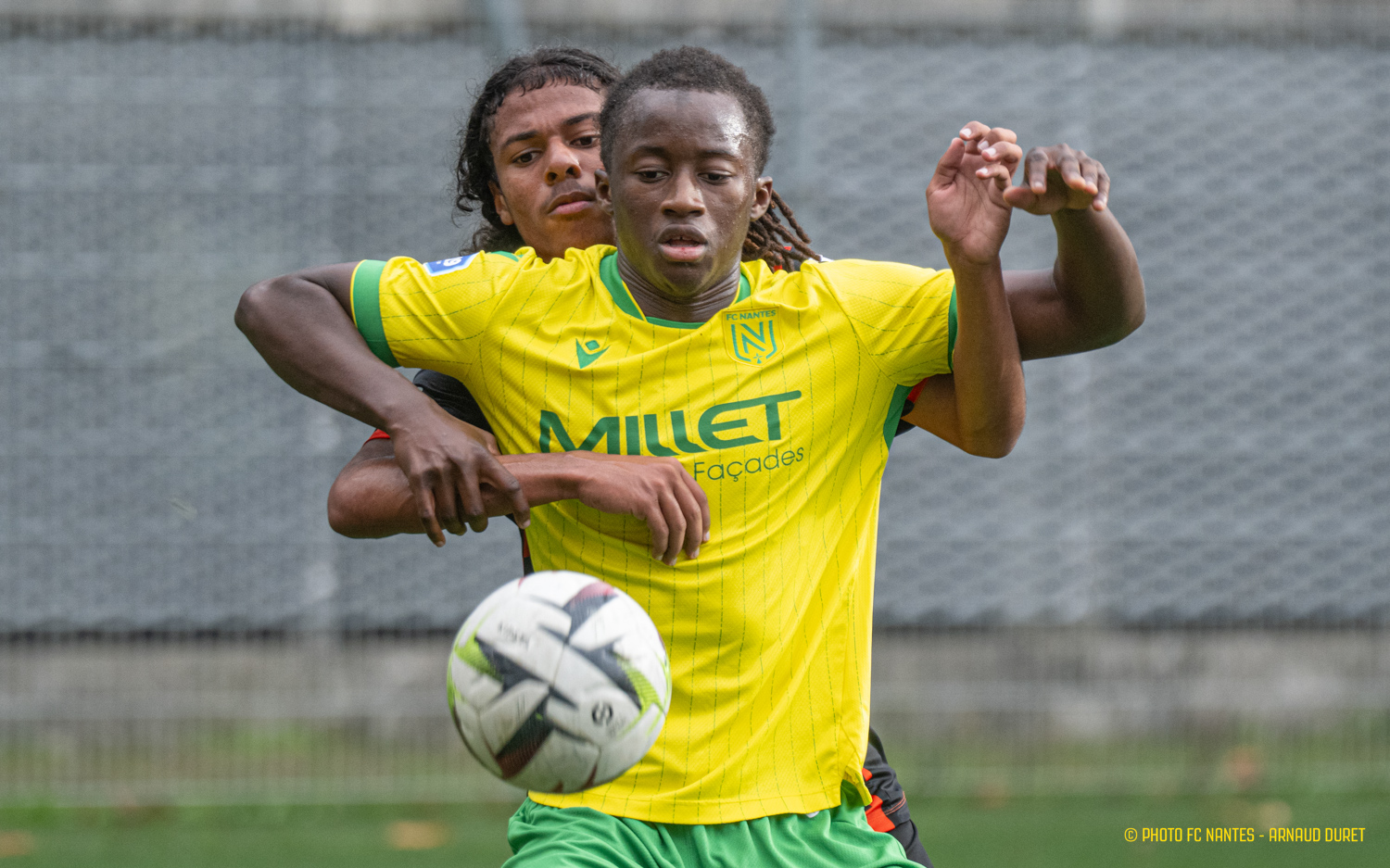 A l’œuvre le week-end dernier à Marcel-Saupin, les U19 Nationaux du FC Nantes se sont imposés aux dépens du FC Lorient dans le cadre du championnat (2-1). Les joueurs de Stéphane Moreau ont pris les devants en première période sur deux réalisations signées Loan Merrifield et Joshua Dago. Les Merlus, volontaires et accrocheurs, ont réduit l'écart en vain en toute fin de match. fcnantes.com vous propose en flashback en images de la rencontre qui permet au FC Nantes d'asseoir sa position en tête de la poule.