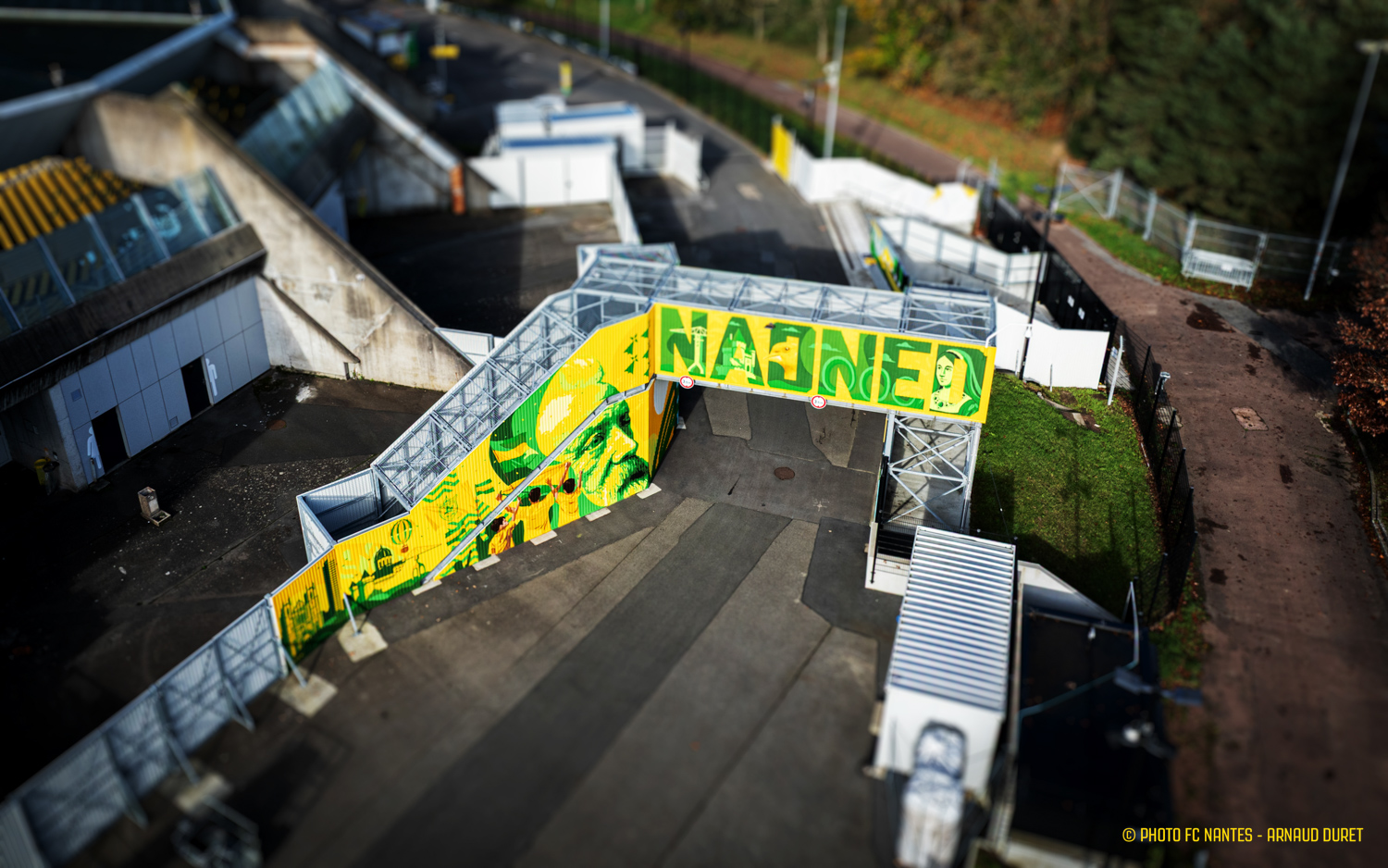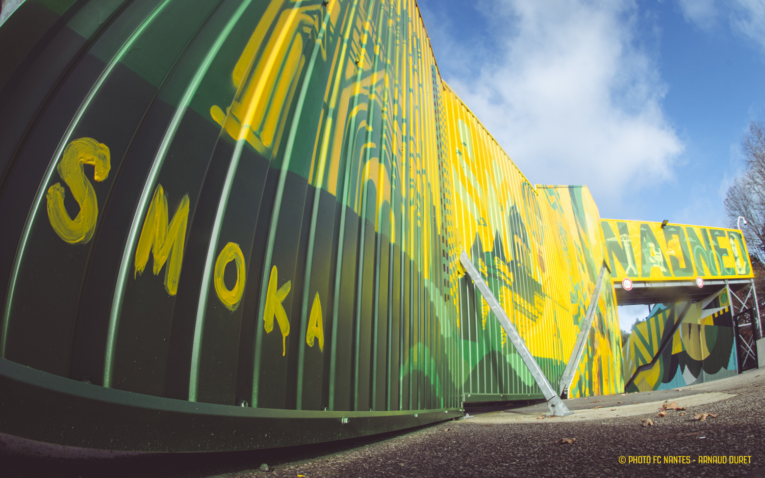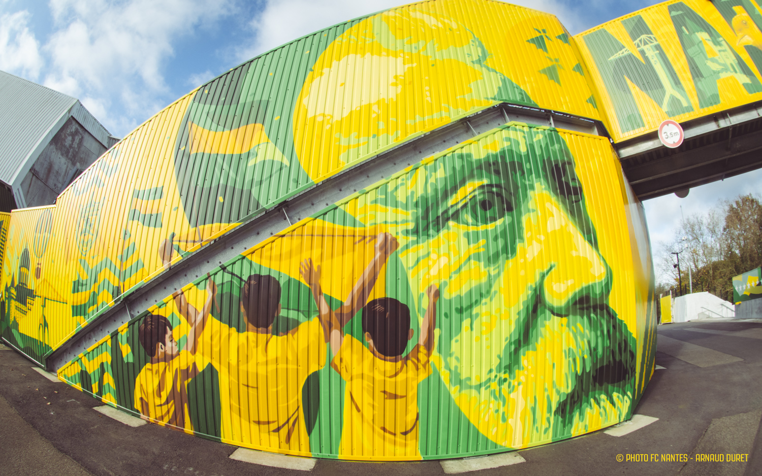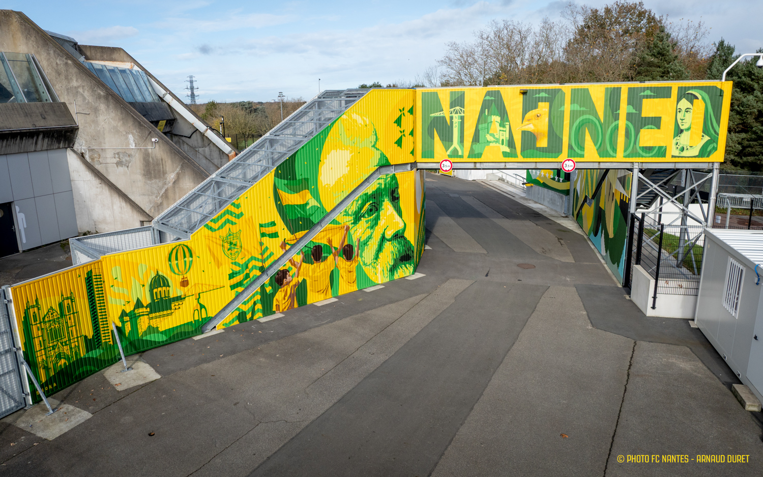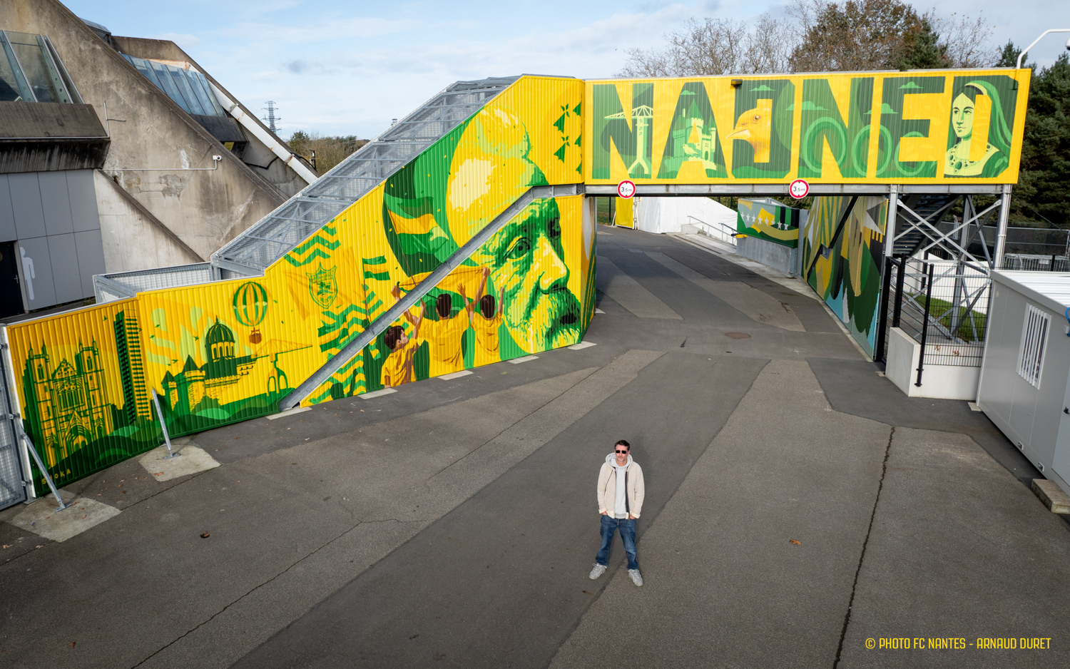 La Fondation FC Nantes avait à cœur d'habiller cette passerelle visiteur, de lui donner une entité. Elle a contacté une grosse partie des street artistes nantais et j'ai été sélectionné. On s'est rencontré avec le club, on a échangé sur la fresque. On a travaillé ensemble, et après plusieurs propositions de ma part, une fois tout le monde d'accord, c'est parti, on s'est lancé.