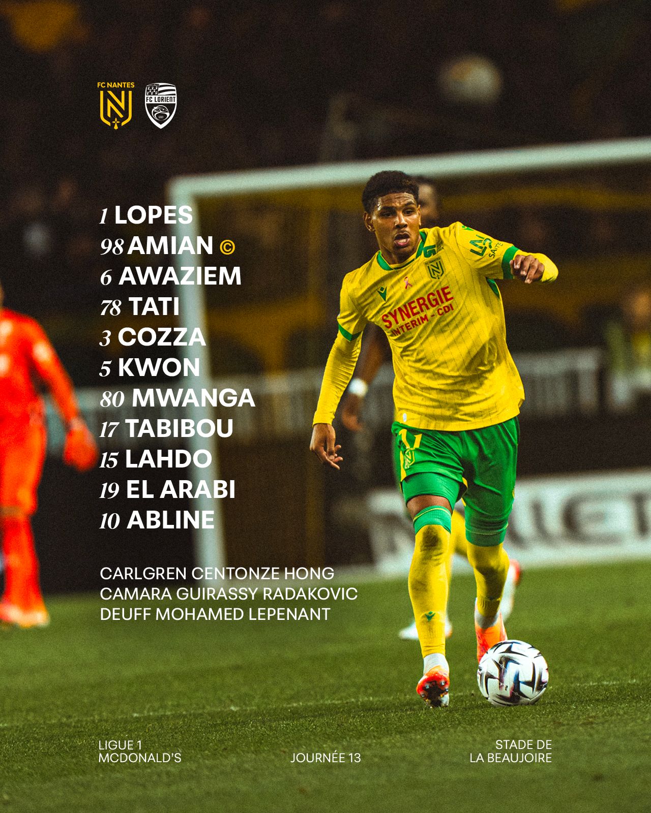 Retrouvez la composition retenue par Luis Castro pour débuter le match face au FC Lorient, en 13ème journée de Ligue 1 McDonald's. Coup d'envoi de la rencontre à 17h15.