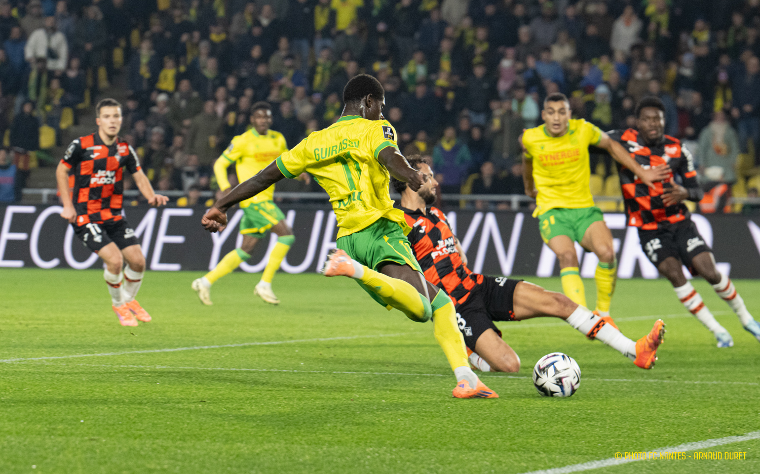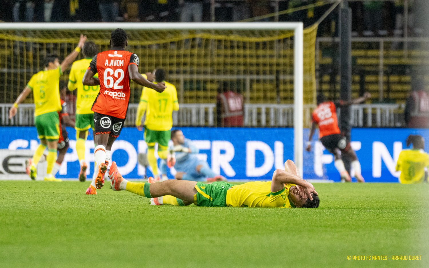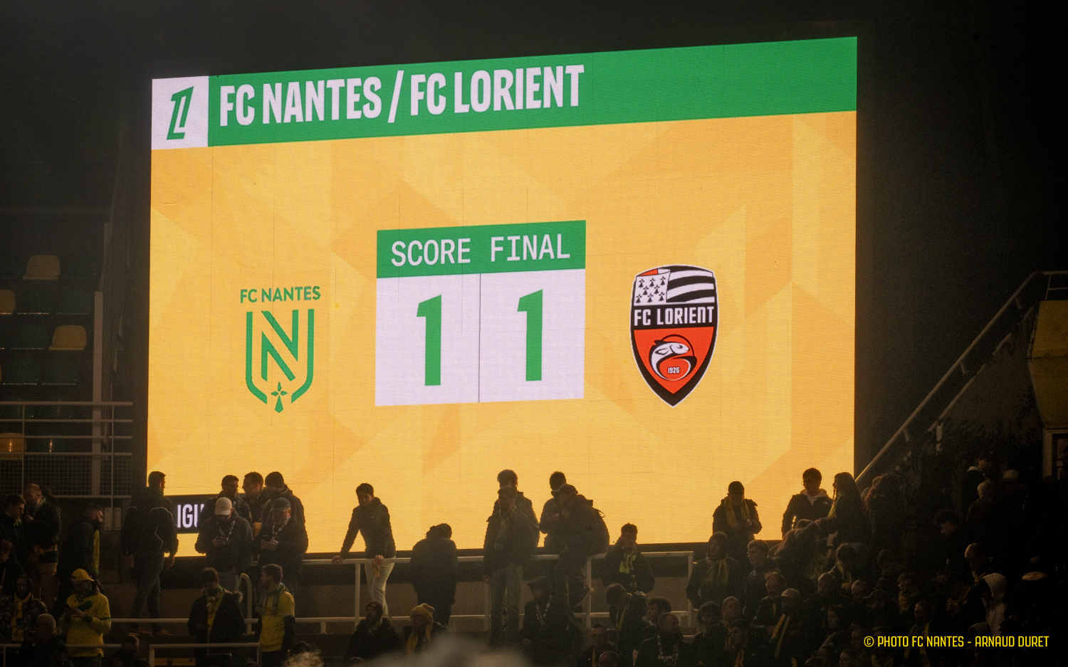 Nantais et Lorientais n'ont pas réussi à se départager dimanche soir à la Beaujoire (1-1). Menés au score suite à un csc de Chidozie Awaziem (46e), les joueurs de Luis Castro ont trouvé les ressources nécessaires pour recoller au score au bout du suspense. L'international nigérian se faisait justice en catapultant d'une tête piquée le ballon au fond des filets lorientais (90e +1). Un partage des points qui permet au FC Nantes de grappiller un point précieux et de remonter au général. Flashback en images sur ce derby disputé devant près de 26000 supporters.