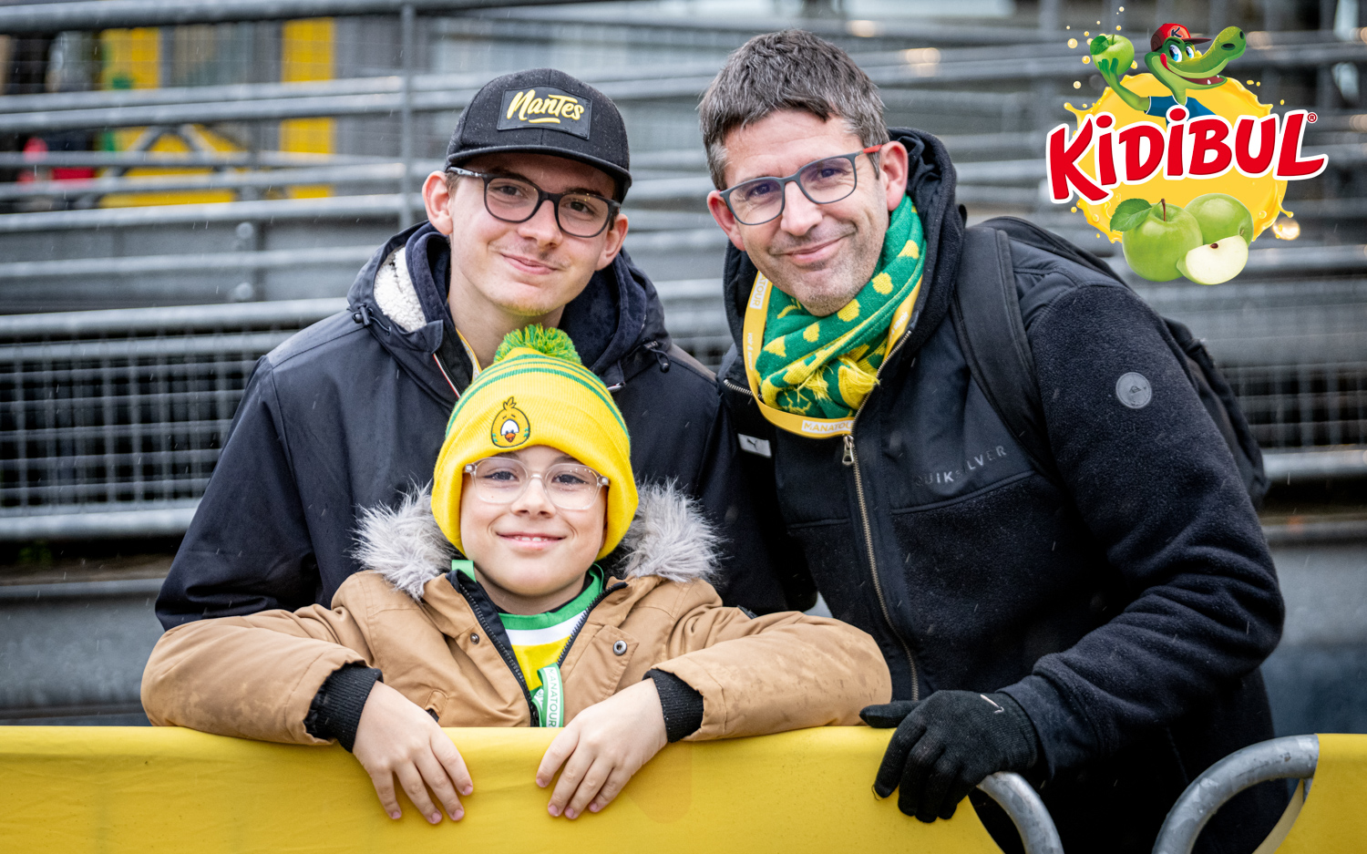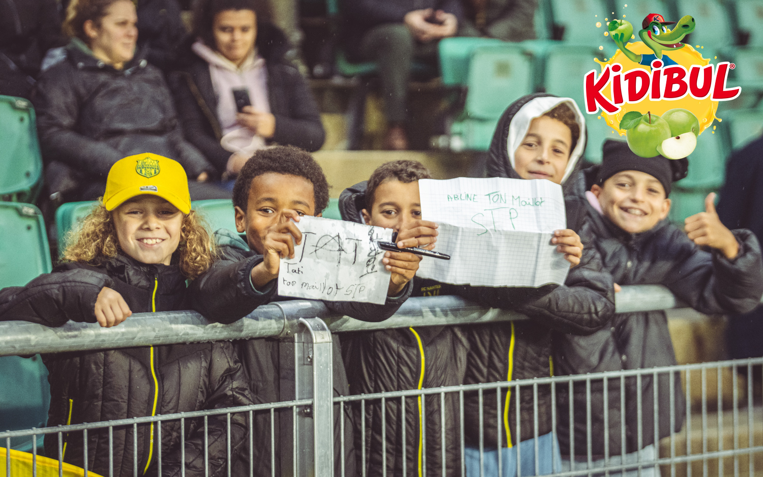 A l'occasion de la venue du FC Lorient, les jeunes passionnés du FC Nantes ont une nouvelle fois manifesté leur enthousiasme et donné de la voix pour soutenir les Jaunes et Verts. Nos plus jeunes supporters y ont cru jusqu'au bout et ont poussé les coéquipiers de Kelvin Amian avec ferveur, fierté et passion. Ces moments, accompagnés par KIDIBUL, jus de pomme 100% naturel, restent magiques et mémorables. Rendez-vous au prochain match à la Beaujoire face au RC Lens !