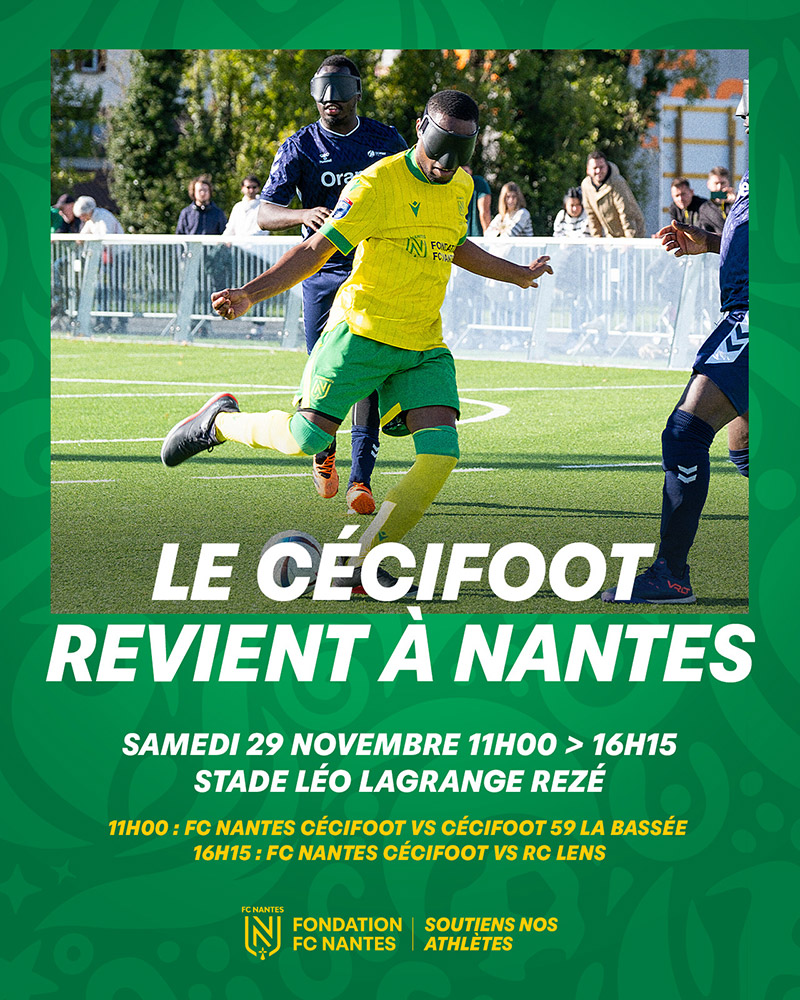Nouveau rendez-vous cecifoot ! Venez nombreux encourager notre équipe du FC Nantes engagée dans 2 matchs samedi au Stade Lagrange à Rezé. Entrée gratuite.