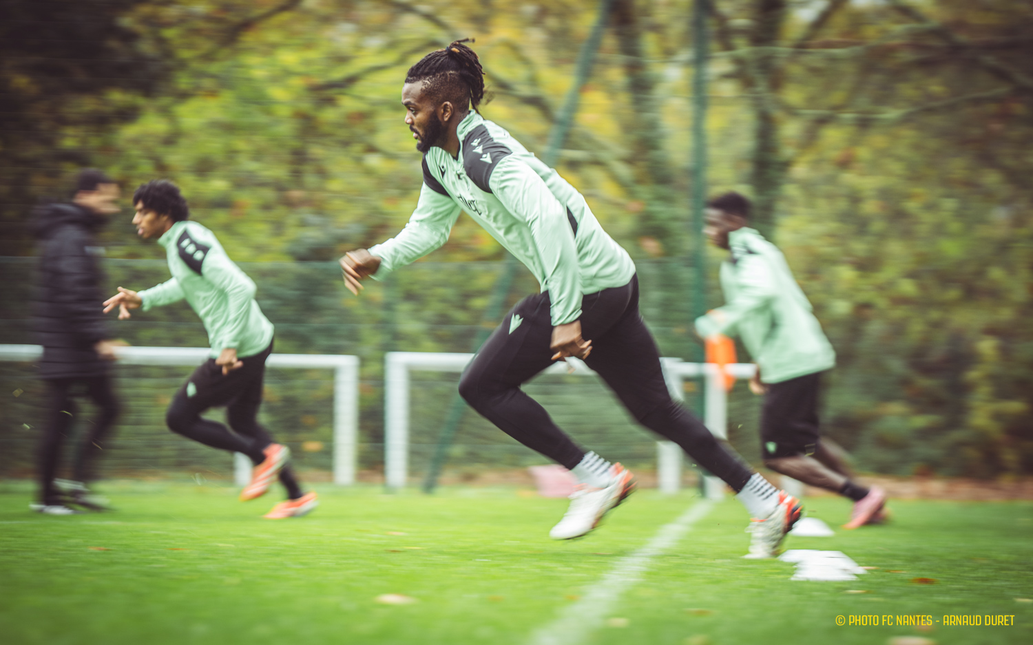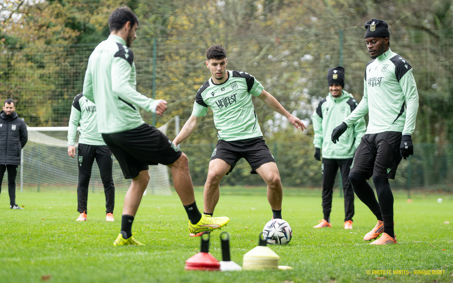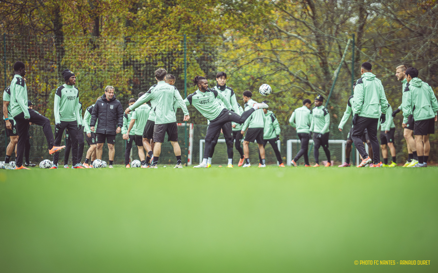 Les Jaunes-et-Verts ont poursuivi vendredi matin leur préparation pour l'affiche de la 14ème journée de Ligue 1 McDonald's. En déplacement à Lyon, dimanche 30 novembre 2025 (20h45), les joueurs de Luis Castro enchainent les séquences de jeu afin de répondre présent au Groupama Stadium. Focus sur la préparation des coéquipiers de Chidozie Awaziem (photo en UNE) à l’œuvre au Centre Sportif de la Jonelière.