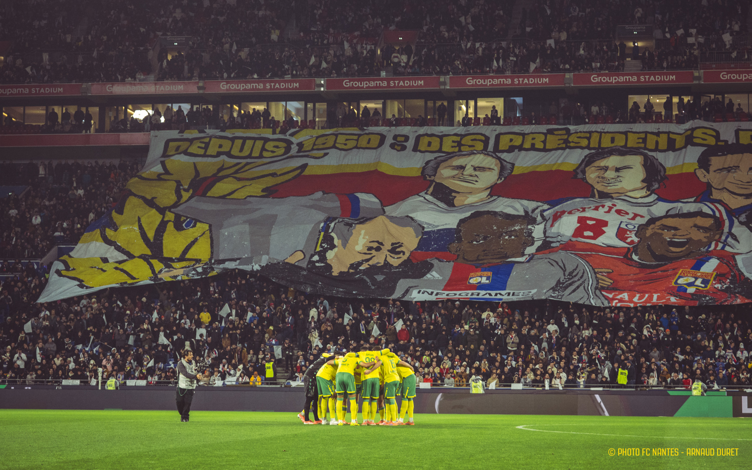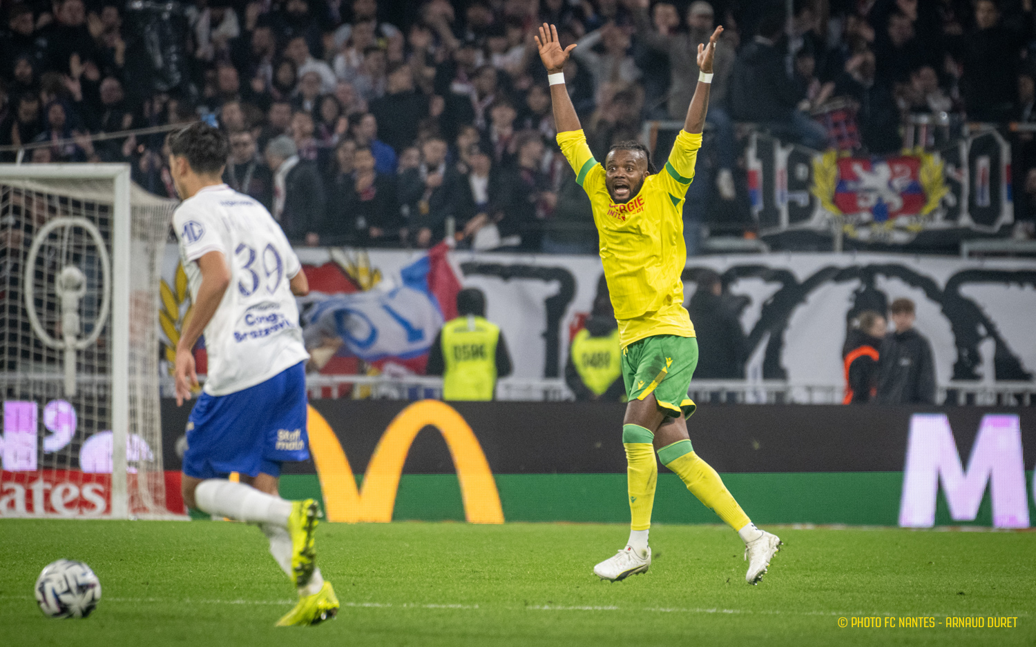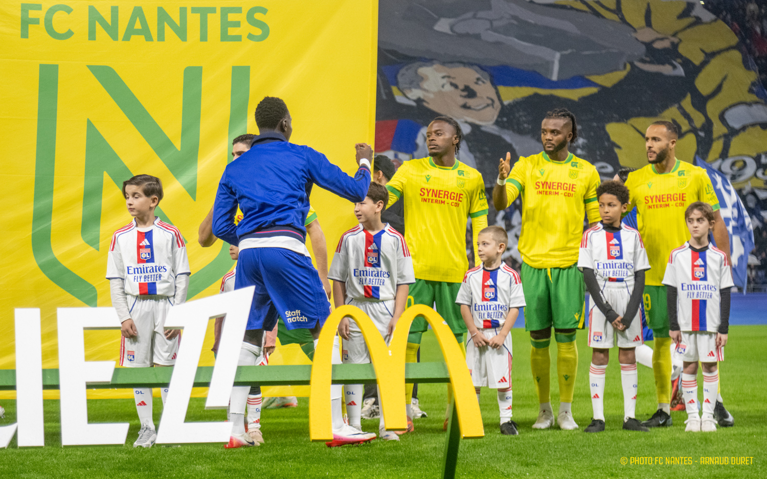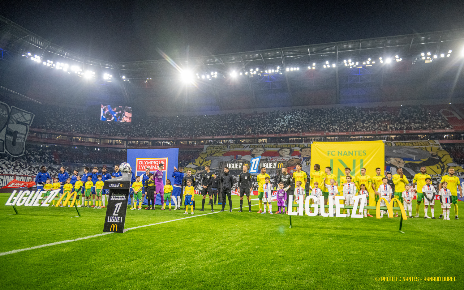 Le FC Nantes s'est inclinĂ© face Ă l'Olympique Lyonnais au Groupama Stadium (3-0). Soutenus par près de 300 supporters, les Jaunes-et-Verts ont rĂ©sistĂ© une pĂ©riode au cĹ“ur d'une enceinte festive pour le 75ème anniversaire du club rhodanien. RĂ©duits Ă dix suite Ă l'exclusion de Junio Mwanga (43e), les coĂ©quipiers de Kelvin Amian ont cĂ©dĂ© face aux vagues offensives adverses et la rĂ©ussite d'Abner VinĂcius (51e) et Martin Satriano (70e et 77e). Flashback en images sur l'affiche de la 14ème journĂ©e de Ligue 1 McDonald's.