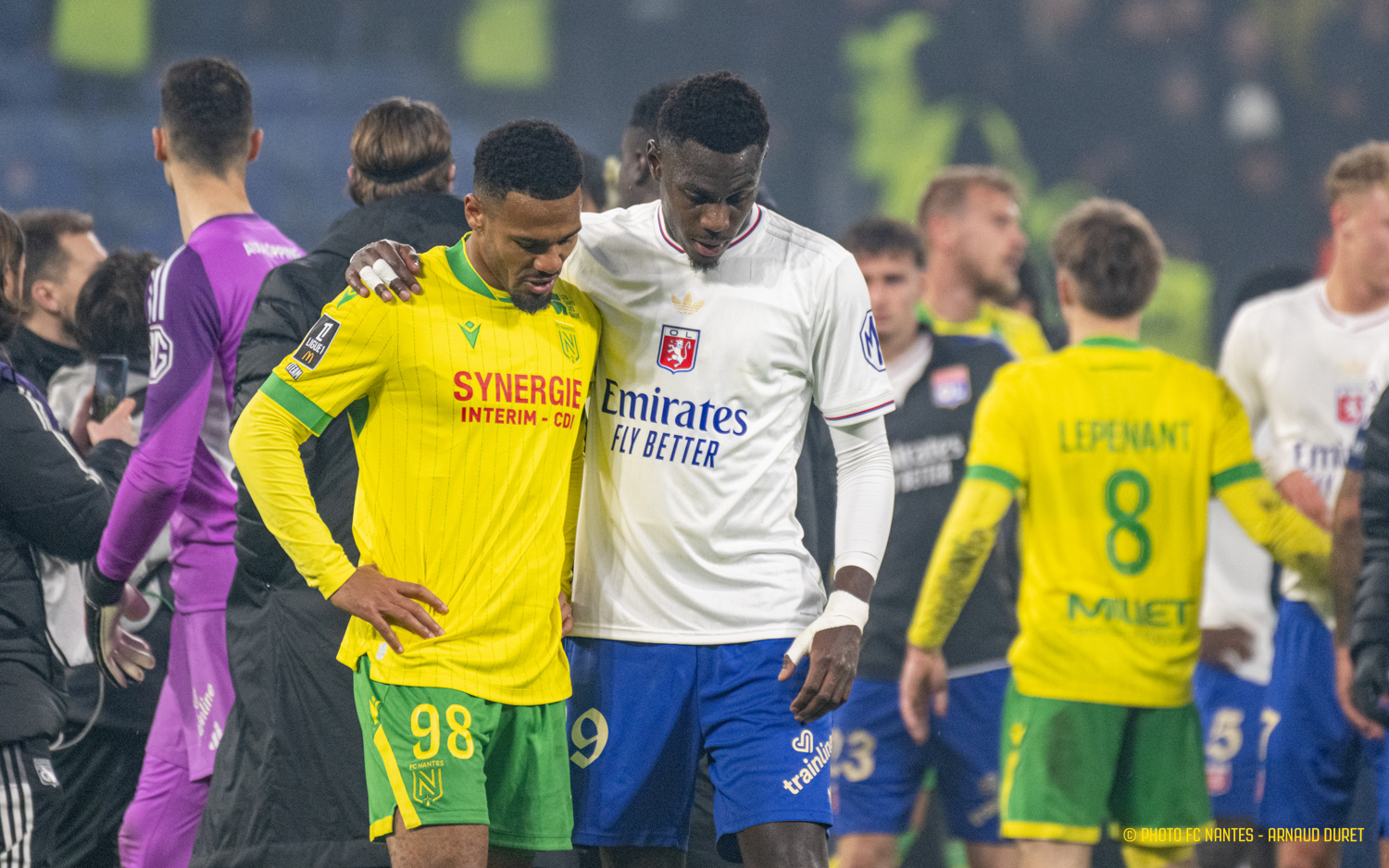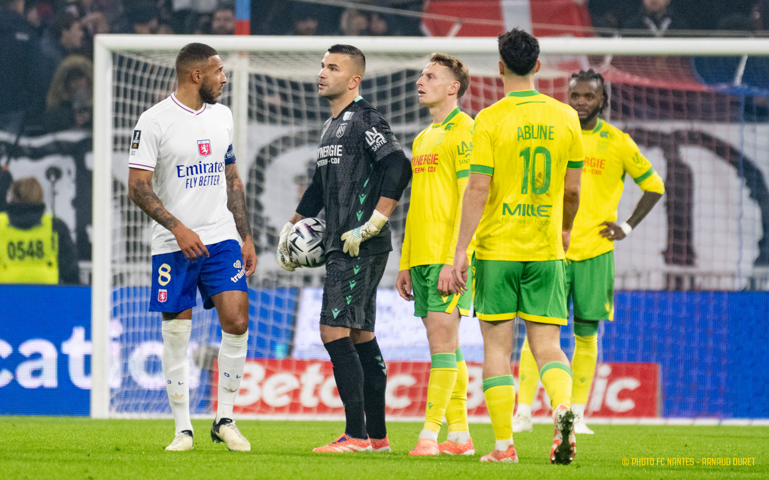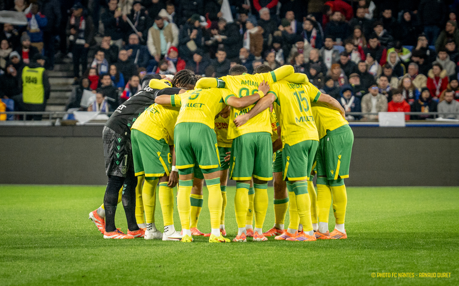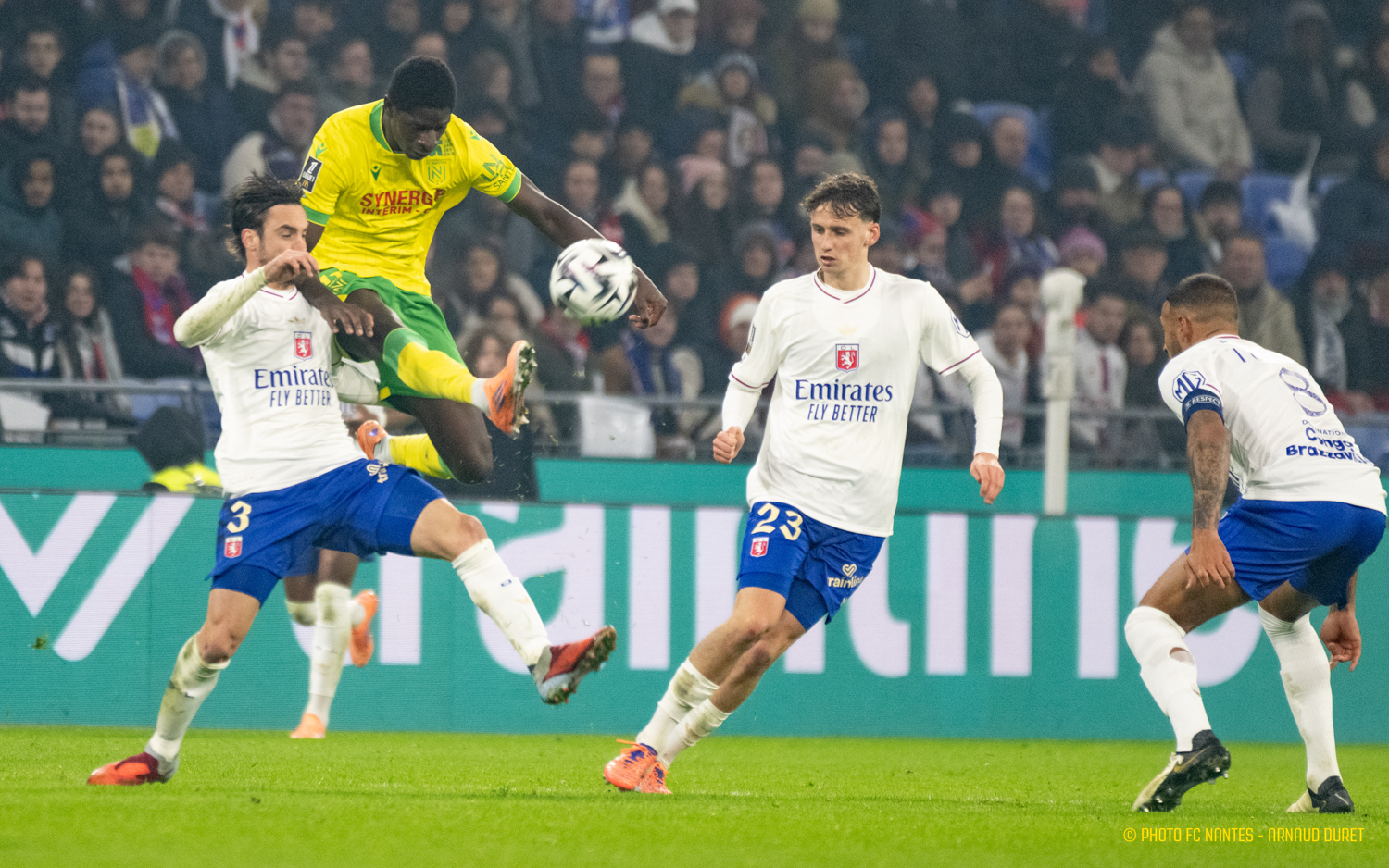 Le FC Nantes s'est inclinĂ© face Ă l'Olympique Lyonnais au Groupama Stadium (3-0). Soutenus par près de 300 supporters, les Jaunes-et-Verts ont rĂ©sistĂ© une pĂ©riode au cĹ“ur d'une enceinte festive pour le 75ème anniversaire du club rhodanien. RĂ©duits Ă dix suite Ă l'exclusion de Junio Mwanga (43e), les coĂ©quipiers de Kelvin Amian ont cĂ©dĂ© face aux vagues offensives adverses et la rĂ©ussite d'Abner VinĂcius (51e) et Martin Satriano (70e et 77e). Flashback en images sur l'affiche de la 14ème journĂ©e de Ligue 1 McDonald's.