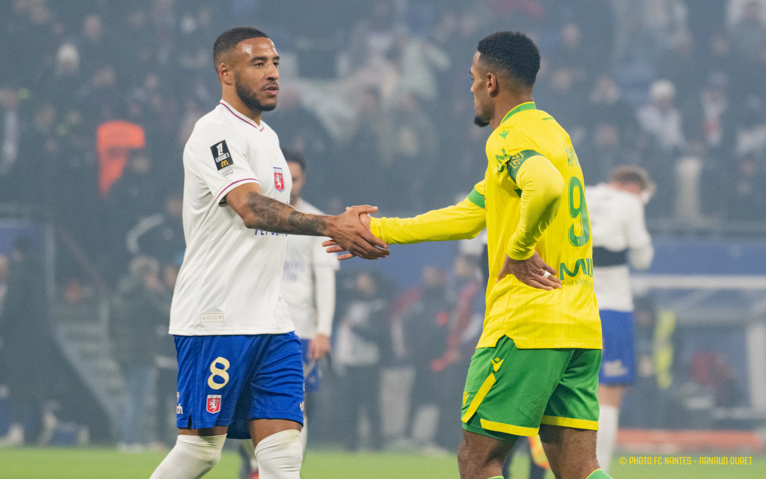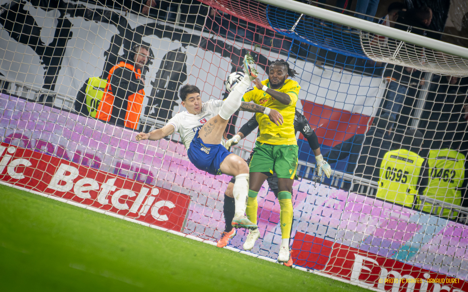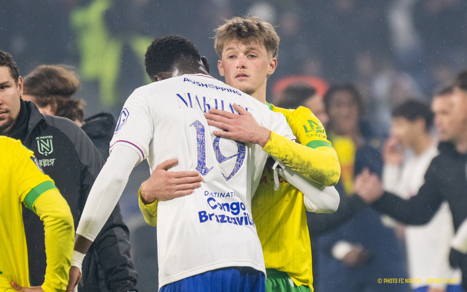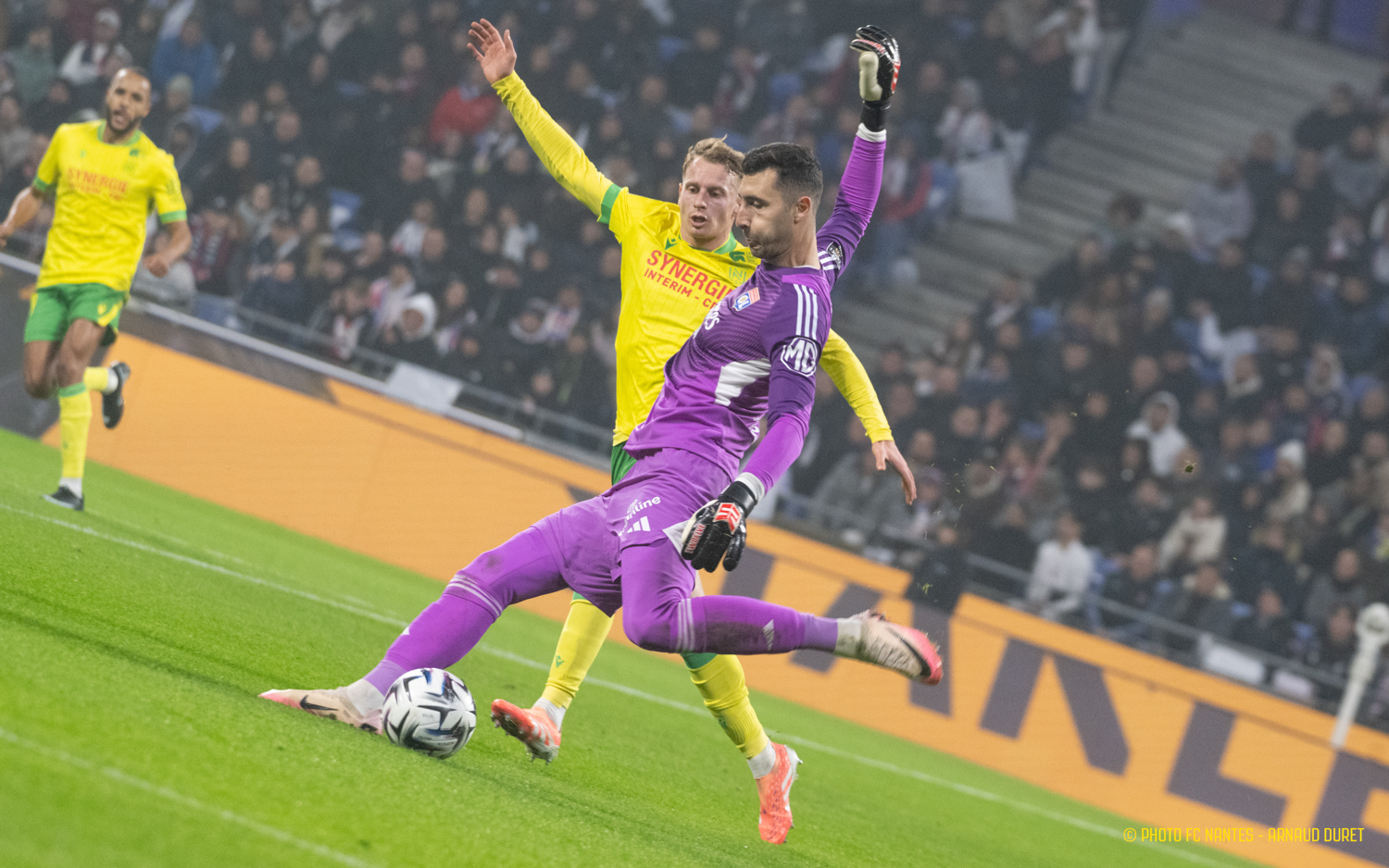 Le FC Nantes s'est inclinĂ© face Ă l'Olympique Lyonnais au Groupama Stadium (3-0). Soutenus par près de 300 supporters, les Jaunes-et-Verts ont rĂ©sistĂ© une pĂ©riode au cĹ“ur d'une enceinte festive pour le 75ème anniversaire du club rhodanien. RĂ©duits Ă dix suite Ă l'exclusion de Junio Mwanga (43e), les coĂ©quipiers de Kelvin Amian ont cĂ©dĂ© face aux vagues offensives adverses et la rĂ©ussite d'Abner VinĂcius (51e) et Martin Satriano (70e et 77e). Flashback en images sur l'affiche de la 14ème journĂ©e de Ligue 1 McDonald's.