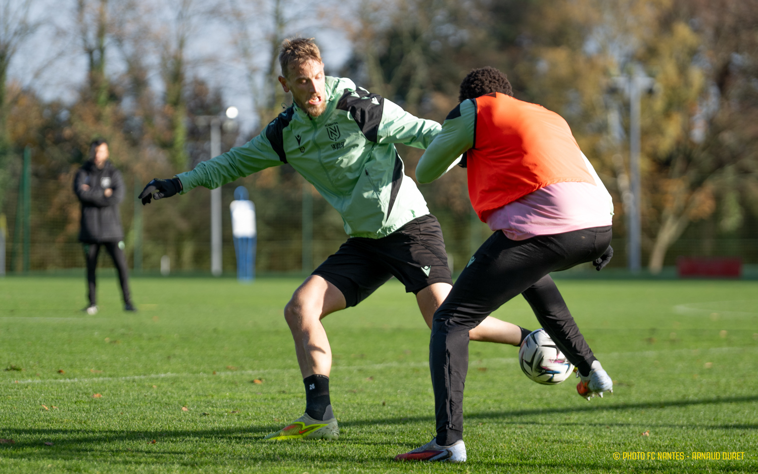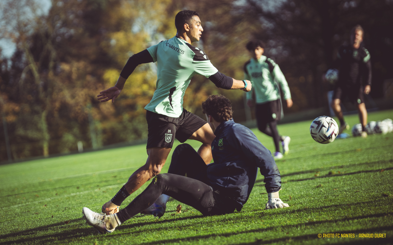 Les Jaunes-et-Verts ont rechaussé mardi matin les crampons pour une première session de travail en vue de la réception du RC Lens, samedi à la Beaujoire (17h). Sous la houlette du staff technique emmené par Luis Castro, les coéquipiers de Bahmed Deuff (photo en UNE) ont lancé leur semaine de travail à travers une batterie de séquences dynamiques jouées sur surface réduite. fcnantes.com vous propose les premières images de la semaine au Centre Sportif de la Jonelière.