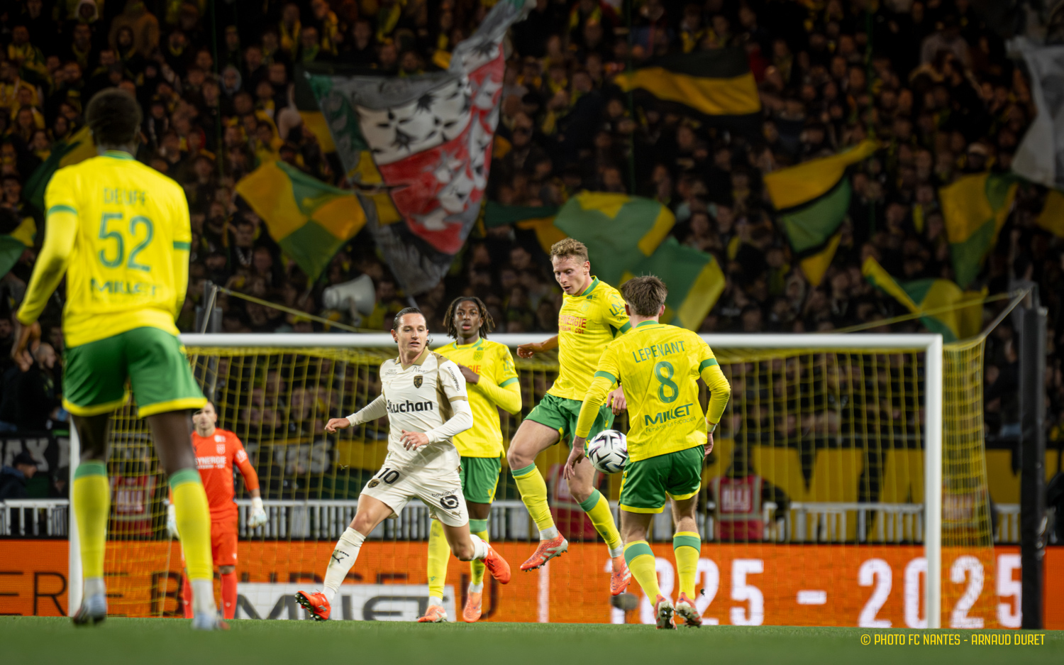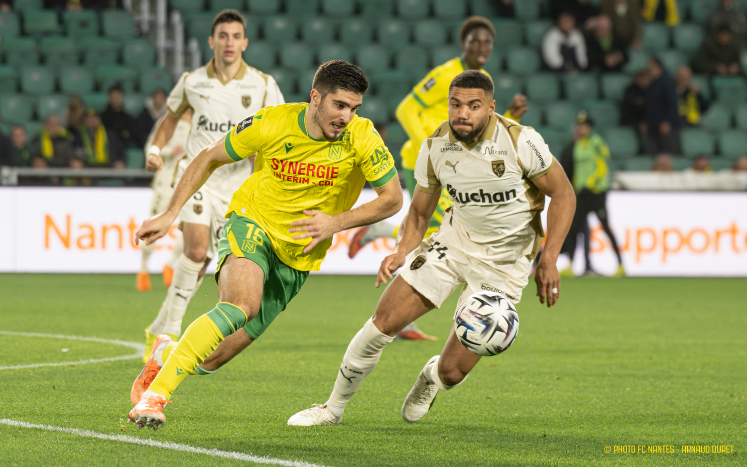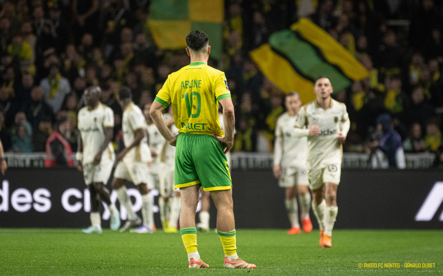 Le FC Nantes s'est incliné face au leader lensois à la Beaujoire (1-2). Malgré les efforts des coéquipiers de Youcef El Arabi, buteur sur penalty pour répondre à l'ouverture du score de Florian Thauvin (38e), les Jaunes et Verts n'ont pas réussi à contenir les Lensois qui prenaient un avantage décisif sur une reprise à bout portant de Wesley Saïd (81e). Une désillusion qui n'a pas empêché la Beaujoire d'adresser de chaleureux encouragements au terme de la rencontre. Flashback en images sur cette affiche de la 15ème journée de L1 McDonald's suivie par près de 27000 supporters.