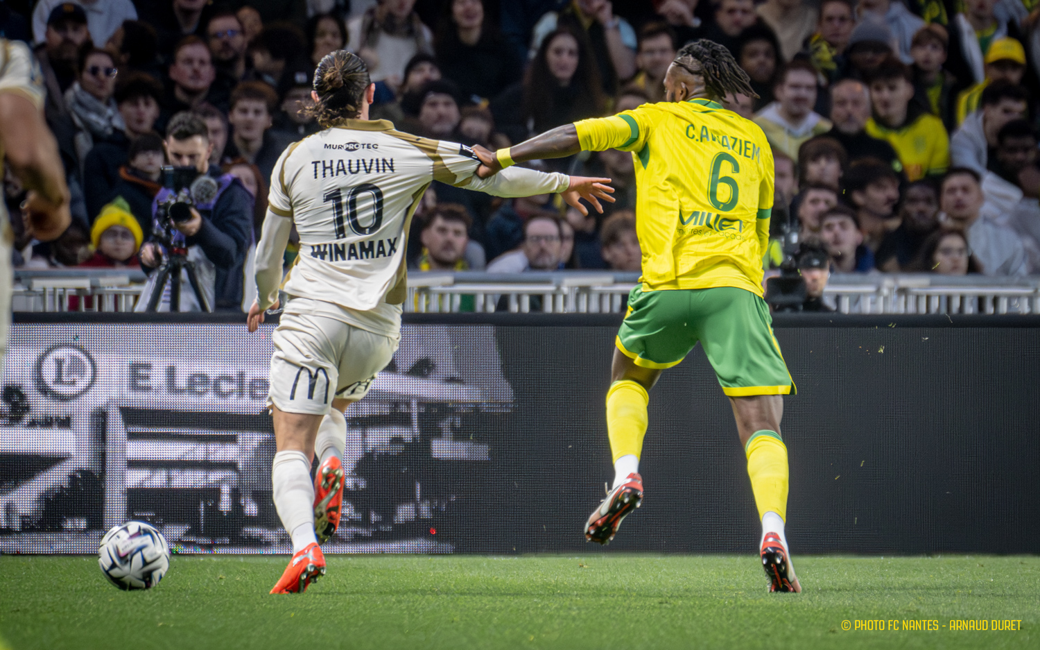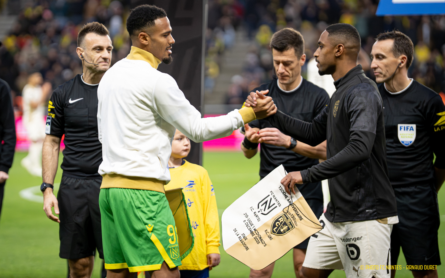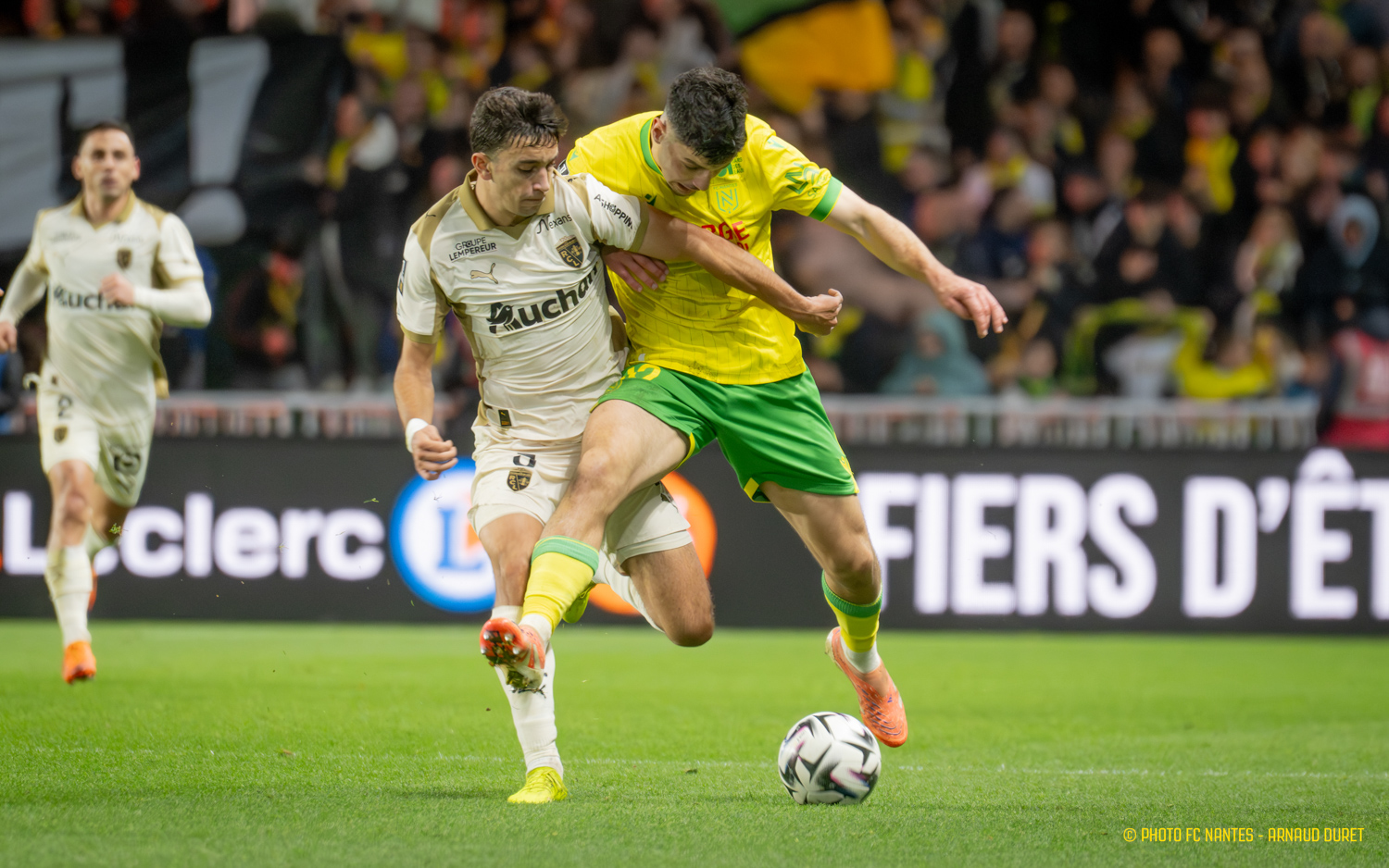 Le FC Nantes s'est incliné face au leader lensois à la Beaujoire (1-2). Malgré les efforts des coéquipiers de Youcef El Arabi, buteur sur penalty pour répondre à l'ouverture du score de Florian Thauvin (38e), les Jaunes et Verts n'ont pas réussi à contenir les Lensois qui prenaient un avantage décisif sur une reprise à bout portant de Wesley Saïd (81e). Une désillusion qui n'a pas empêché la Beaujoire d'adresser de chaleureux encouragements au terme de la rencontre. Flashback en images sur cette affiche de la 15ème journée de L1 McDonald's suivie par près de 27000 supporters.