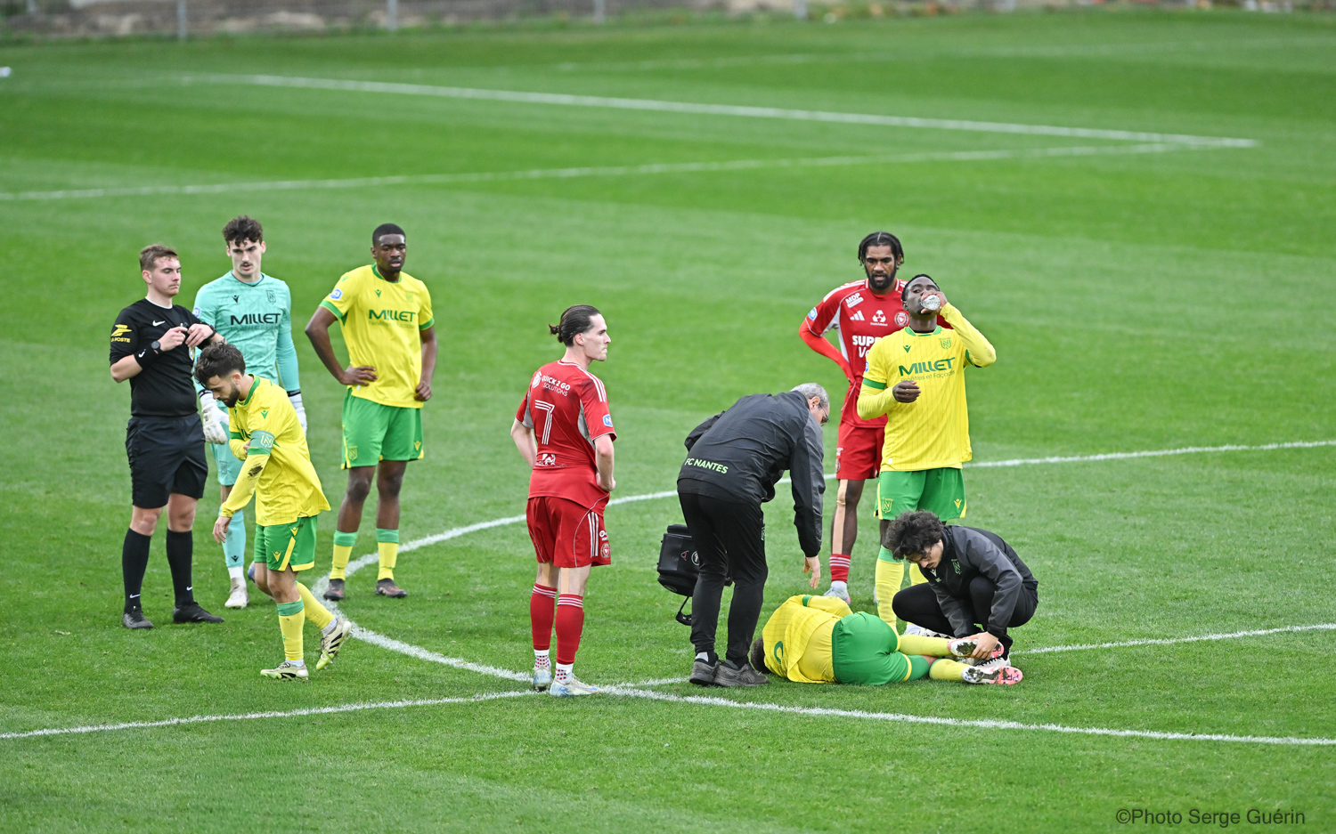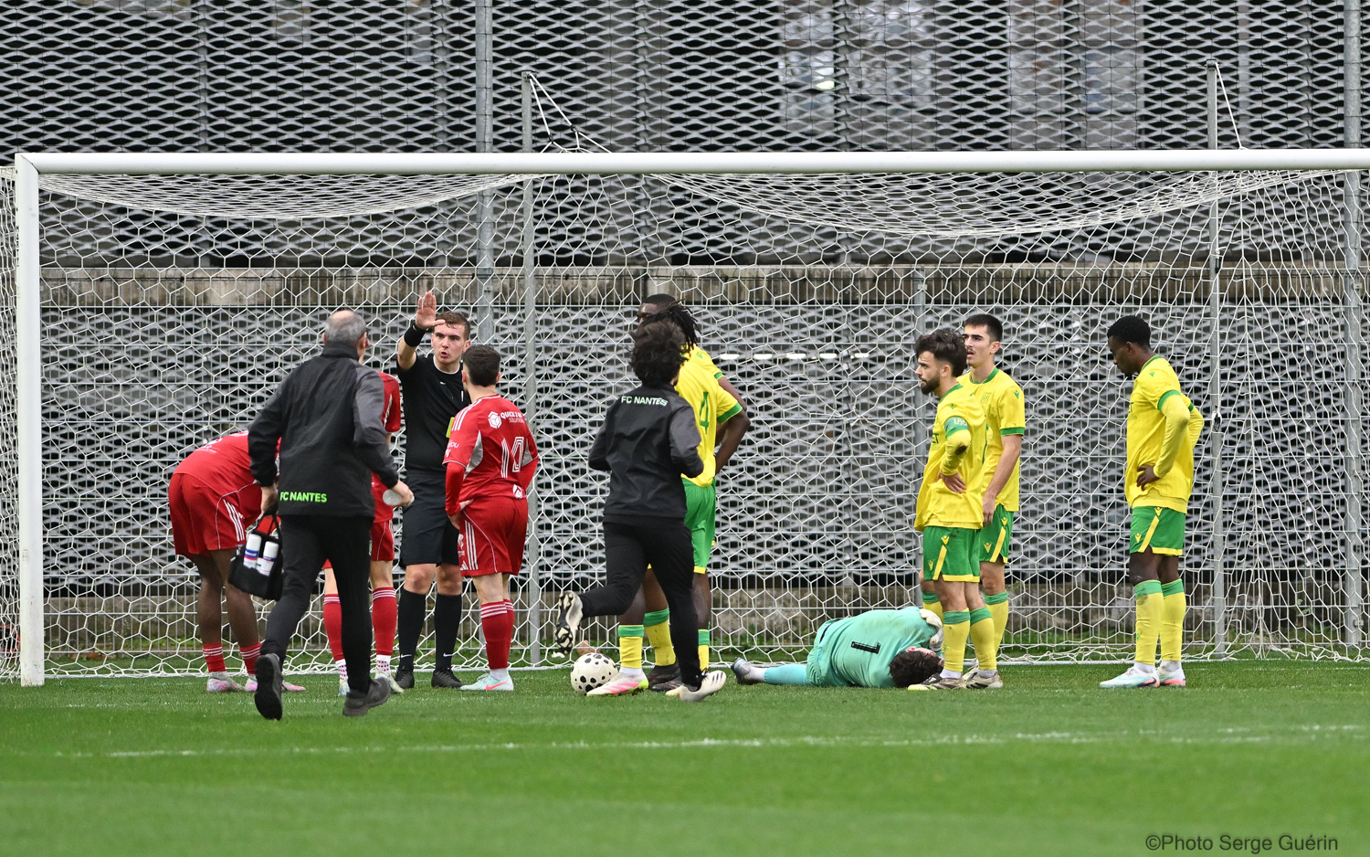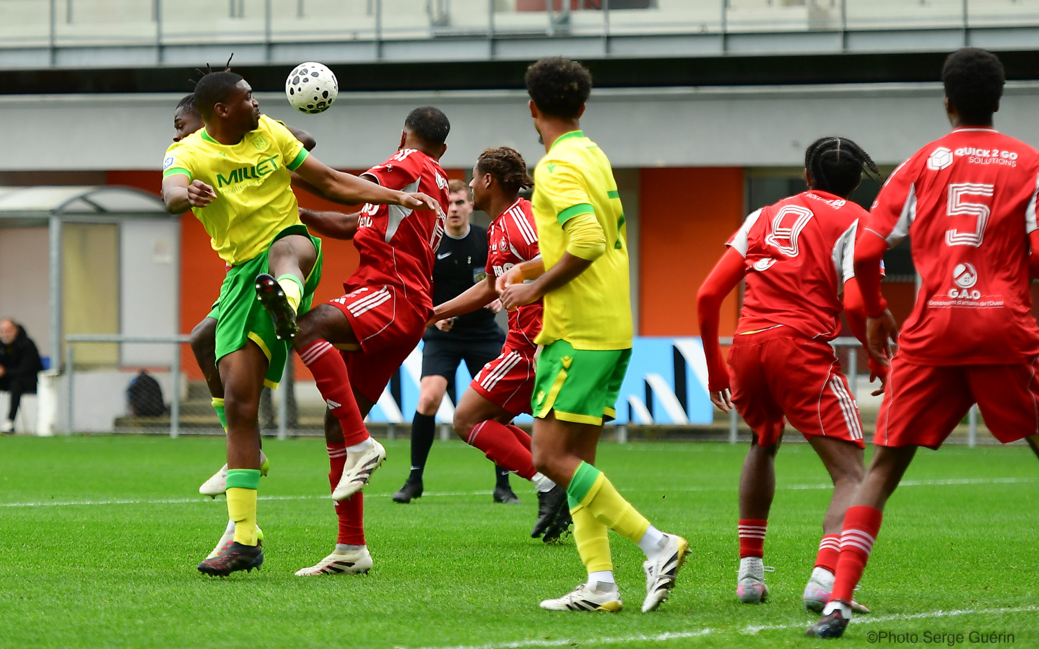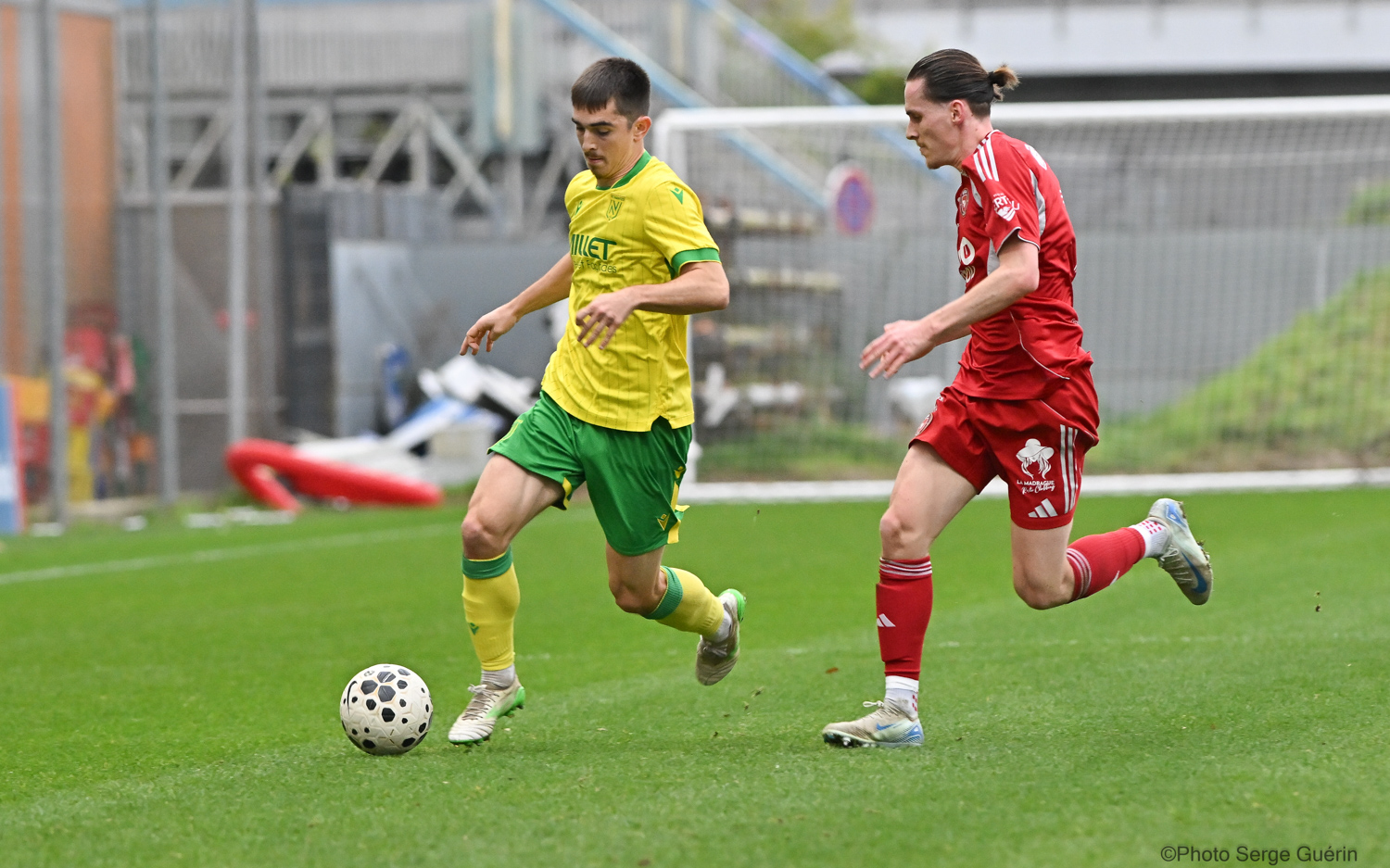La formation de N3 du FC Nantes et l'US Saint-Anne de Vertou n'ont pas réussi à se départager dimanche après-midi à Marcel-Saupin (1-1). Les Jaunes-et-Verts ont concédé l'ouverture du score vertavienne dès la 19ème minute de jeu sur un penalty réussi par Lois Kisaku. Un avantage que les joueurs d'Yvonnick Sidaner ont longtemps tenu lors d'un derby disputé. Lancés par Stéphane Ziani à l'heure de jeu, Moustapha Dabo et Luka Gautier-Serant se montraient décisifs. L'attaquant, servi par l'ailier nantais, trouvait le chemin des filets pour arracher un point à une solide formation vertavienne (83e : 1-1).