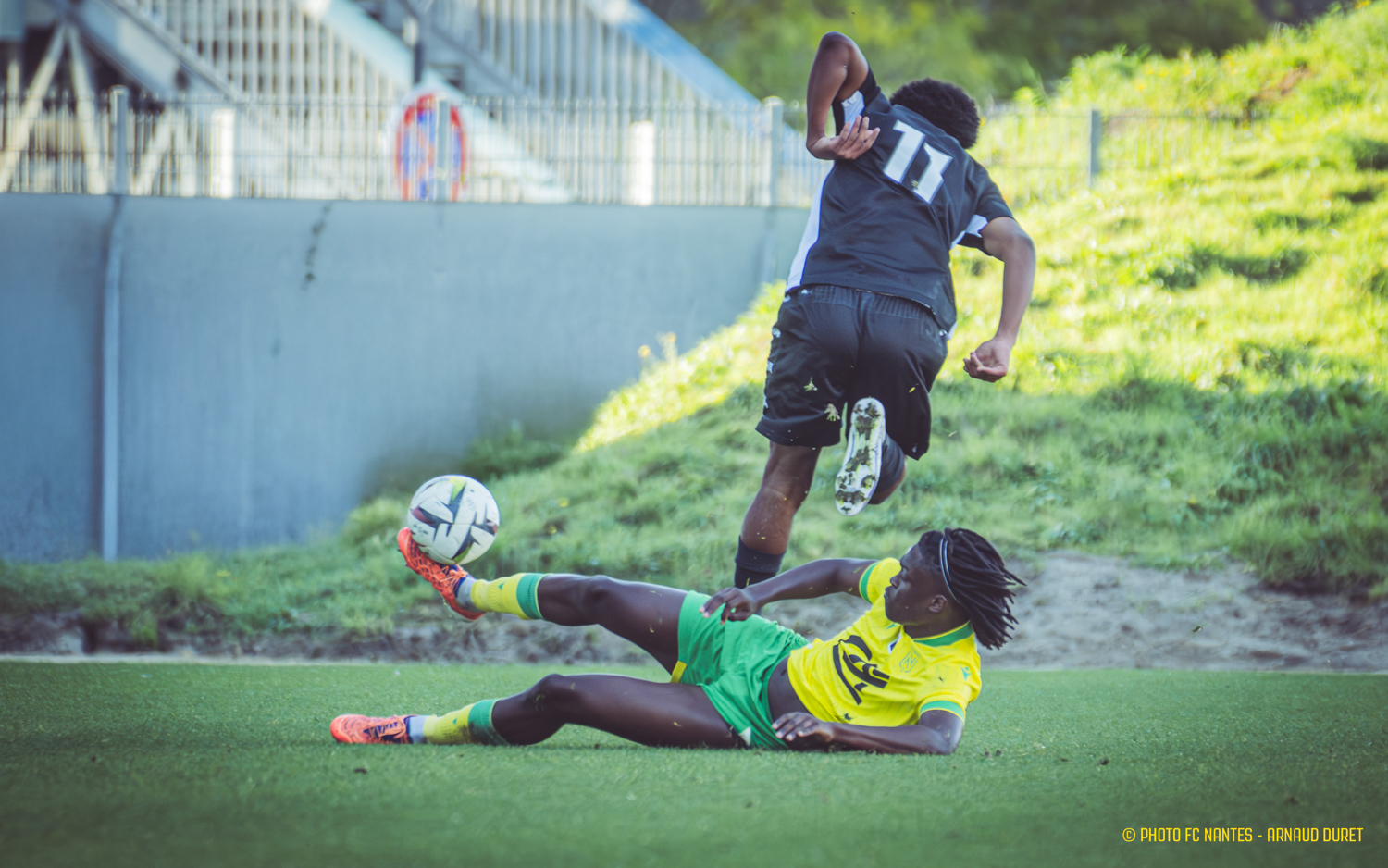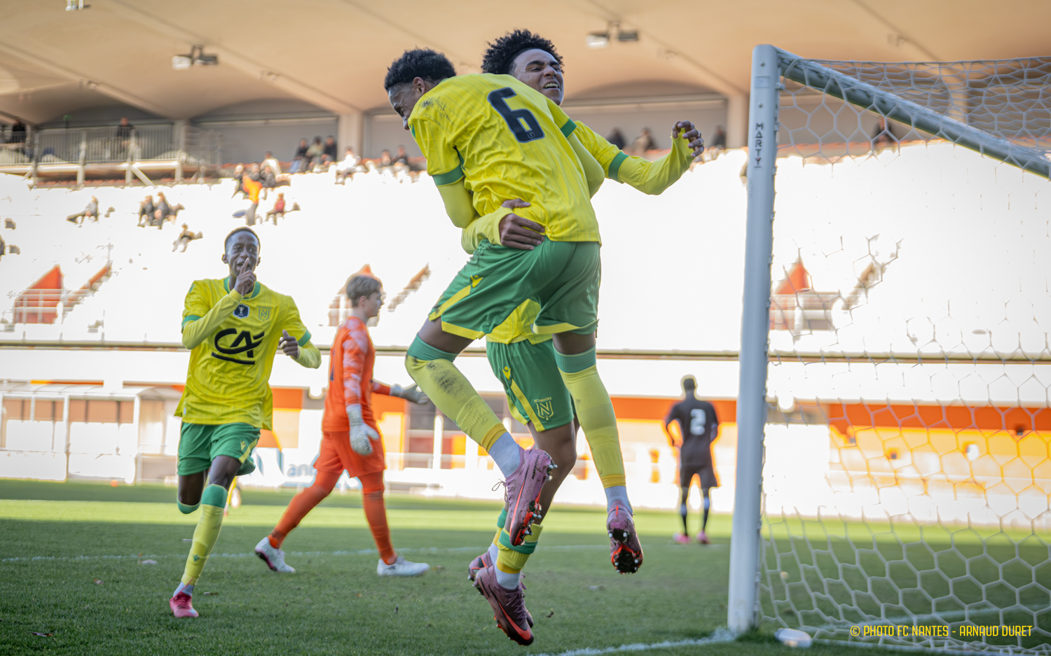 Les Jaunes-et-Verts ont parfaitement réussi leur entrée en lice en Coupe Gambardella. La jeune génération du FC Nantes, emmenée par le coach Stéphane Moreau, a dominé son homologue du Stade Poitevin FC à Marcel-Saupin (7-0). Une dynamique encourageante lancée Quai Malakoff que les Nantais tenteront d'entretenir tout au long d'un parcours que l'on souhaite le plus long possible. Rendez-vous en 32èmes de finale ! Flashback en images sur la qualification des coéquipiers de Jalen Foucan.