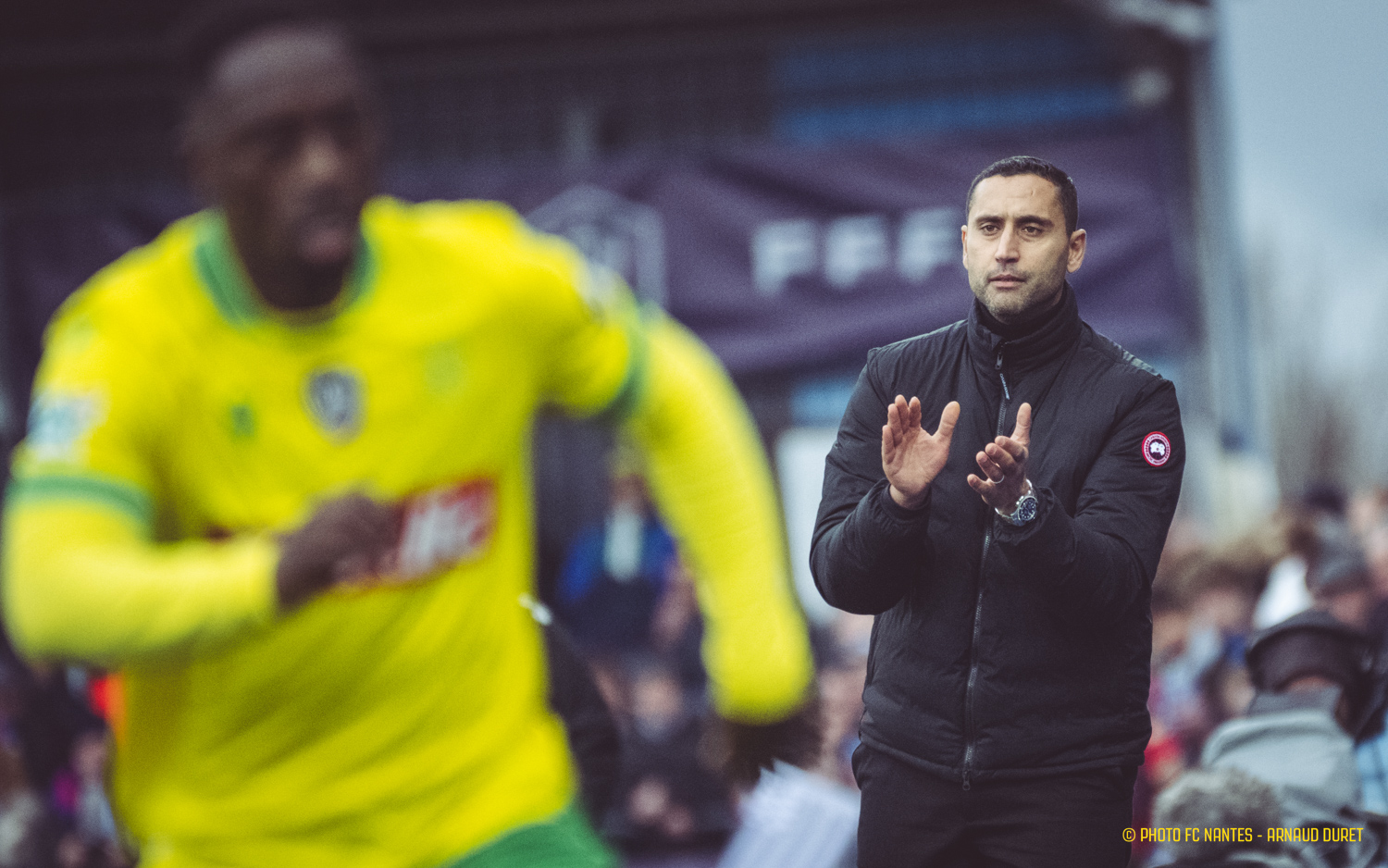 Avertis, les Canaris sont sérieux et prennent le jeu et l'initiative à leur compte, alternant jeu dans la profondeur et actions construites. C'est d'ailleurs sur l'une d'elle que Bahmed Deuff inscrit son premier but en professionnel, servi par Matthis Abline sur la gauche de la surface : 0-1 (15').