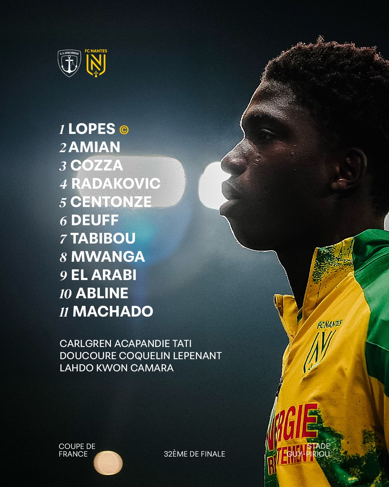 Retrouvez la composition retenue par Ahmed Kantari pour débuter le match face à l'US Concarneau, en 32e de finale de la Coupe de France. Coup d'envoi de la rencontre à 14h45.