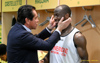 Ignatius Ganago félicité par le Président Waldemar KITA. Le FC Nantes reste en L1 grâce à l'international camerounais.