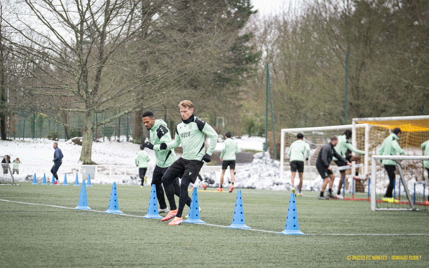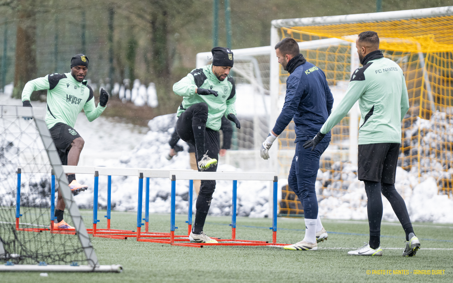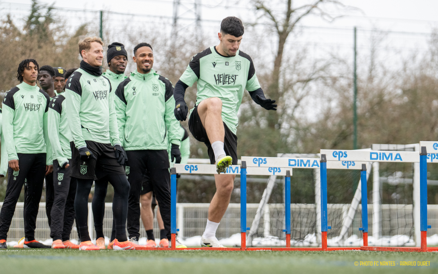 Les Jaunes-et-Verts ont poursuivi mercredi après-midi leur préparation pour l'affiche des 16èmes de finale de la Coupe de France face à l'OGC Nice. Réunis sur une surface en synthétique préparée par les services techniques de la Jonelière, les joueurs d'Ahmed Kantari ont bénéficié des meilleures conditions possibles afin de préparer la venue des Aiglons, dimanche à la Beaujoire (18h). Focus sur la préparation des coéquipiers de Nantais à l’œuvre à la Plaine de Jeux de la Jonelière.