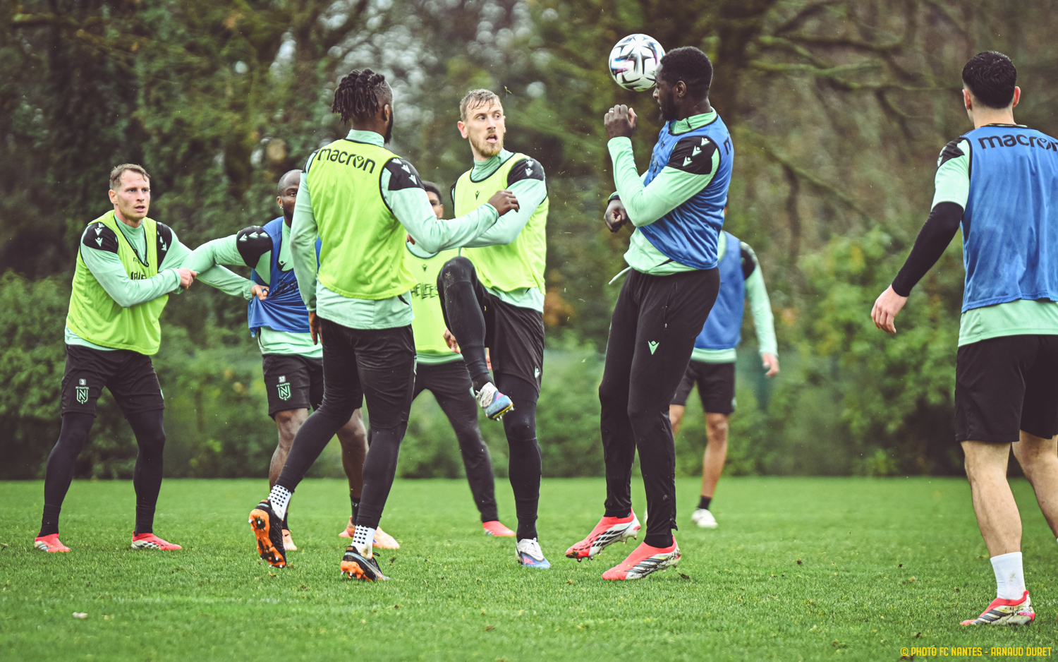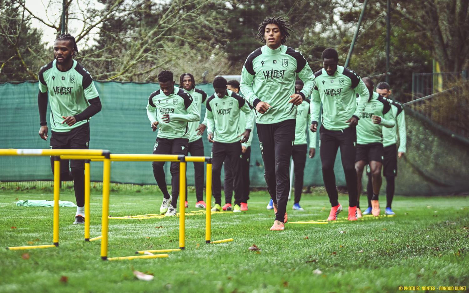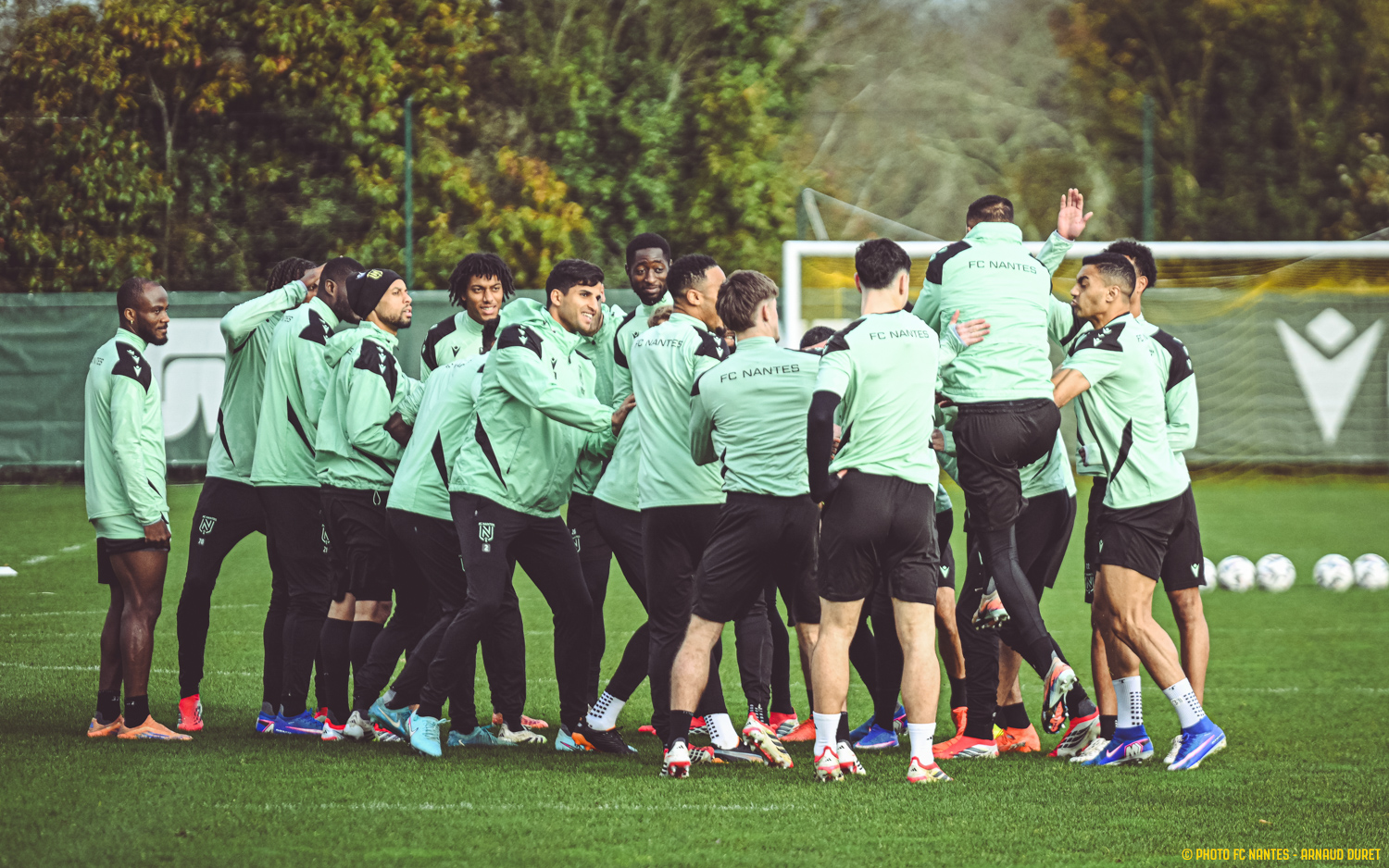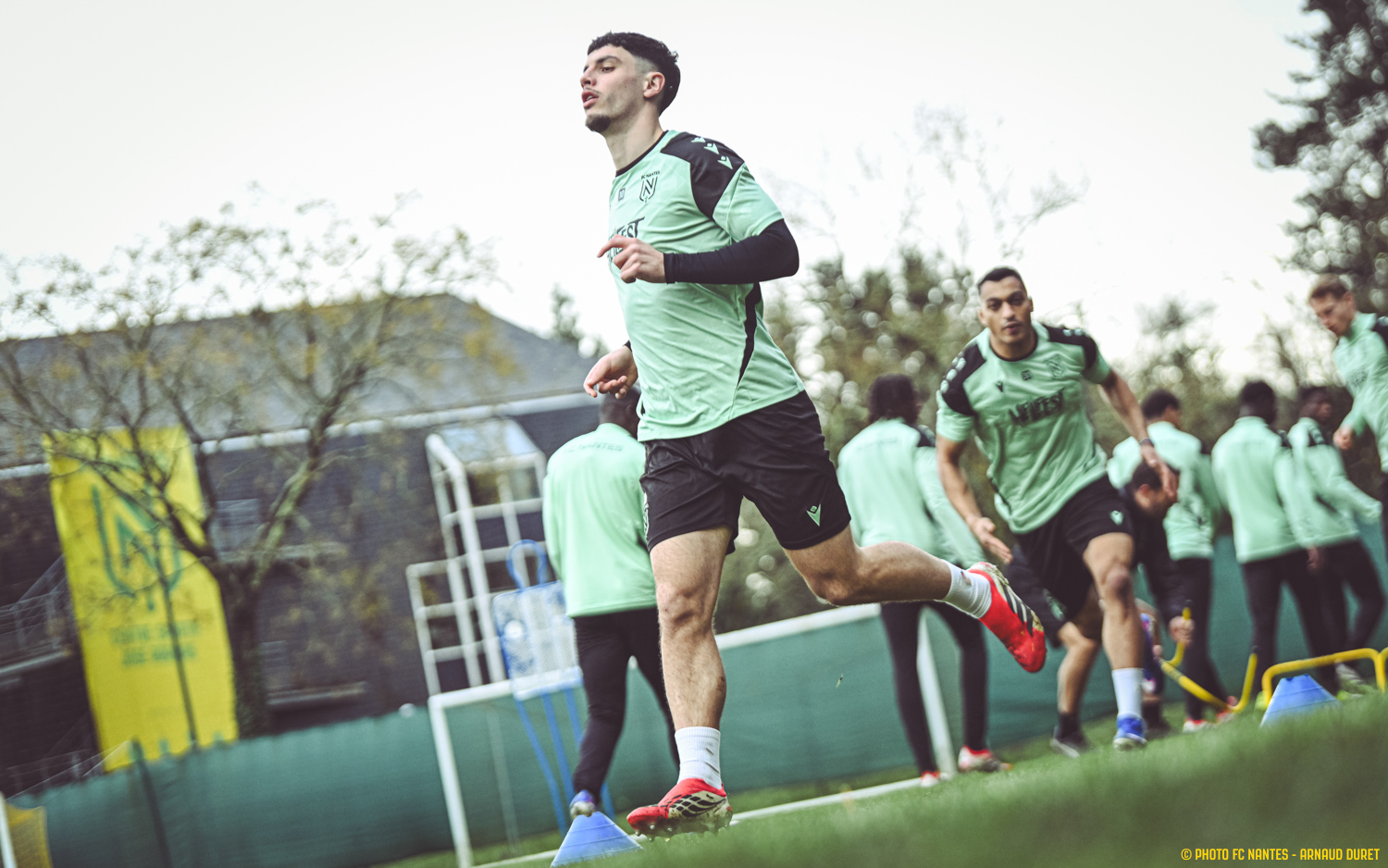 Les coéquipiers de Matthis Abline (photo en une) ont rechaussé les crampons mardi matin au Centre Sportif de la Jonelière. Réuni sur le terrain principal du Complexe Sportif, le groupe a participé à une session soutenue durant laquelle le staff technique a mis l’accent sur l’application, la spontanéité et le dynamisme. À l'approche de la réception de l'Olympique Lyonnais à la Beaujoire, samedi soir (21h05), les Jaunes et Verts ont remis du cœur à l'ouvrage afin d'aborder ce Classique du Championnat de France (103e édition). Zoom sur la séance qui a débuté par une attention toute particulière du groupe à Youssef El Arabi qui fête aujourd'hui son anniversaire.