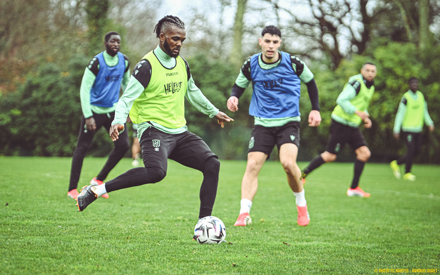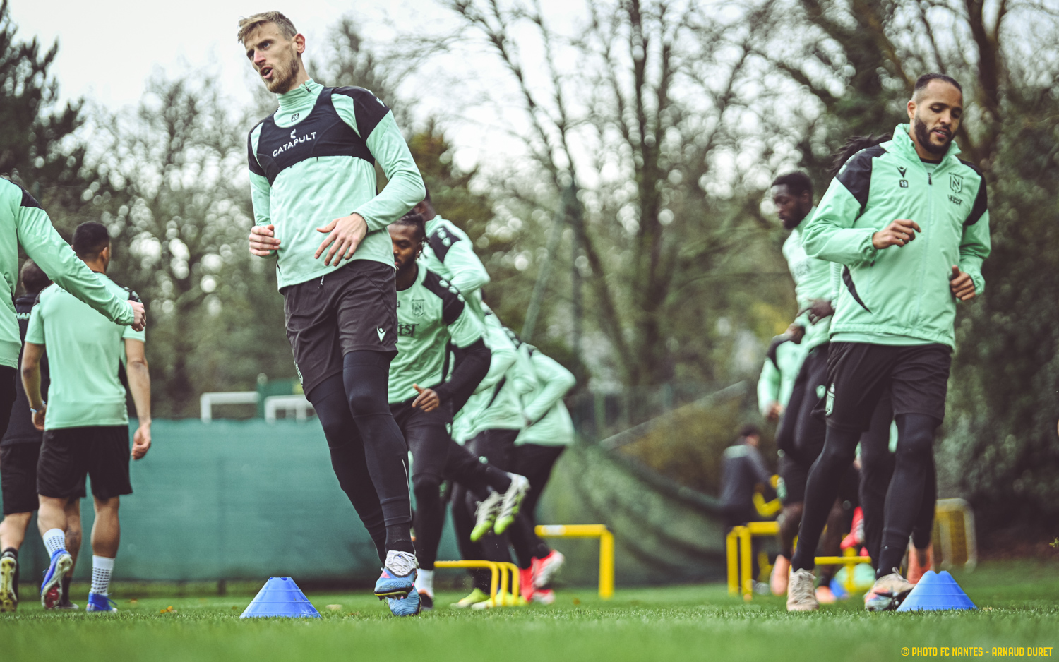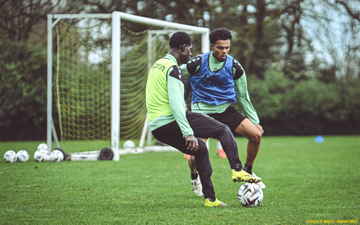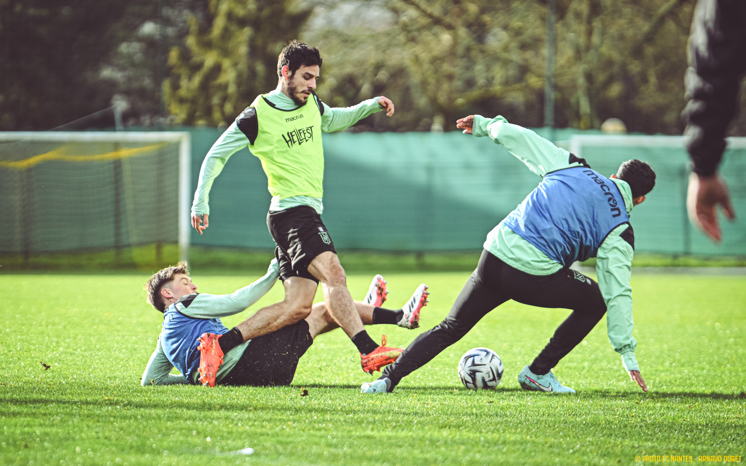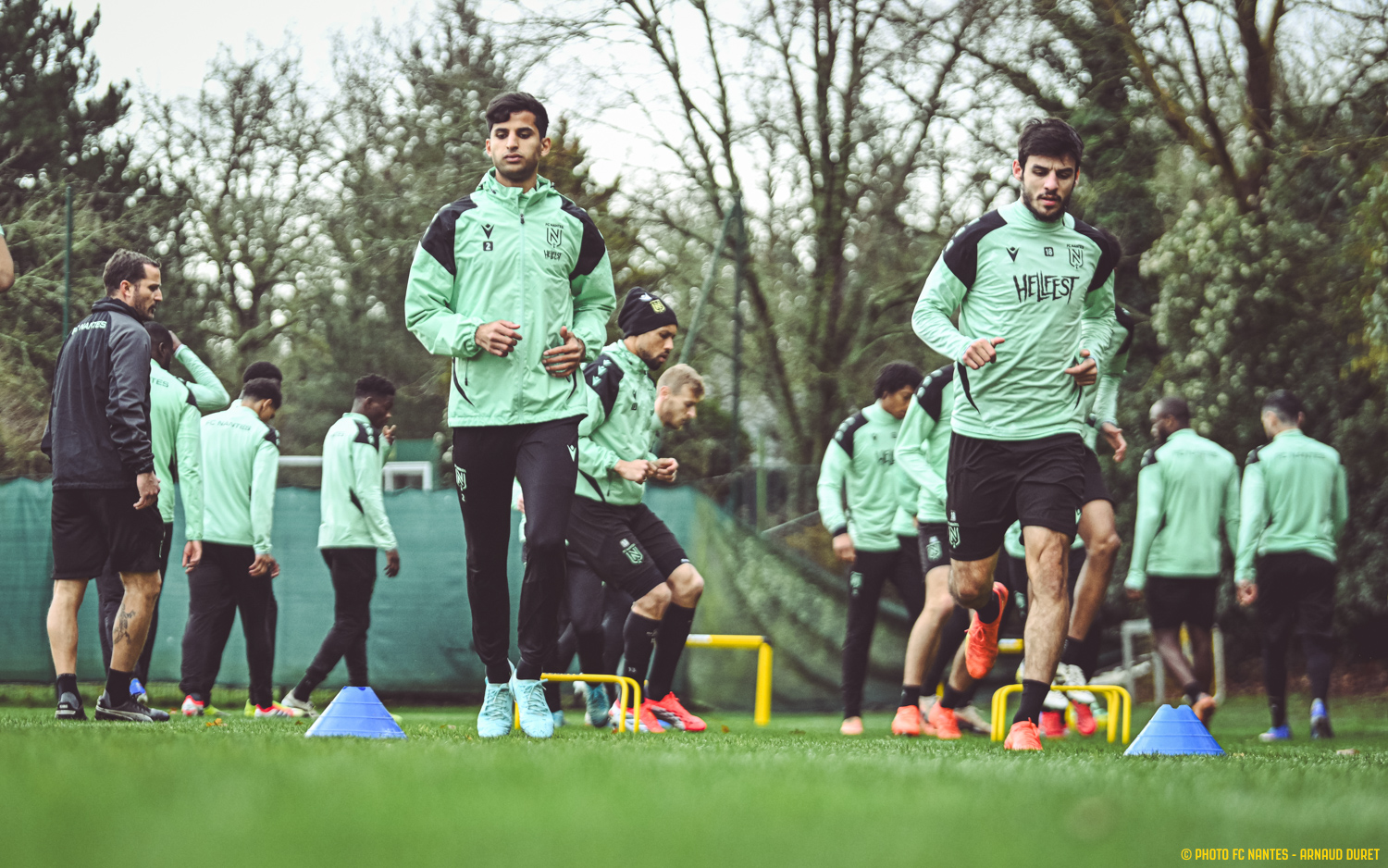 Les coéquipiers de Matthis Abline (photo en une) ont rechaussé les crampons mardi matin au Centre Sportif de la Jonelière. Réuni sur le terrain principal du Complexe Sportif, le groupe a participé à une session soutenue durant laquelle le staff technique a mis l’accent sur l’application, la spontanéité et le dynamisme. À l'approche de la réception de l'Olympique Lyonnais à la Beaujoire, samedi soir (21h05), les Jaunes et Verts ont remis du cœur à l'ouvrage afin d'aborder ce Classique du Championnat de France (103e édition). Zoom sur la séance qui a débuté par une attention toute particulière du groupe à Youssef El Arabi qui fête aujourd'hui son anniversaire.