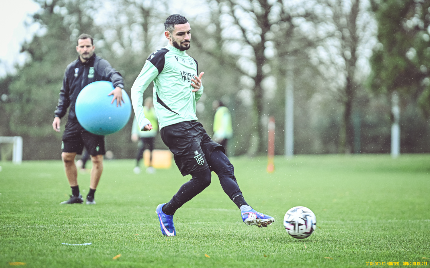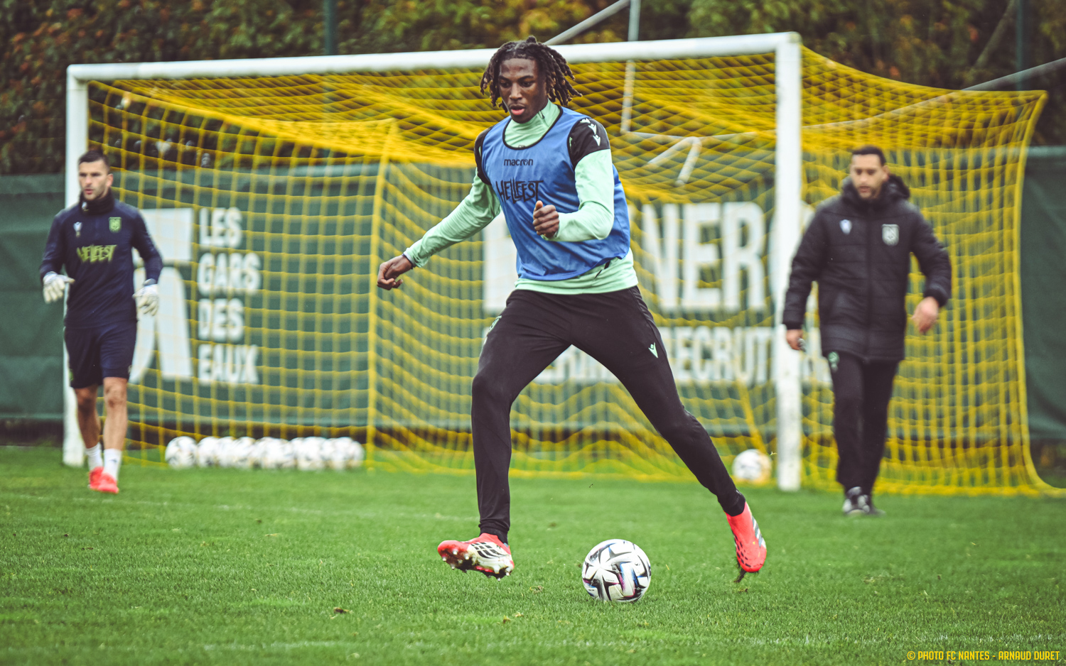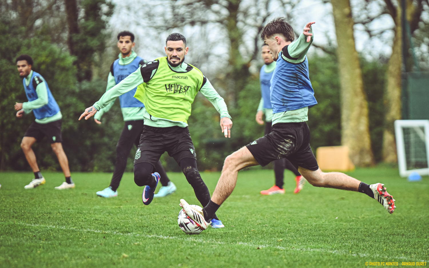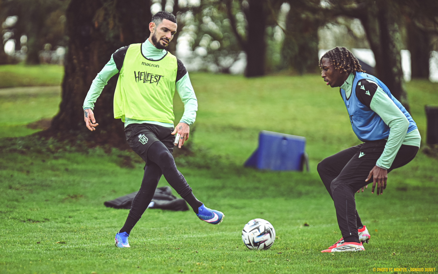 Les coéquipiers de Matthis Abline (photo en une) ont rechaussé les crampons mardi matin au Centre Sportif de la Jonelière. Réuni sur le terrain principal du Complexe Sportif, le groupe a participé à une session soutenue durant laquelle le staff technique a mis l’accent sur l’application, la spontanéité et le dynamisme. À l'approche de la réception de l'Olympique Lyonnais à la Beaujoire, samedi soir (21h05), les Jaunes et Verts ont remis du cœur à l'ouvrage afin d'aborder ce Classique du Championnat de France (103e édition). Zoom sur la séance qui a débuté par une attention toute particulière du groupe à Youssef El Arabi qui fête aujourd'hui son anniversaire.