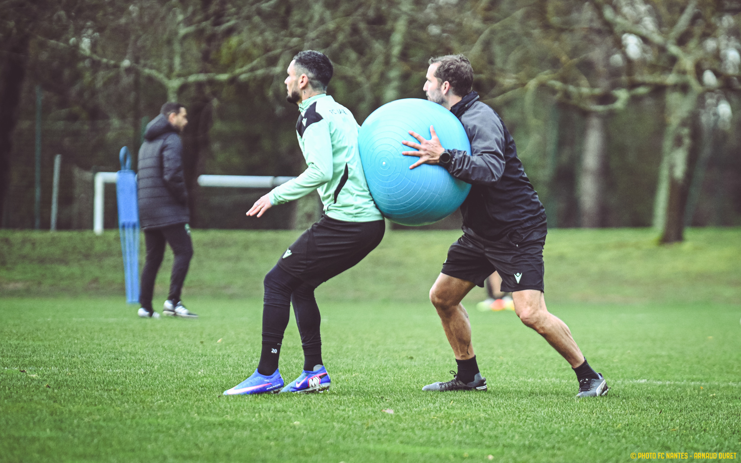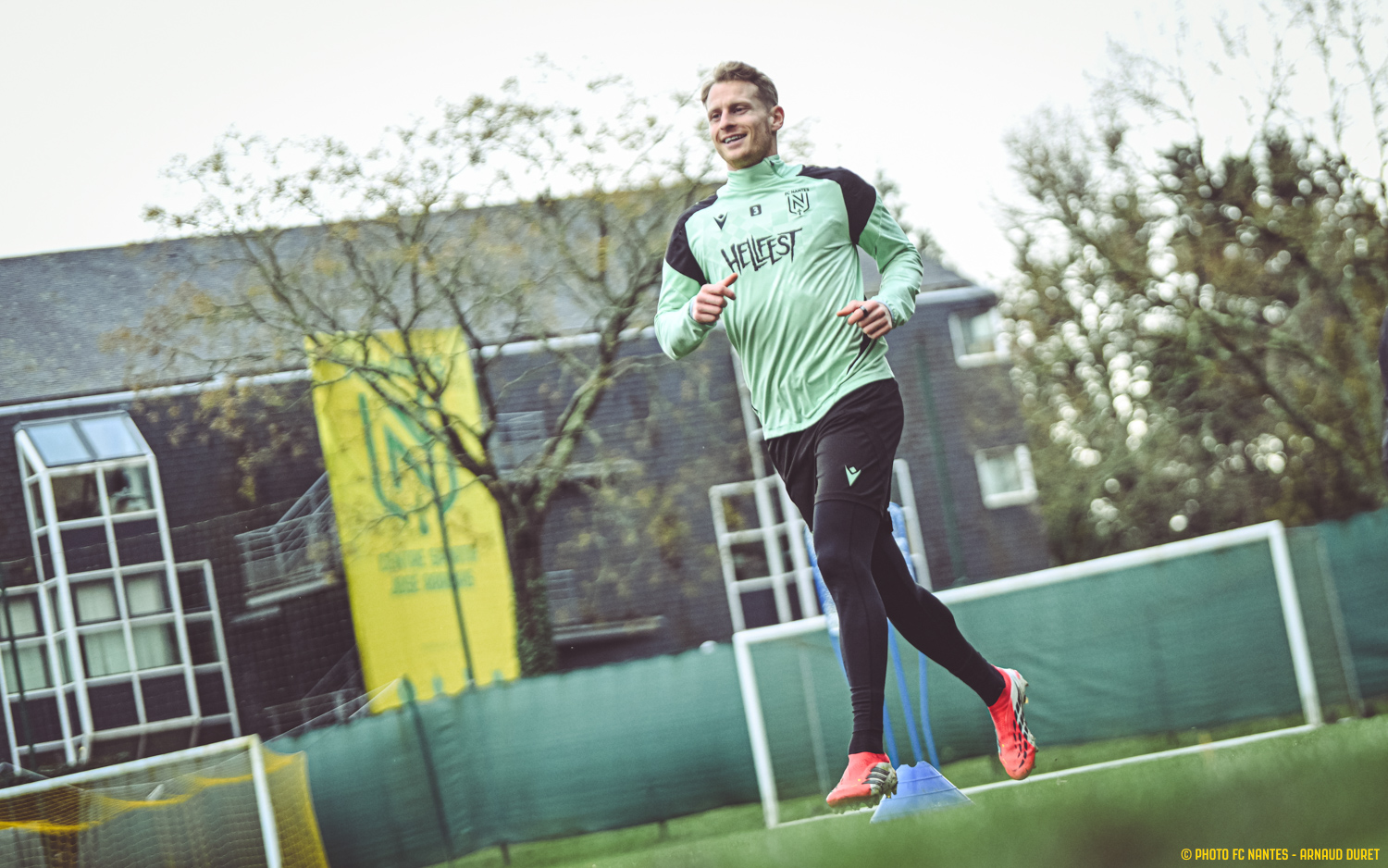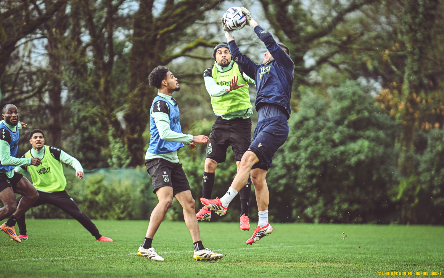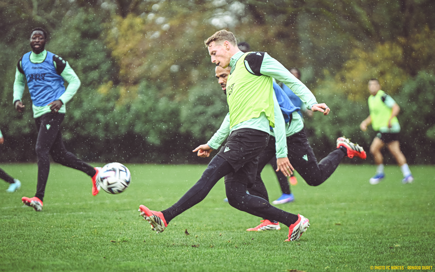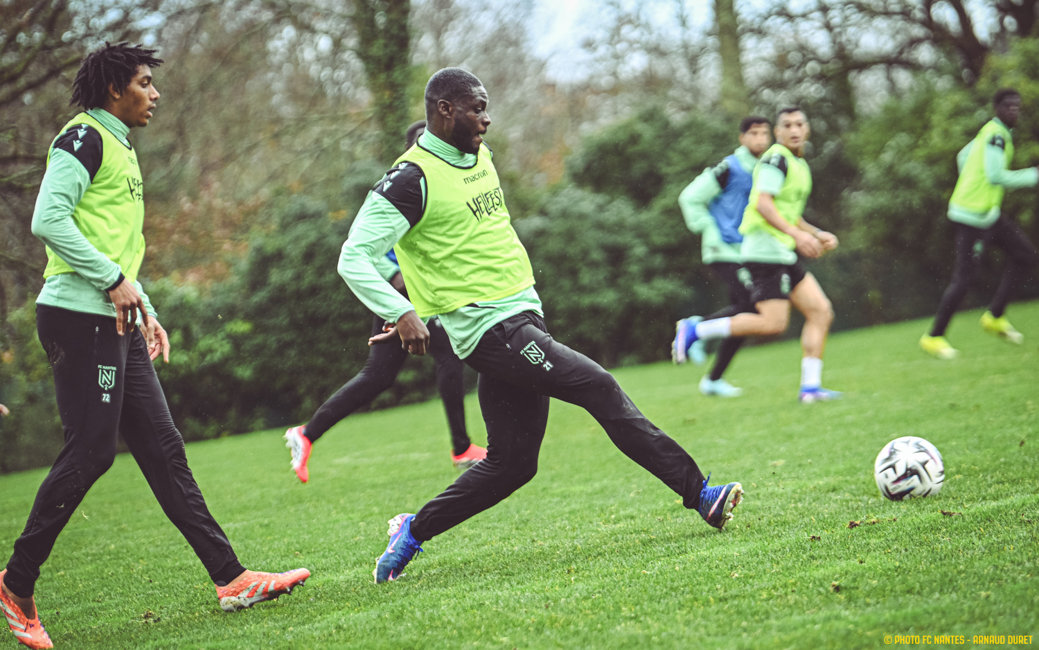Les coéquipiers de Matthis Abline (photo en une) ont rechaussé les crampons mardi matin au Centre Sportif de la Jonelière. Réuni sur le terrain principal du Complexe Sportif, le groupe a participé à une session soutenue durant laquelle le staff technique a mis l’accent sur l’application, la spontanéité et le dynamisme. À l'approche de la réception de l'Olympique Lyonnais à la Beaujoire, samedi soir (21h05), les Jaunes et Verts ont remis du cœur à l'ouvrage afin d'aborder ce Classique du Championnat de France (103e édition). Zoom sur la séance qui a débuté par une attention toute particulière du groupe à Youssef El Arabi qui fête aujourd'hui son anniversaire.