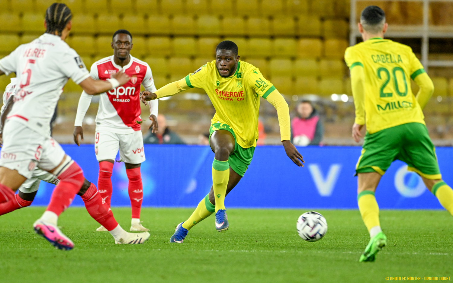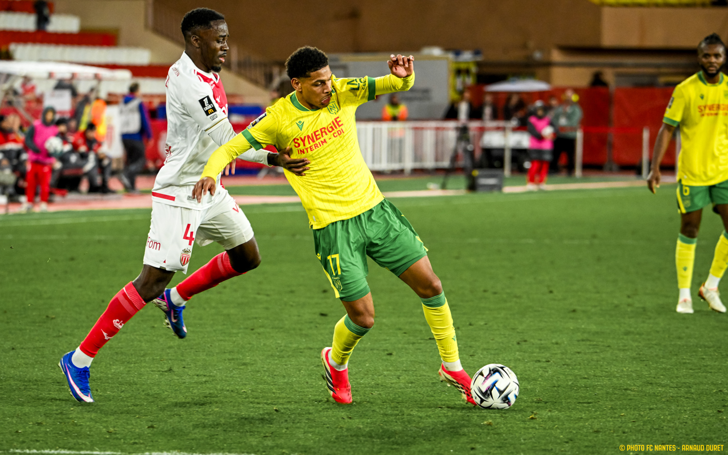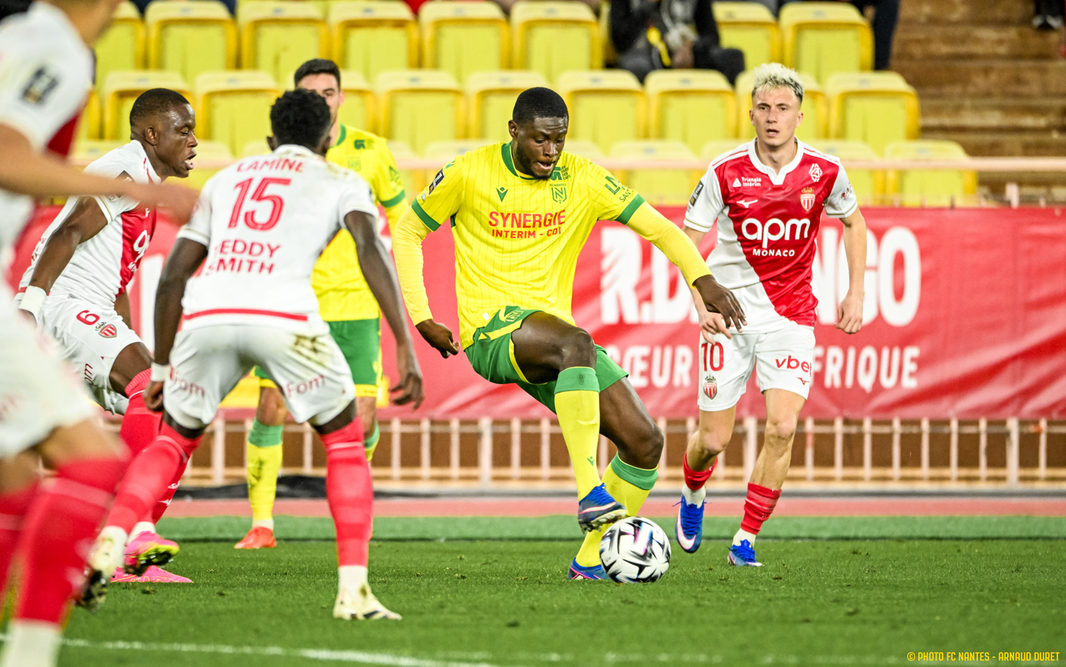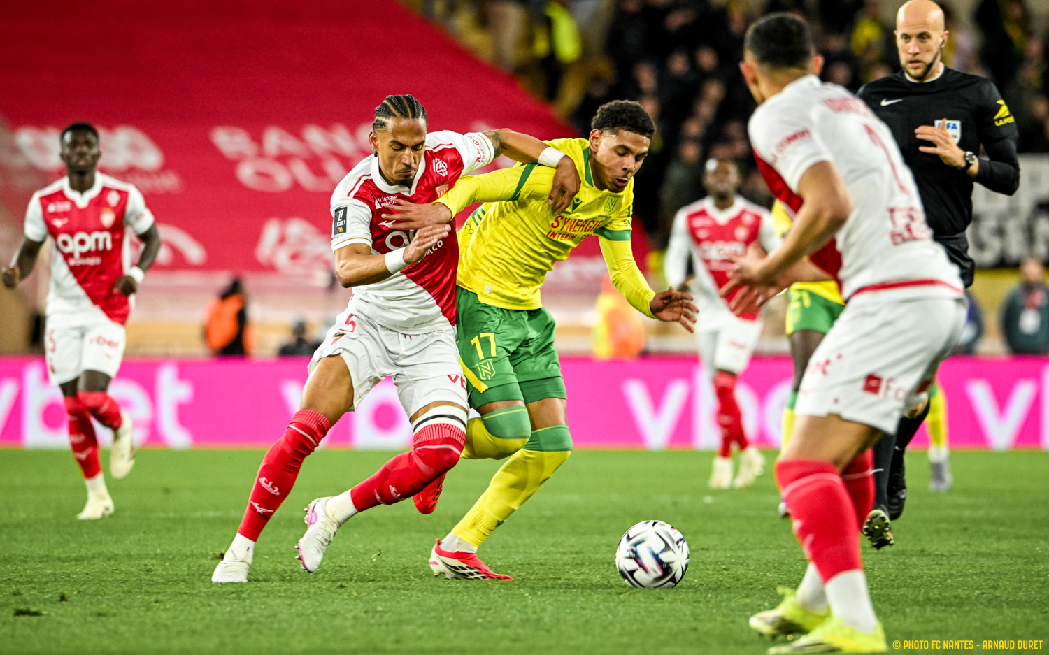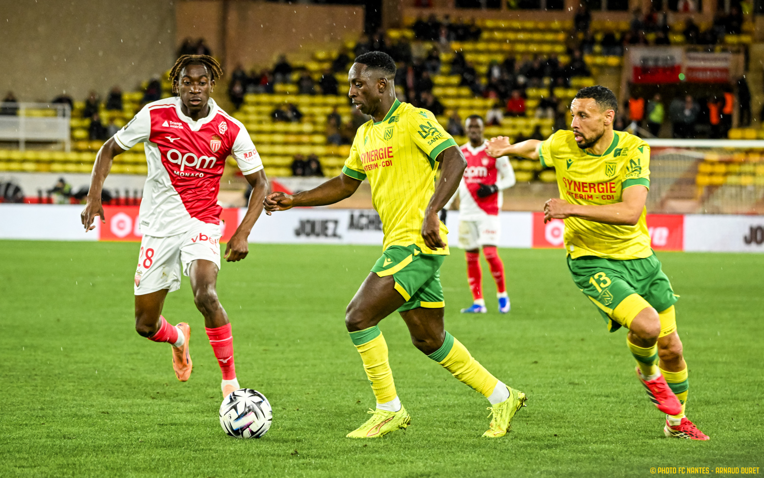 Le FC Nantes s'est incliné face à l'AS Monaco vendredi soir au stade Louis-II (3-1). Menés de trois buts en l'espace de cinq minutes suite à un doublé de Simon Adingra et une réalisation de Denis Zakaria (25e, 28e et 30e), les Nantais n'ont pas réussi à recoller au tableau d'affichage. Fabien Centonze entretenait l'espoir en fin de première période (45e+2). Une réduction de l'écart malheureusement vaine pour les joueurs d'Ahmed Kantari qui ont fourni beaucoup d'efforts en seconde période sans parvenir à revenir...