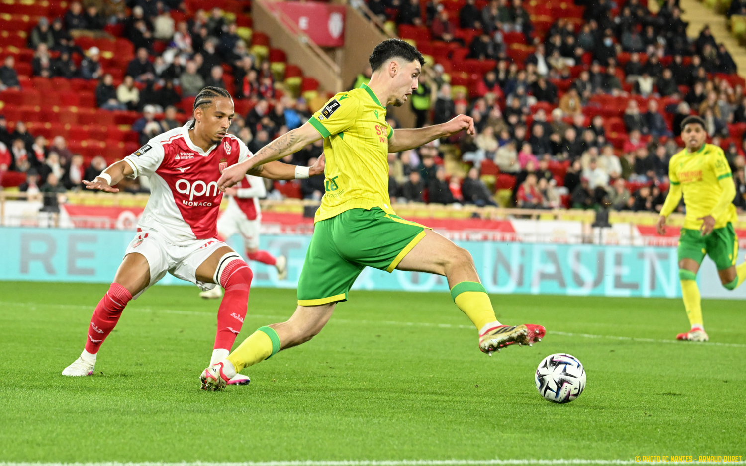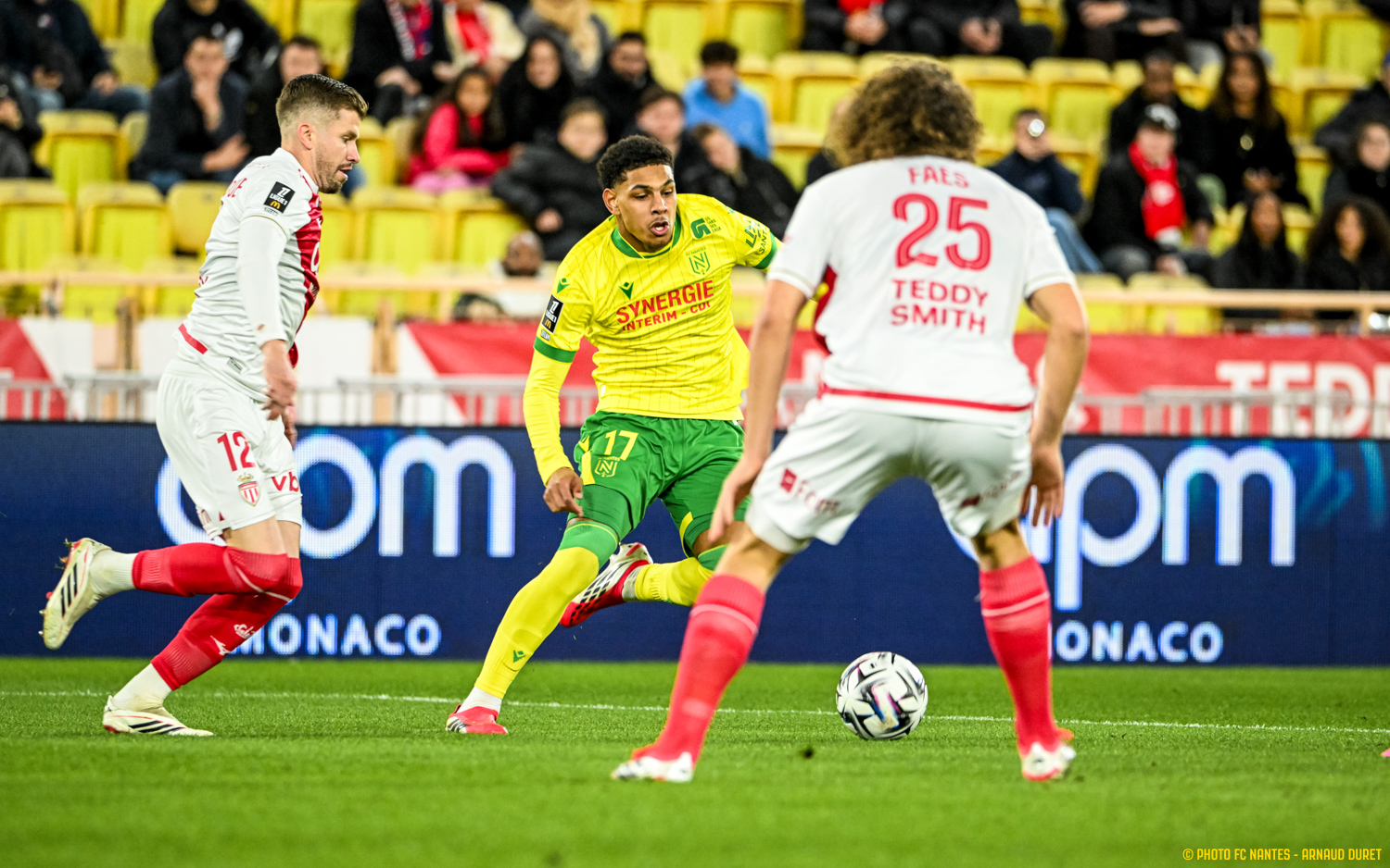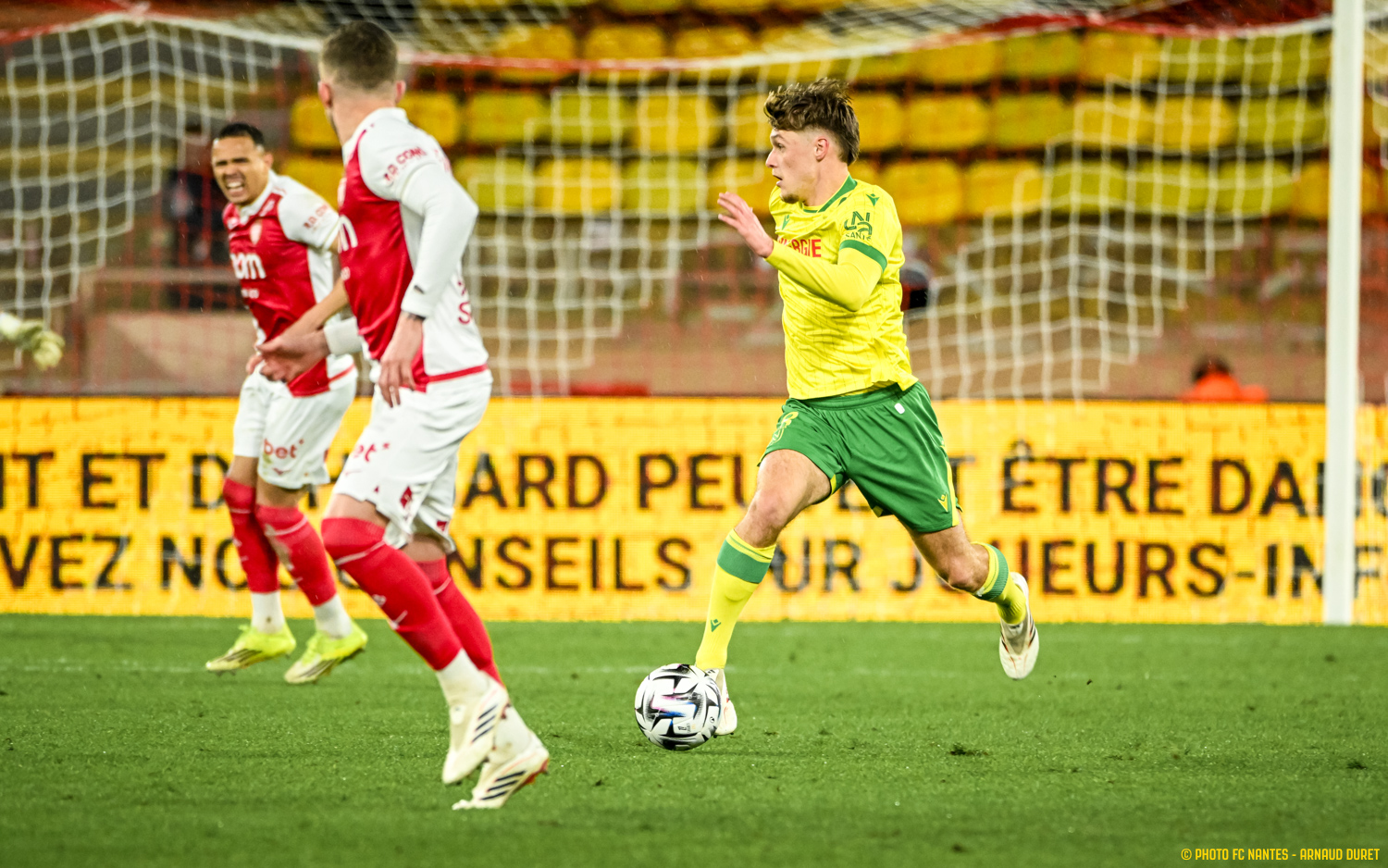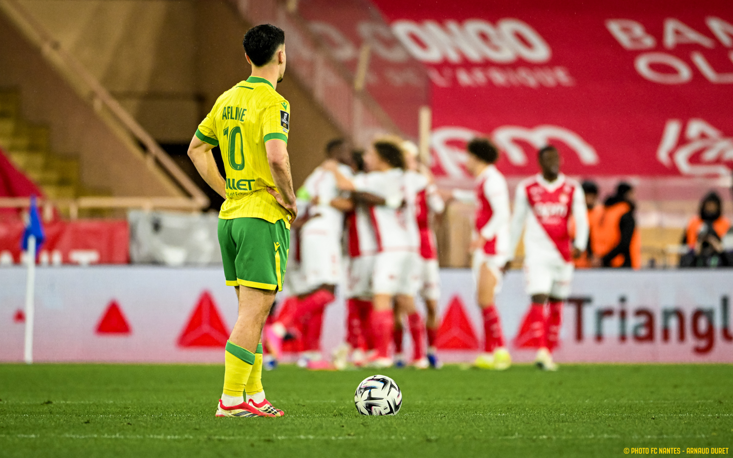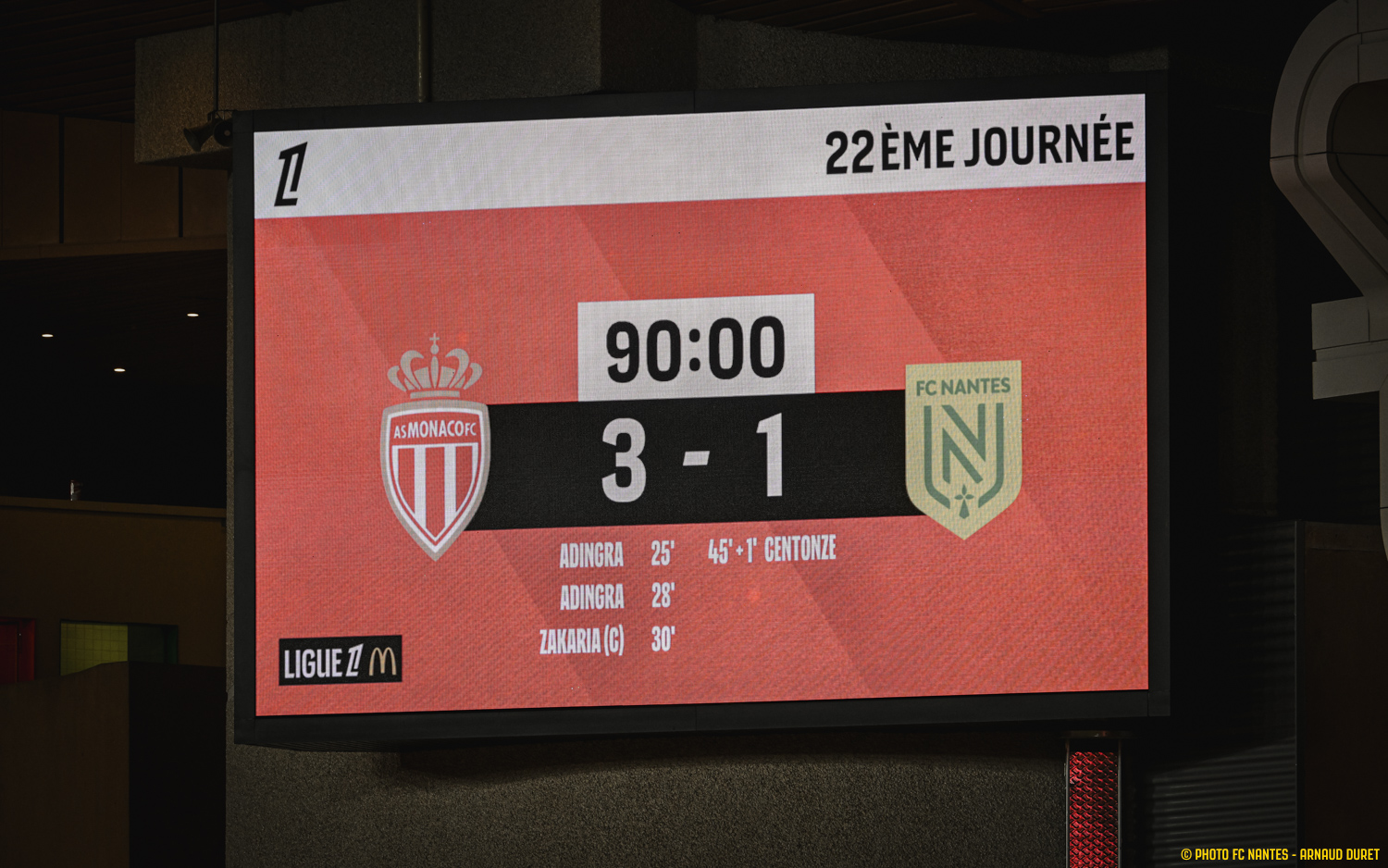 Le FC Nantes s'est incliné face à l'AS Monaco vendredi soir au stade Louis-II (3-1). Menés de trois buts en l'espace de cinq minutes suite à un doublé de Simon Adingra et une réalisation de Denis Zakaria (25e, 28e et 30e), les Nantais n'ont pas réussi à recoller au tableau d'affichage. Fabien Centonze entretenait l'espoir en fin de première période (45e+2). Une réduction de l'écart malheureusement vaine pour les joueurs d'Ahmed Kantari qui ont fourni beaucoup d'efforts en seconde période sans parvenir à revenir...