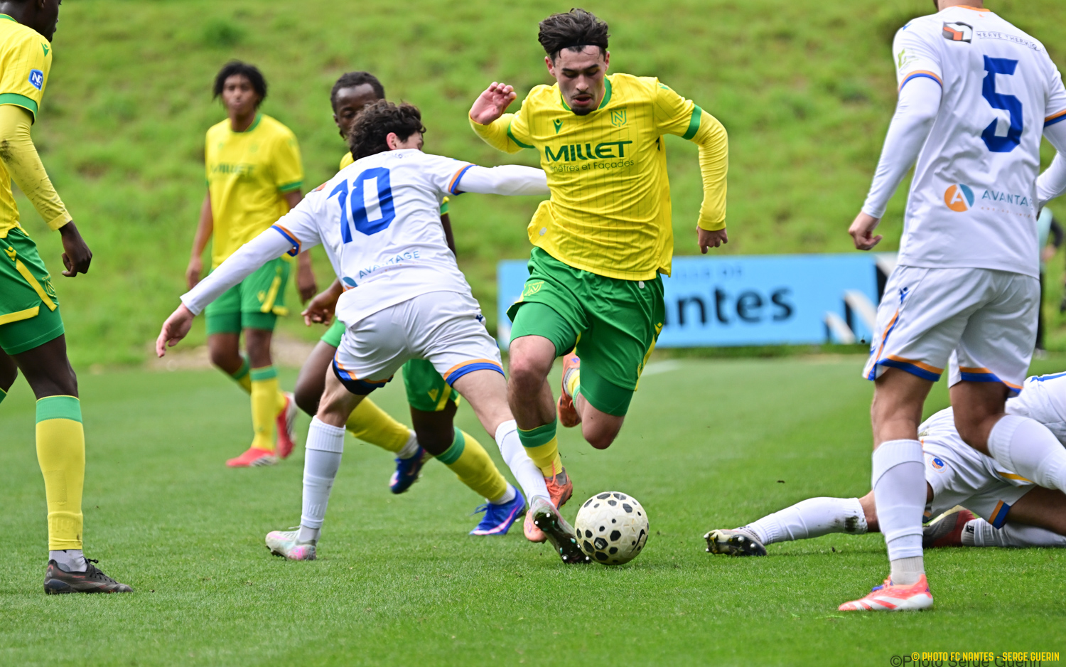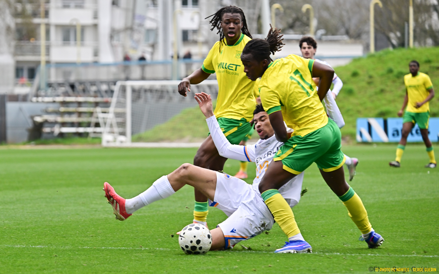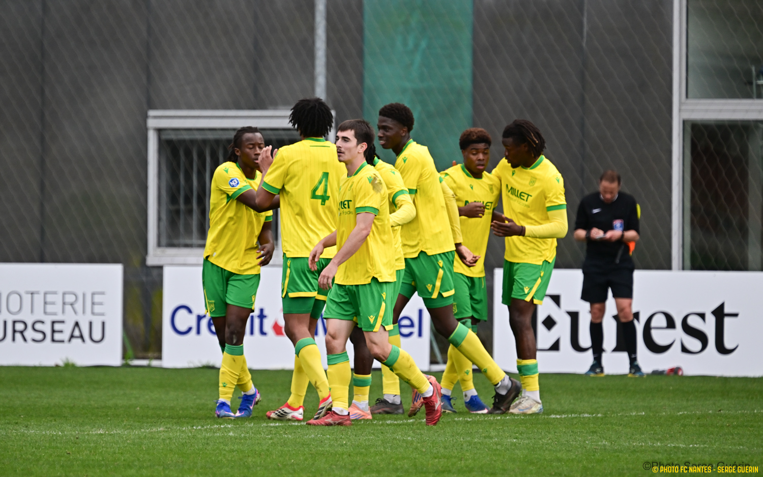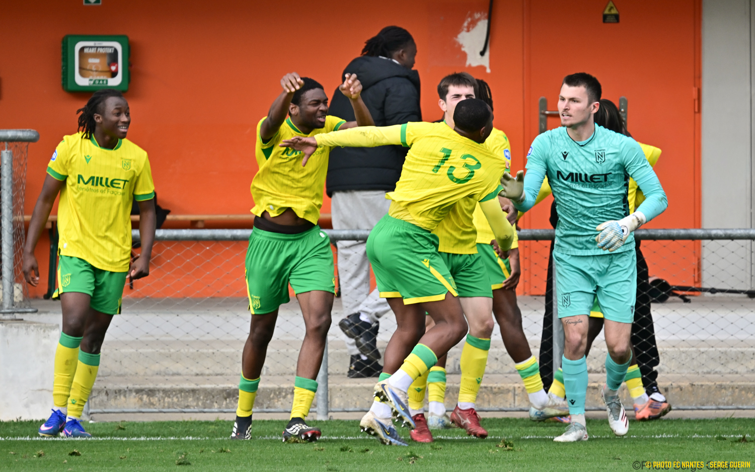 Renversante ! La formation de N3 du FC Nantes s'est imposée face à l'Union Foot Touraine en match décalé de la 12ème journée. Les joueurs de Stéphane Ziani, menés à la demi-heure de jeu, ont réussi à inverser le cours du match grâce aux entrées décisives de Nabil Ondo et de Christian Djonda. Une performance de haut de tableau qui assoit la formation nantaise en tête du classement devant Le Poiré-sur-Vie.
