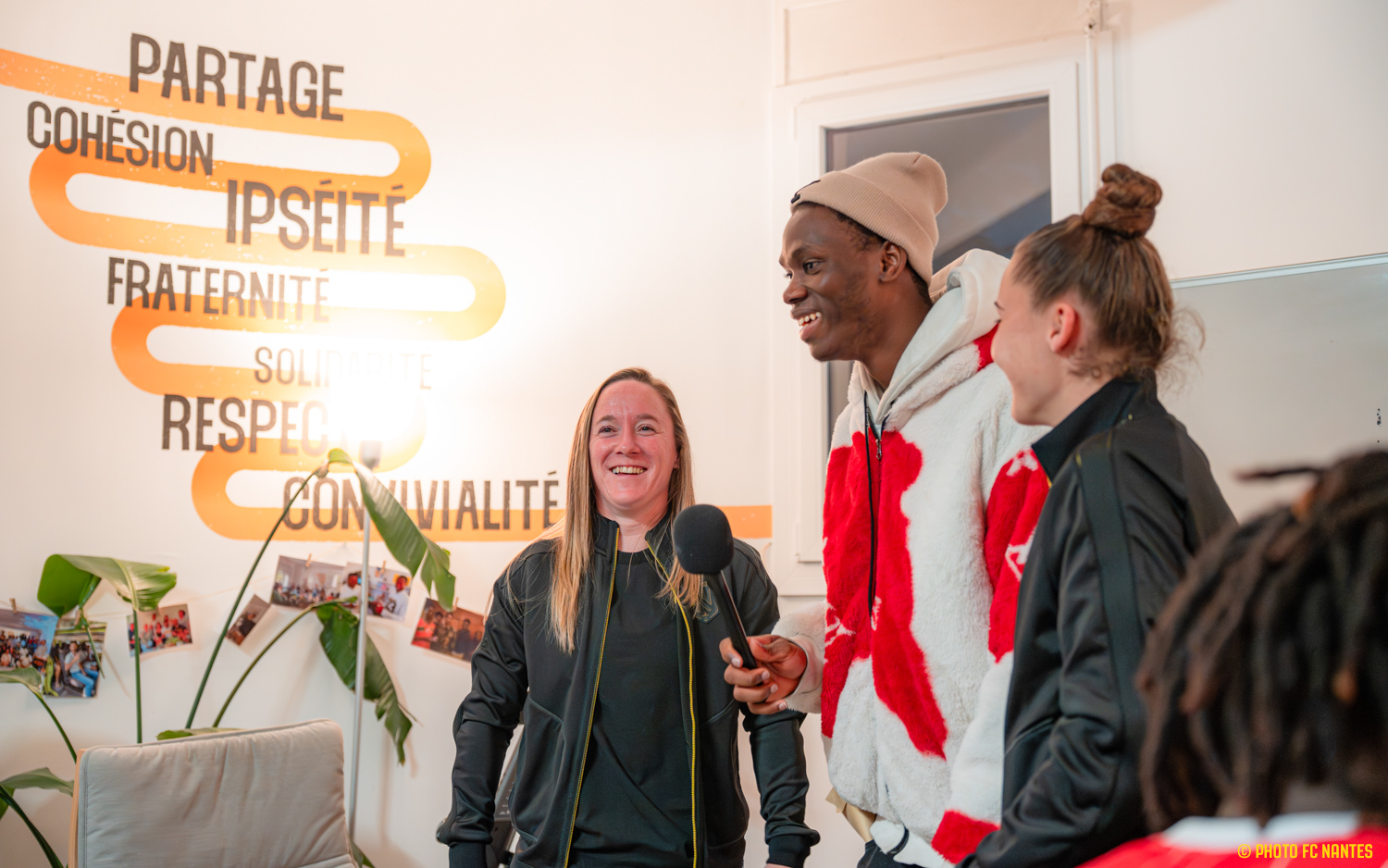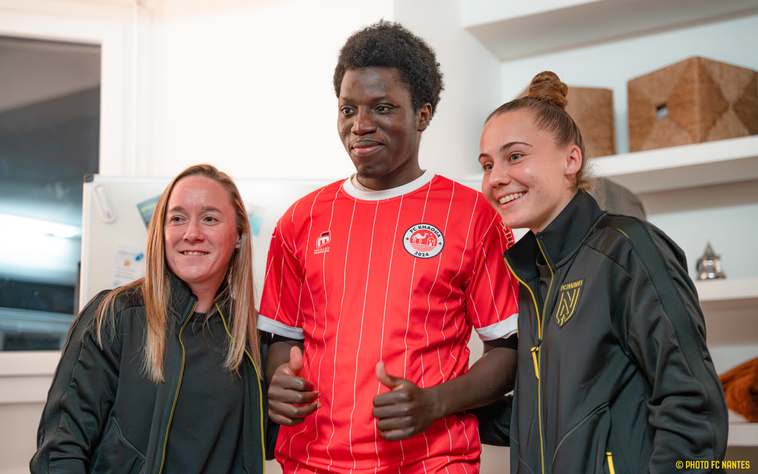 Dans le cadre du partenariat entre le Département de Loire-Atlantique et le FC Nantes, le club s'est rendu à la Maison La Khaoua, à Nantes. Julie Rabanne et Juliette Mossard, accompagnées de Kyllian Auger (adjoint D1F) et Nicolas Ménard (Team Manager), sont allées à la découverte de ce dispositif porté par Apprentis d'Auteuil, en présence de  Jean- marc Pasquier (Responsable La Khaoua), Mohamed Merzougui (Service civique), Bertrand Léger (Coordinateur Département 44), Louise Pahun ( Vice présidente en charge des sports) et de la légende nantaise, Japhet N'Doram (Référent MNA).