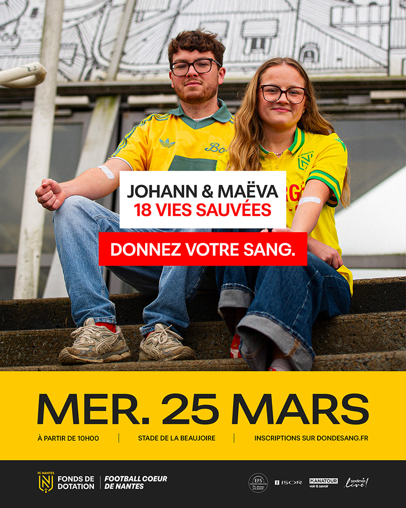 La Fondation FC Nantes et l’Établissement Français du Sang vous donnent rendez-vous pour une nouvelle mission solidaire ! La 4ème édition de la grande collecte de sang au stade de La Beaujoire, se tiendra le mercredi 25 mars.
