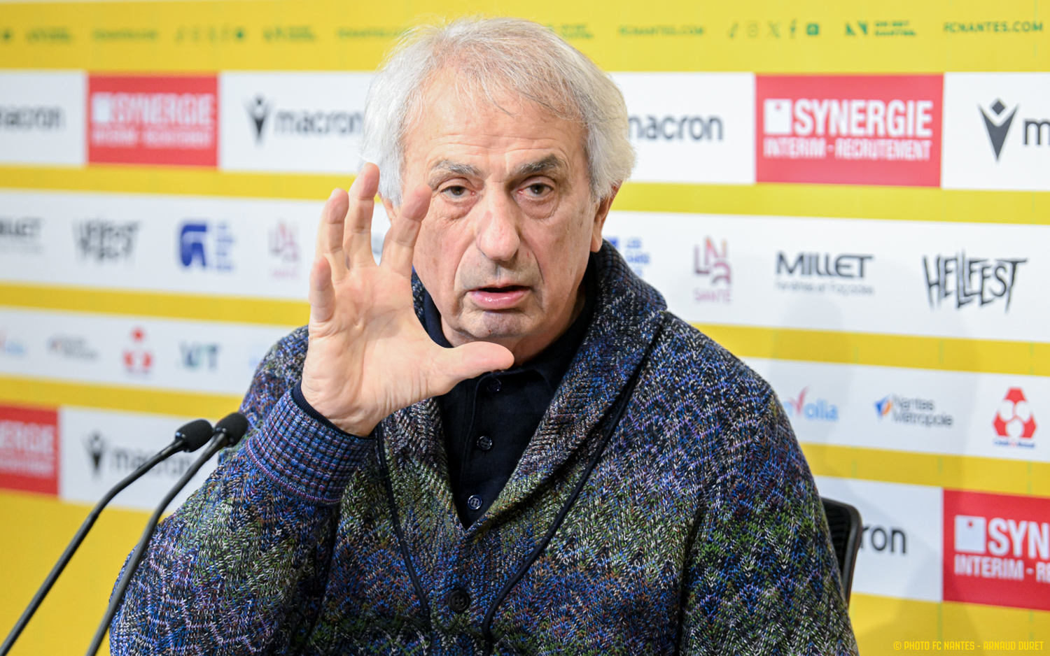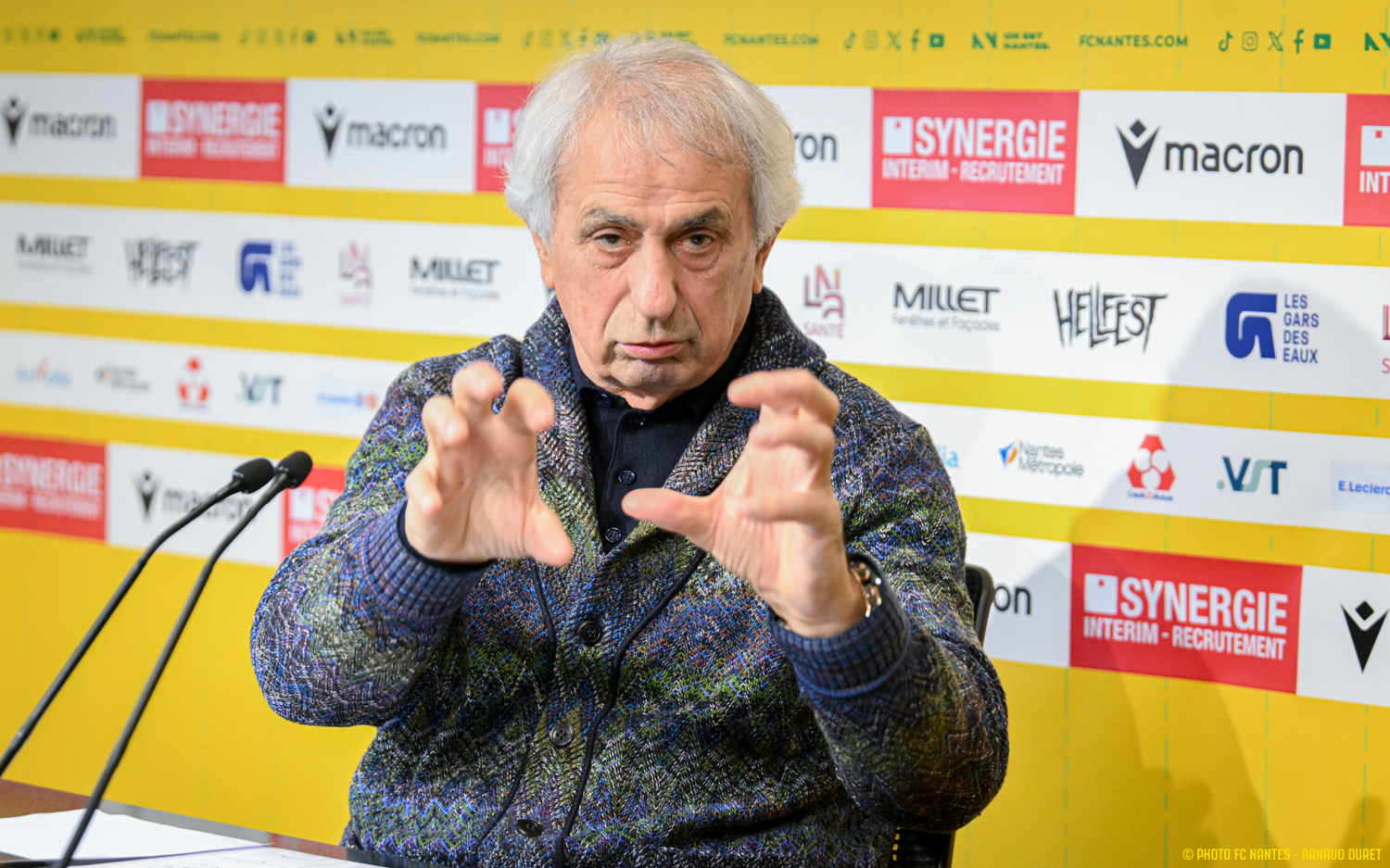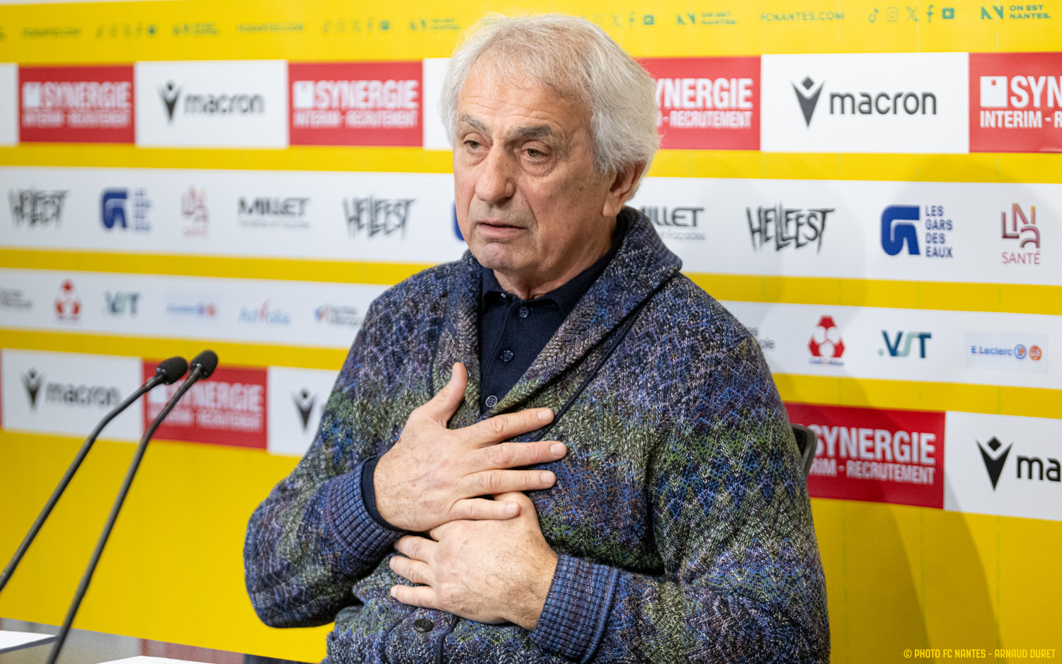 Vahid Halilhodzic s'est présenté aux médias vendredi en début d'après-midi. Entre deux sessions de travail, l'emblématique entraîneur du FC Nantes a répondu à l'ensemble des sollicitations médiatiques. Devant de nombreuses optiques et au rythme des crépitements des obturateurs, le coach nantais s'est exprimé avec le cœur, simplicité et sincérité, tout en livrant ses motivations à l'idée de relever un dernier défi. Pour le FC Nantes.