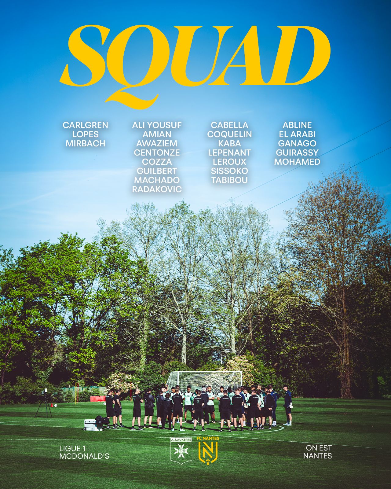 Vahid Halilhodzic a communiqué un groupe de 23 joueurs pour le déplacement en Bourgogne où les Nantais s'apprêtent à disputer face à l'AJ Auxerre la rencontre de la 29ème journée de Ligue 1 McDonalds, ce samedi, à 19h.