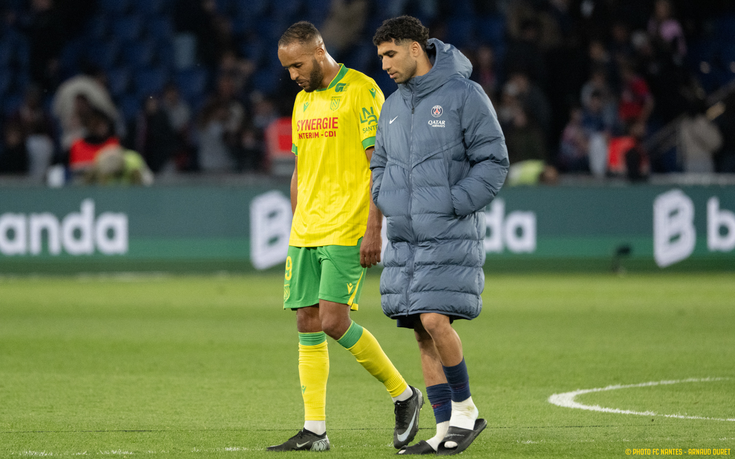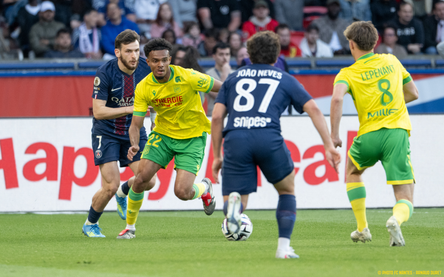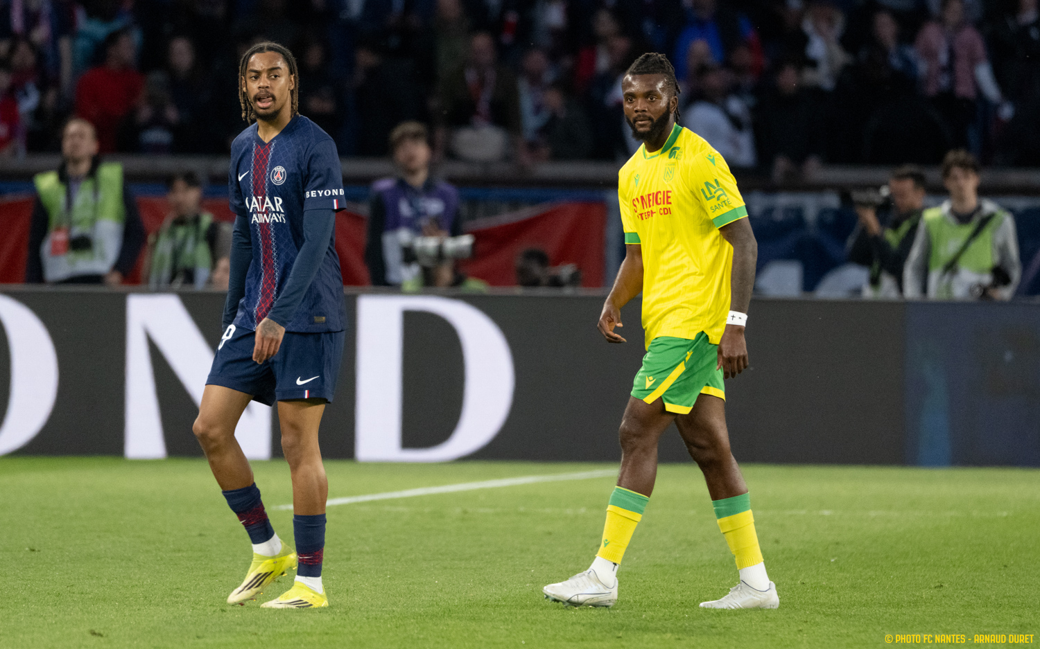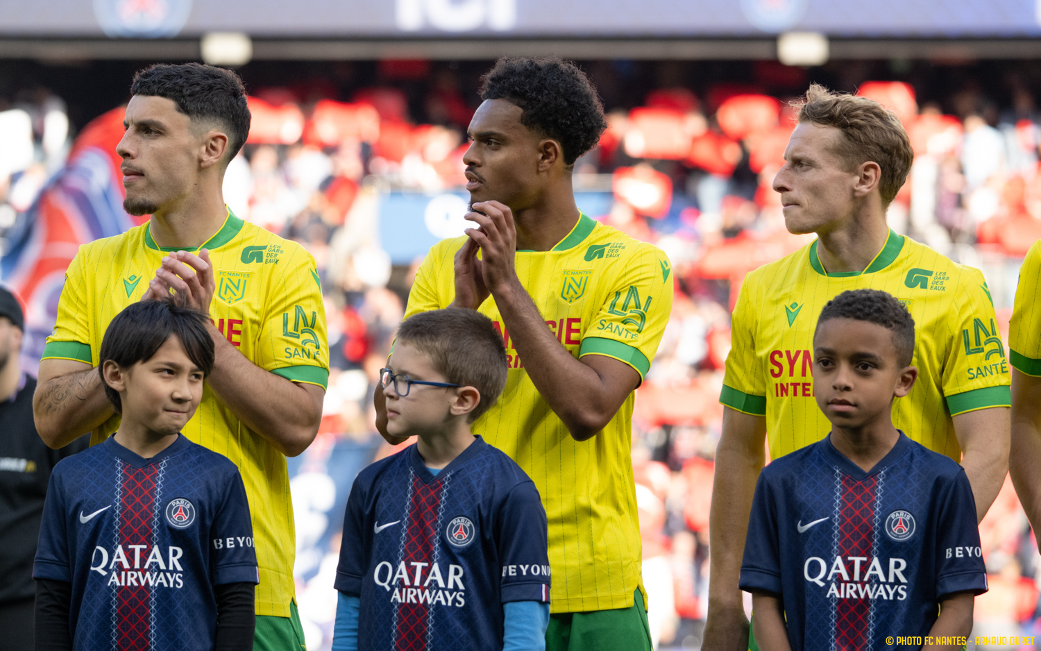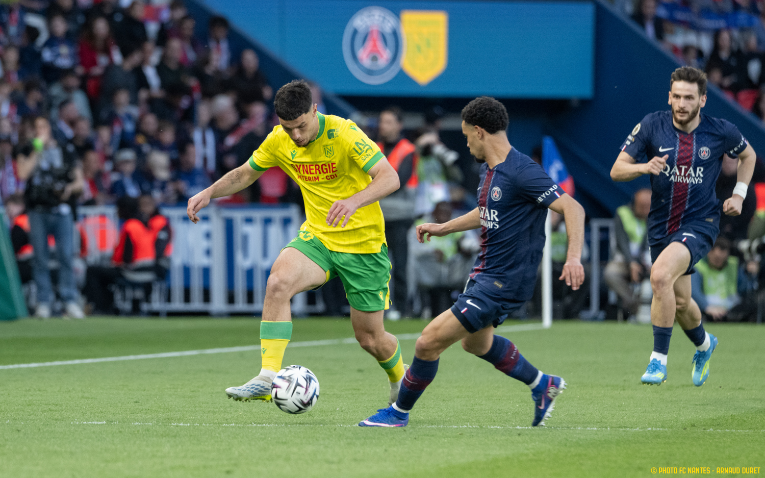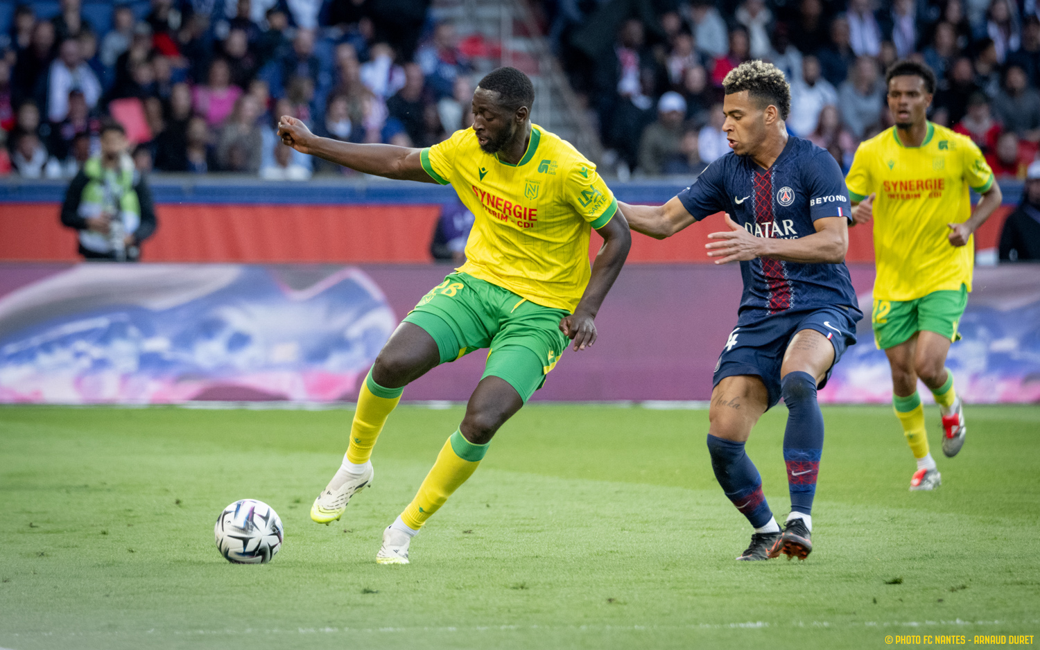 Le FC Nantes s'est incliné face au Paris SG en match reporté de la 26ème journée de L1 McDonald's (3-0). Khvicha Kvaratskhelia a ouvert la marque sur penalty dès la 13ème minute de jeu. Désiré Doué, auteur d'une frappe limpide en pleine lucarne (37e : 2-0), a doublé la mise pour le PSG qui scellait une solide prestation par le doublé de son international géorgien (50e : 3-0). Flashback en images sur la 96ème édition entre le Paris SG et le FC Nantes jouée devant près de 400 supporters des Jaunes et Verts présents au Parc des Princes.