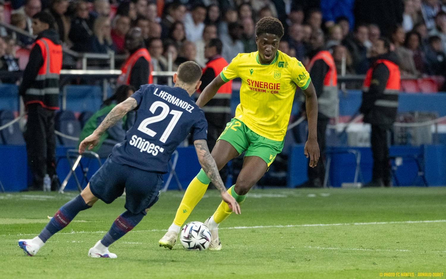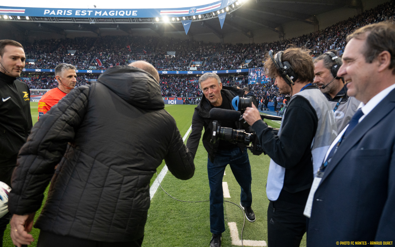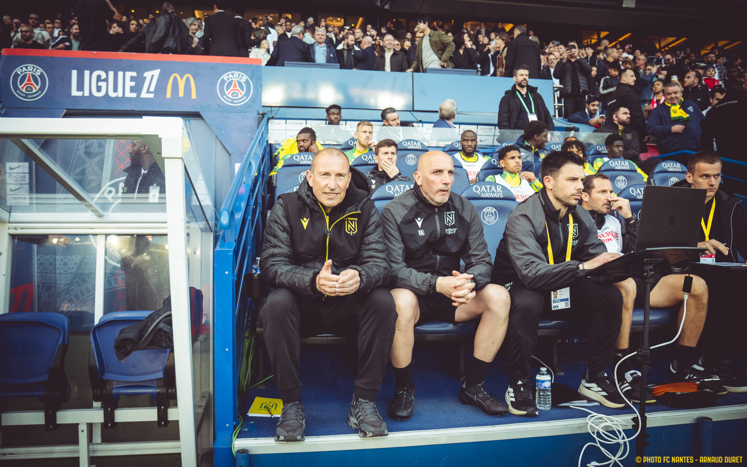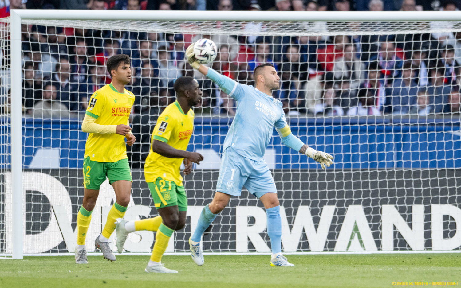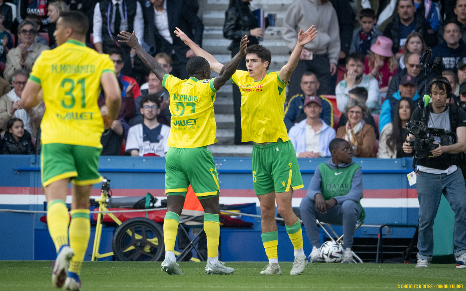 Le FC Nantes s'est incliné face au Paris SG en match reporté de la 26ème journée de L1 McDonald's (3-0). Khvicha Kvaratskhelia a ouvert la marque sur penalty dès la 13ème minute de jeu. Désiré Doué, auteur d'une frappe limpide en pleine lucarne (37e : 2-0), a doublé la mise pour le PSG qui scellait une solide prestation par le doublé de son international géorgien (50e : 3-0). Flashback en images sur la 96ème édition entre le Paris SG et le FC Nantes jouée devant près de 400 supporters des Jaunes et Verts présents au Parc des Princes.