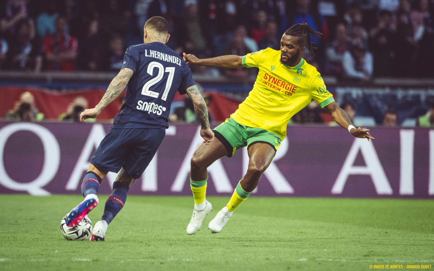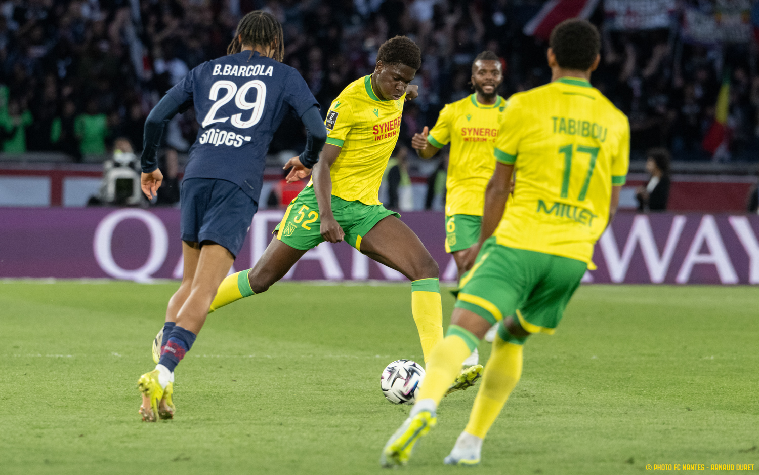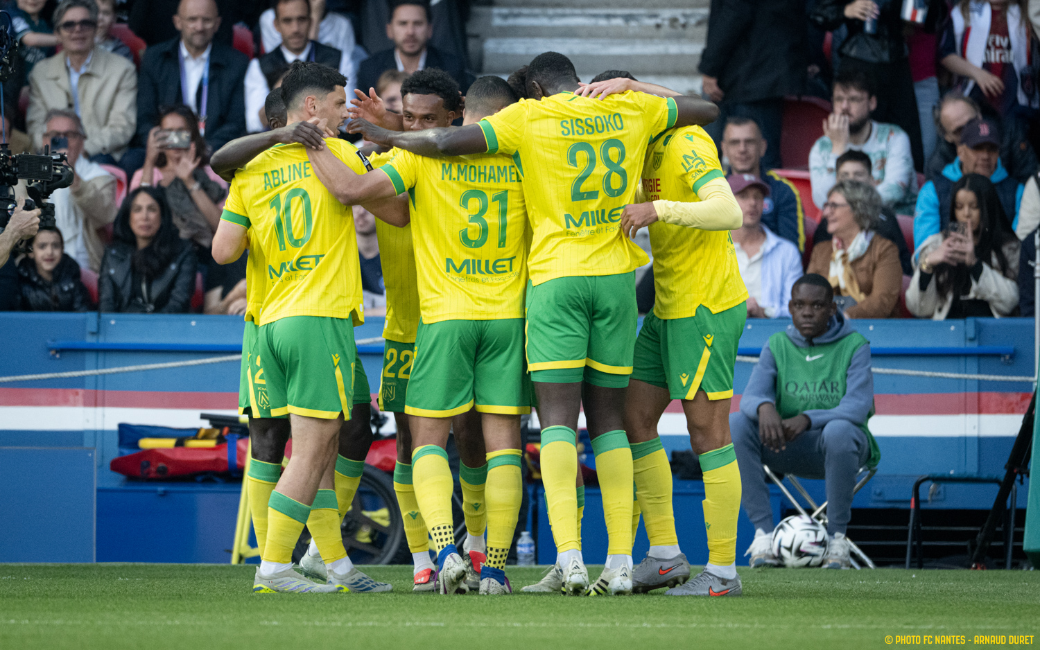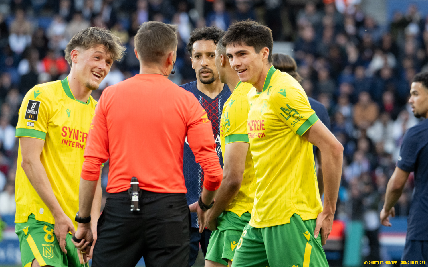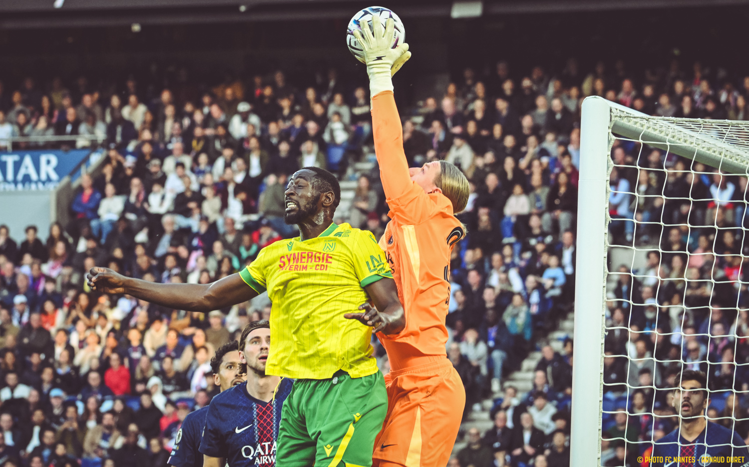 Le FC Nantes s'est incliné face au Paris SG en match reporté de la 26ème journée de L1 McDonald's (3-0). Khvicha Kvaratskhelia a ouvert la marque sur penalty dès la 13ème minute de jeu. Désiré Doué, auteur d'une frappe limpide en pleine lucarne (37e : 2-0), a doublé la mise pour le PSG qui scellait une solide prestation par le doublé de son international géorgien (50e : 3-0). Flashback en images sur la 96ème édition entre le Paris SG et le FC Nantes jouée devant près de 400 supporters des Jaunes et Verts présents au Parc des Princes.