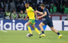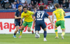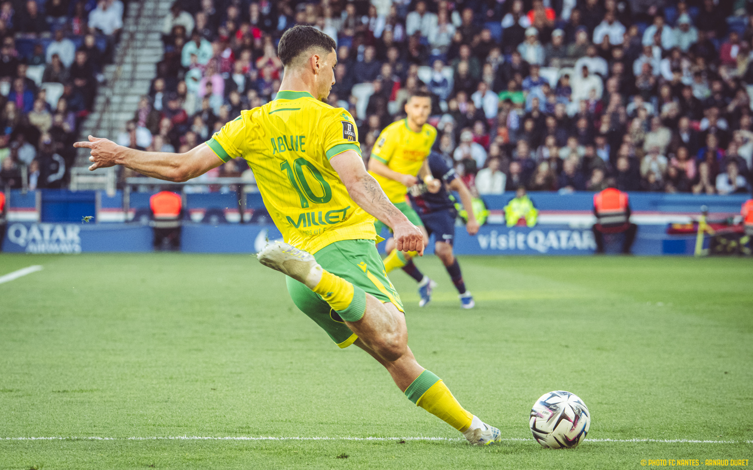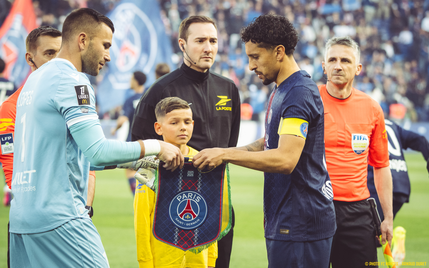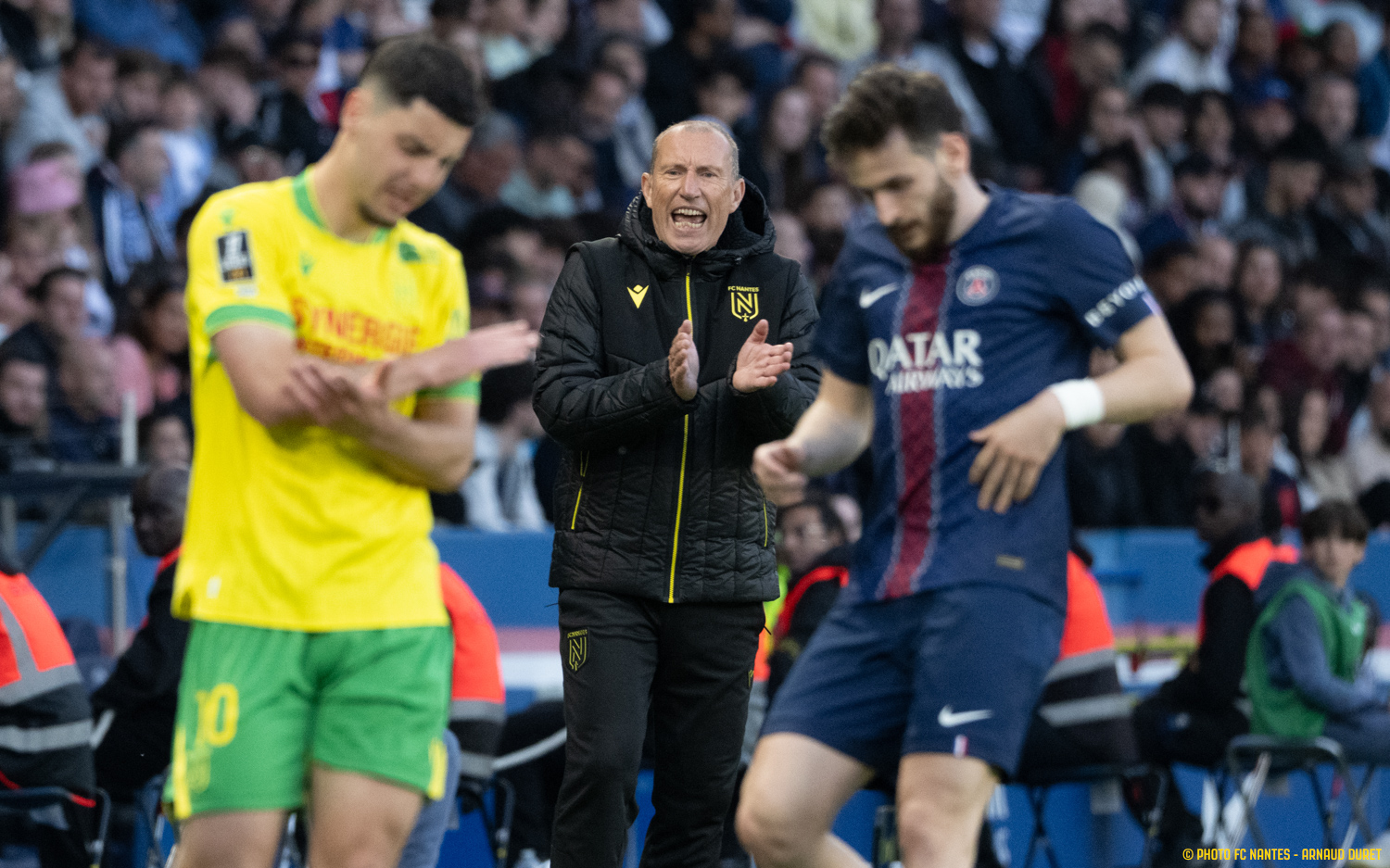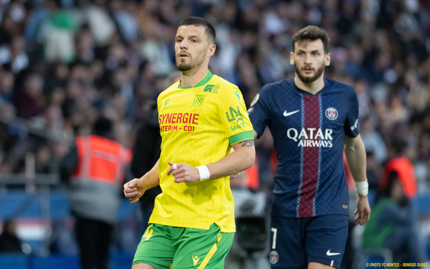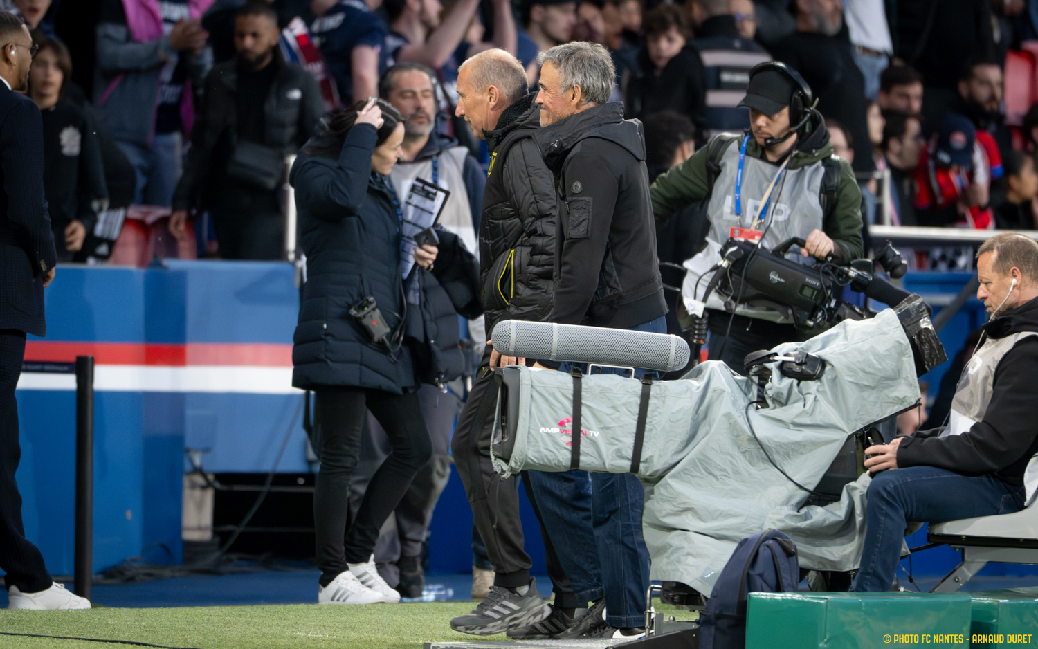 Le FC Nantes s'est incliné face au Paris SG en match reporté de la 26ème journée de L1 McDonald's (3-0). Khvicha Kvaratskhelia a ouvert la marque sur penalty dès la 13ème minute de jeu. Désiré Doué, auteur d'une frappe limpide en pleine lucarne (37e : 2-0), a doublé la mise pour le PSG qui scellait une solide prestation par le doublé de son international géorgien (50e : 3-0). Flashback en images sur la 96ème édition entre le Paris SG et le FC Nantes jouée devant près de 400 supporters des Jaunes et Verts présents au Parc des Princes.
