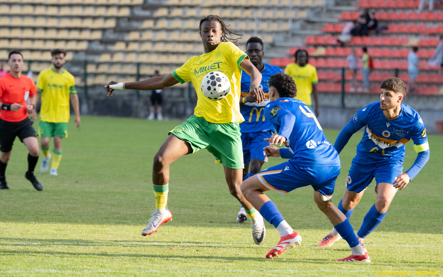 Passée la première alerte tourangelle (6e), les Nantais réussissaient à poser leur jeu et donnaient des sueurs froides à la Vallée-du-Cher sur deux percées : celle de Junior Koné, tout proche d'obtenir le penalty (10e), et sur un face-à -face malheureusement manqué par Nabil Ondo (15e). Vigilant d'une main ferme sur sa ligne (20e), Lucas Bonelli maintenait les Nantais avant l'action de la première période : sur un raid en solitaire, Louka Gautier-Serant, lancé à pleine vitesse, slalomait au coeur de la défense pour ouvrir la marque d'un plat du pied imparable face à Noa Isambert (25e). La récompense d'une belle première période durant laquelle les Jaunes et Verts ont fait mieux que défendre. Solidaires et réalistes, les joueurs de Stéphane Ziani ont conservé cet avantage jusqu'à la pause.