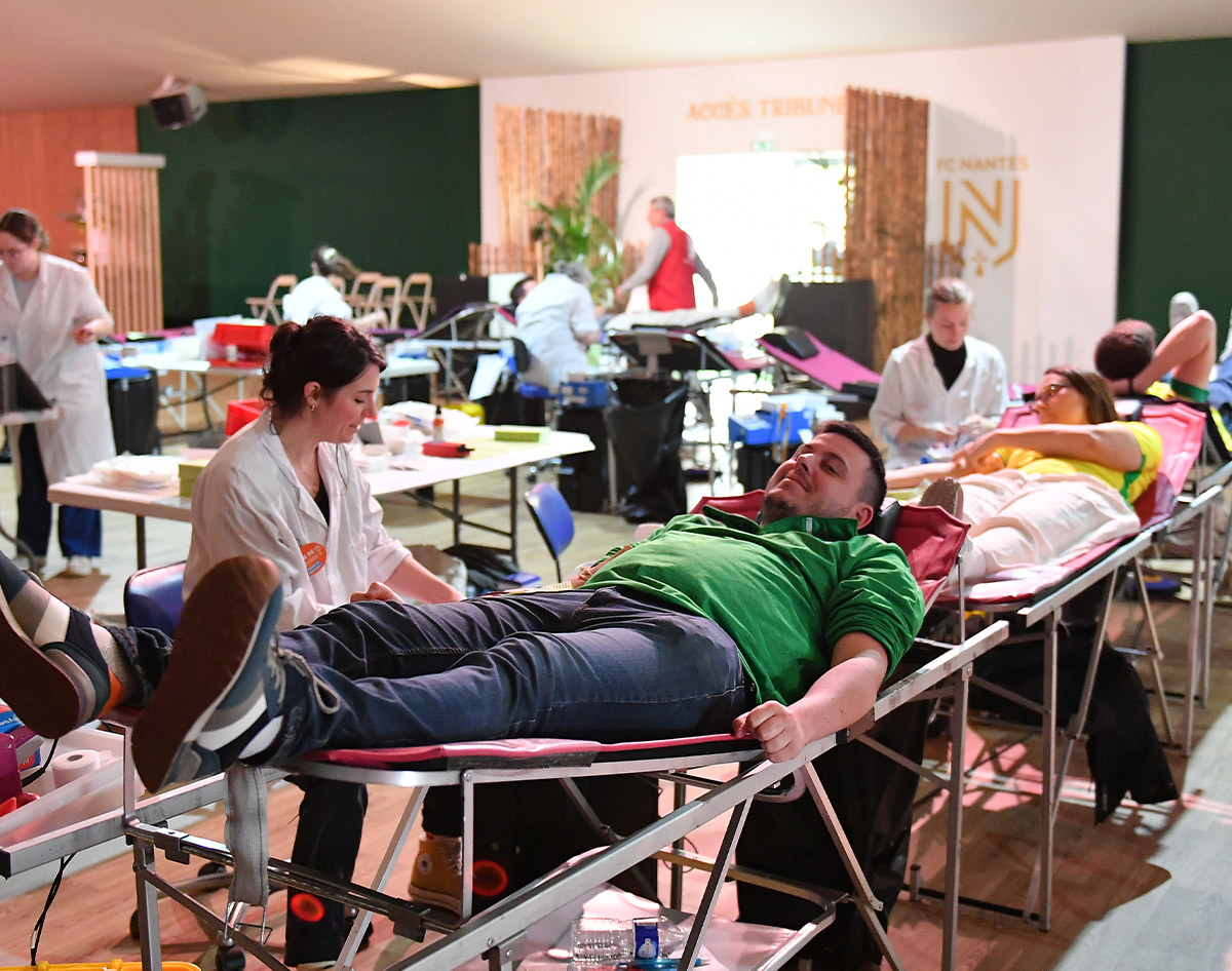 +700Donneurs à la Beaujoire Depuis 2022, la Fondation, grâce à son partenariat avec l’Etablissement Français du Sang, organise une collecte de sang annuelle dans l’antre des canaris. |